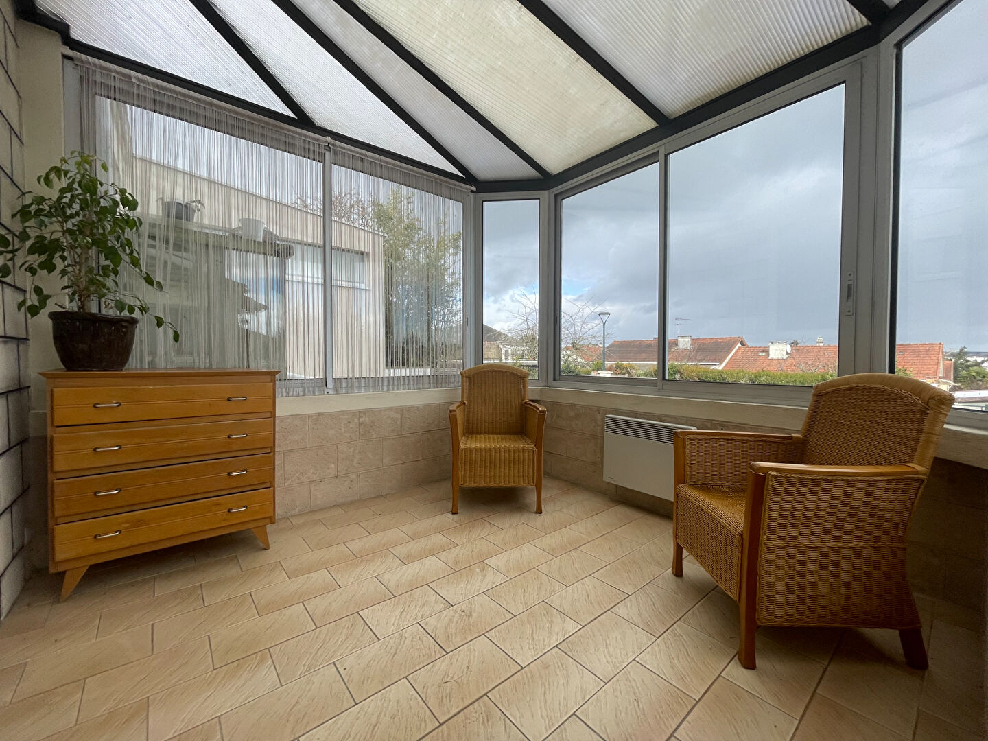 SAINT-CYR-L'ECOLE! Situé dans un quartier pavillonnaire calme , proche à pied des écoles, commerces et à 15 minutes environ de la gare, charmante maison d'environ 80m² habitable avec s/sol total , édifiée sur un terrain de 215m² , bien agencé et lumineuse. Elle comprend au rez-de-chaussée : entrée, séjour cathédrale expo sud donnant sur jardin au calme, cuisine aménagée et équipée, véranda, salle d'eau , WC. A l'étage: 3 chambres ( possibilité de créer une 4ème chambre) , salle de bains; WC. Un sous sol total complète ce bien incluant un garage , une buanderie et une cave. Très beau potentiel ! FAIRE VITE! frais agence inclus de 6% à la charge acquéreurs. (6.06 % honoraires TTC à la charge de l'acquéreur.)