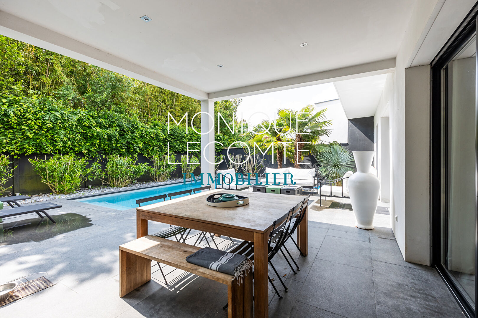 EXCLUSIVITÉ Bordeaux-Caudéran, l'agence Monique Lecomte Immobilier vous présente à la vente cette maison d'architecte de 2014, de 249m2 habitables sur une parcelle de 520m2, à proximité immédiate du centre de Caudéran. Elle se compose au rez-de-chaussée d'une entrée avec vestiaire, donnant sur une belle réception avec cheminée, d'une cuisine équipée et d'une suite parentale avec dressing et salle de bain complète, ouvrant sur le jardin sans vis-à-vis exposé sud-est avec piscine. A l'étage, le palier dessert 3 suites avec dressing et salle de bain, une salle de jeu et 2 terrasses. Une lingerie, une cave à vin, un carport abritant 2 véhicules et un garage fermé complètent utilement ce bien situé à proximité des écoles, des commerces et des transports (BHNS). Rare. (5.00 % honoraires TTC à la charge de l'acquéreur.)