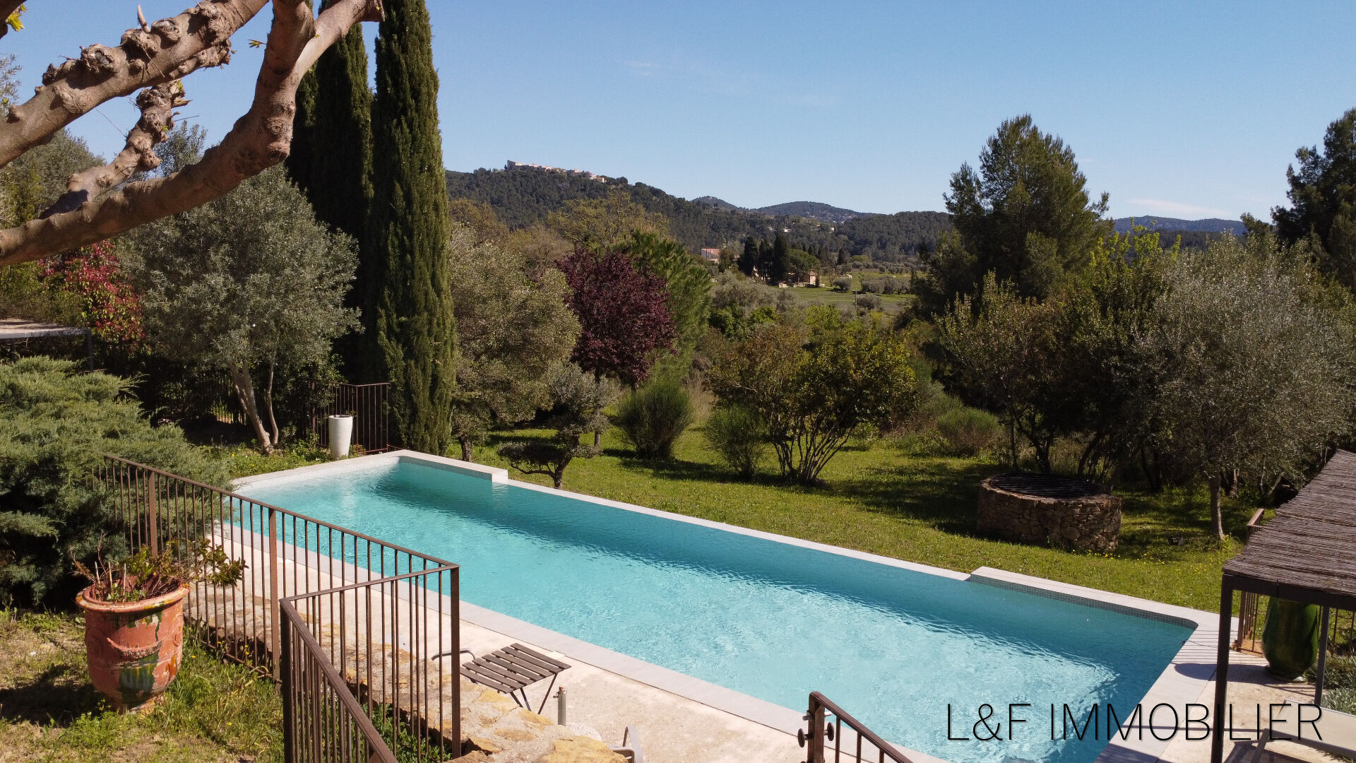 Cadre idyllique, au calme absolu, offrant une très belle vue sur les villages de La Cadière et du Castellet. A l'abri des regards, nous vous proposons une villa récente d'environ 225m² habitables, édifiée sur un terrain de 5 400 m². L'intérieur se compose d'un bel espace séjour - cuisine avec cheminée de 65m², ouvrant sur une terrasse couverte de 25m², une suite parentale de plain-pied avec salle d'eau privative et dressing de 25m², et une buanderie. A l'étage : trois belles chambres avec vue sur les vignes et le village de la Cadière, une salle de bains, un bureau et une pièce de rangement. Attenant, pour recevoir famille / amis ou locatif saisonnier, un appartement indépendant de 35m² avec terrasse privative sans vis à vis. Le jardin accueille une magnifique piscine à débordement avec plage, bénéficiant d'un ensoleillement optimal toute la journée, ainsi que deux ateliers et un local technique piscine. Belles prestations : chauffage au sol par pompe à chaleur, climatisation, Canal de Provence. Nombreux stationnements. Honoraires 4%TTC à la charge de l'acquéreur, inclus dans le prix de vente. Mandat n°1100. (4.00 % honoraires TTC à la charge de l'acquéreur.)