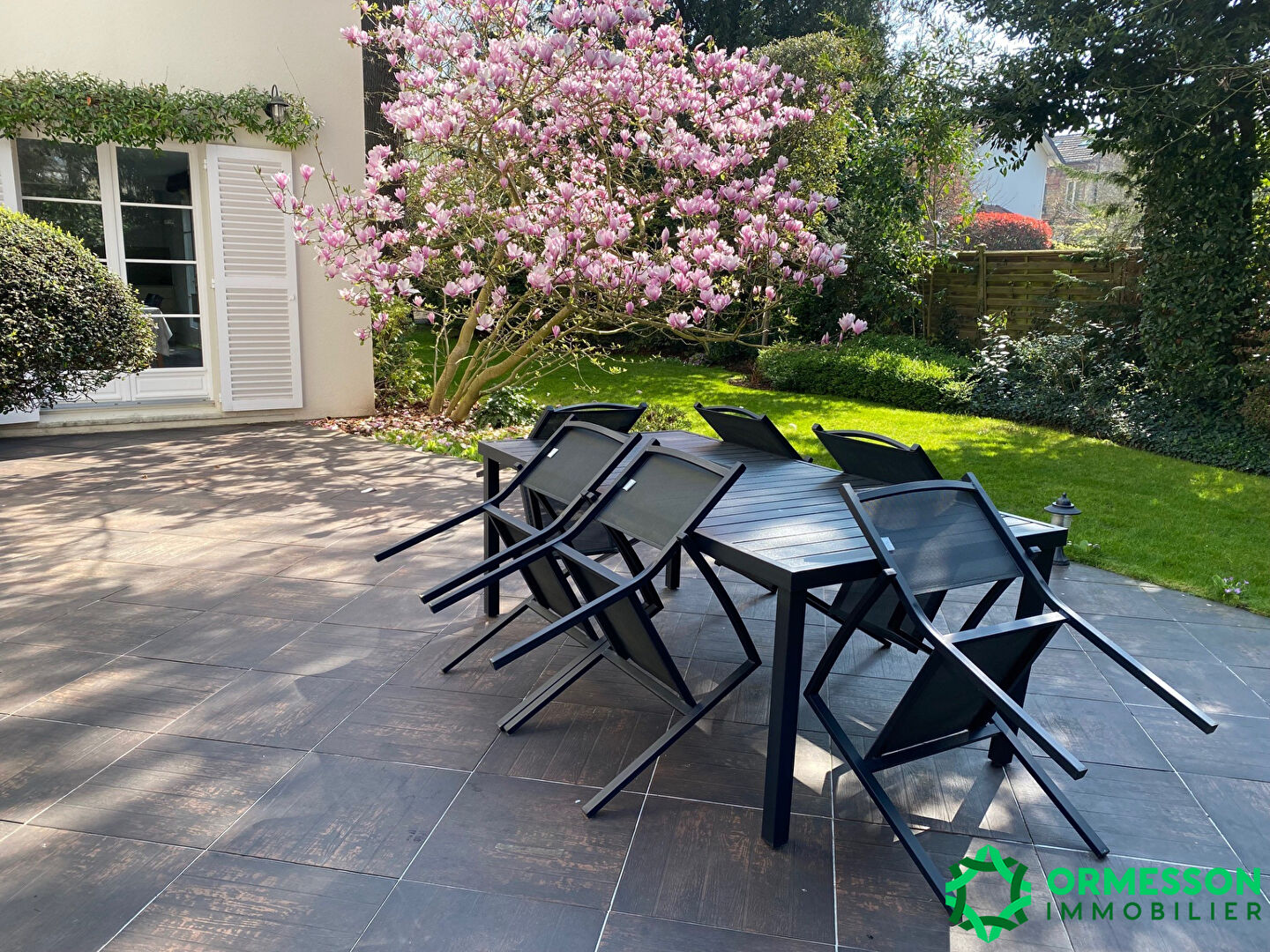 Propriété d'architecte et jardin paysager à Saint-Germain-en-Laye Au bout d'une allée, à l'abri des regards, dans l'un des quartiers les plus recherchés de Saint-Germain-en-Laye, cette remarquable maison d'architecte conjugue élégance contemporaine, volumes généreux et qualité de vie exceptionnelle. Développant plus de 310 m² habitables, la propriété s'organise sur plusieurs niveaux et offre des espaces de réception particulièrement lumineux. Dès l'entrée, le ton est donné : lignes épurées, circulation fluide et atmosphère raffinée. Le vaste séjour de près de 70m², s'ouvre largement sur le jardin grâce à de grandes portes vitrées, créant une continuité naturelle entre intérieur et extérieur. Il se prolonge également par un élégant patio, véritable espace de respiration au coeur de la maison. La cuisine de haut standing, parfaitement équipée, jouxte la salle à manger. Elle peut être ouverte grâce à une baie coulissante sur mesure, qui permet de moduler les espaces selon les moments de la journée. Cette configuration crée un ensemble convivial et harmonieux, idéal pour recevoir famille et amis. A l'étage, l'espace nuit accueille quatre chambres avec chacune sa salle d'eau, dont une somptueuse suite parentale avec salle de bains, douche et dressing ainsi qu'un salon bibliothèque. Les combles aménagés offrent une vaste chambre qui peut être aussi un bureau ou une salle de jeu pour les enfants. Enfin, le rez-de-jardin permet aisément l'aménagement d'une sixième chambre selon les besoins, offrant ainsi une configuration idéale pour une grande famille, l'accueil d'invités ou l'organisation d'espaces dédiés au télétravail. A l'extérieur, le terrain paysager d'environ 1 115 m² est arboré et parfaitement entretenu. Une immense terrasse prolonge naturellement les espaces de vie et de convivialité aux beaux jours, idéale pour profiter pleinement de la quiétude. A l'entrée de la propriété, une charmante maison de gardien, avec studio et deux garages, complète l'ensemble. Discrète et fonctionnelle, elle constitue un espace idéal pour accueillir un gardien, des invités ou envisager un usage indépendant selon les besoins. S'agissant du stationnement, la propriété dispose de deux places extérieures près la maison de gardien, ainsi que de deux places supplémentaires abritées sous carport à proximité de la maison principale. Une allée de plus de 30m complète ces équipements pour accueillir plusieurs véhicules lors de réceptions. Une propriété rare qui séduira les amateurs de belles architectures contemporaines, à seulement quelques minutes à pied du centre de Saint-Germain-en-Laye, de son environnement privilégié et des meilleures écoles de la région comme le lycée international.