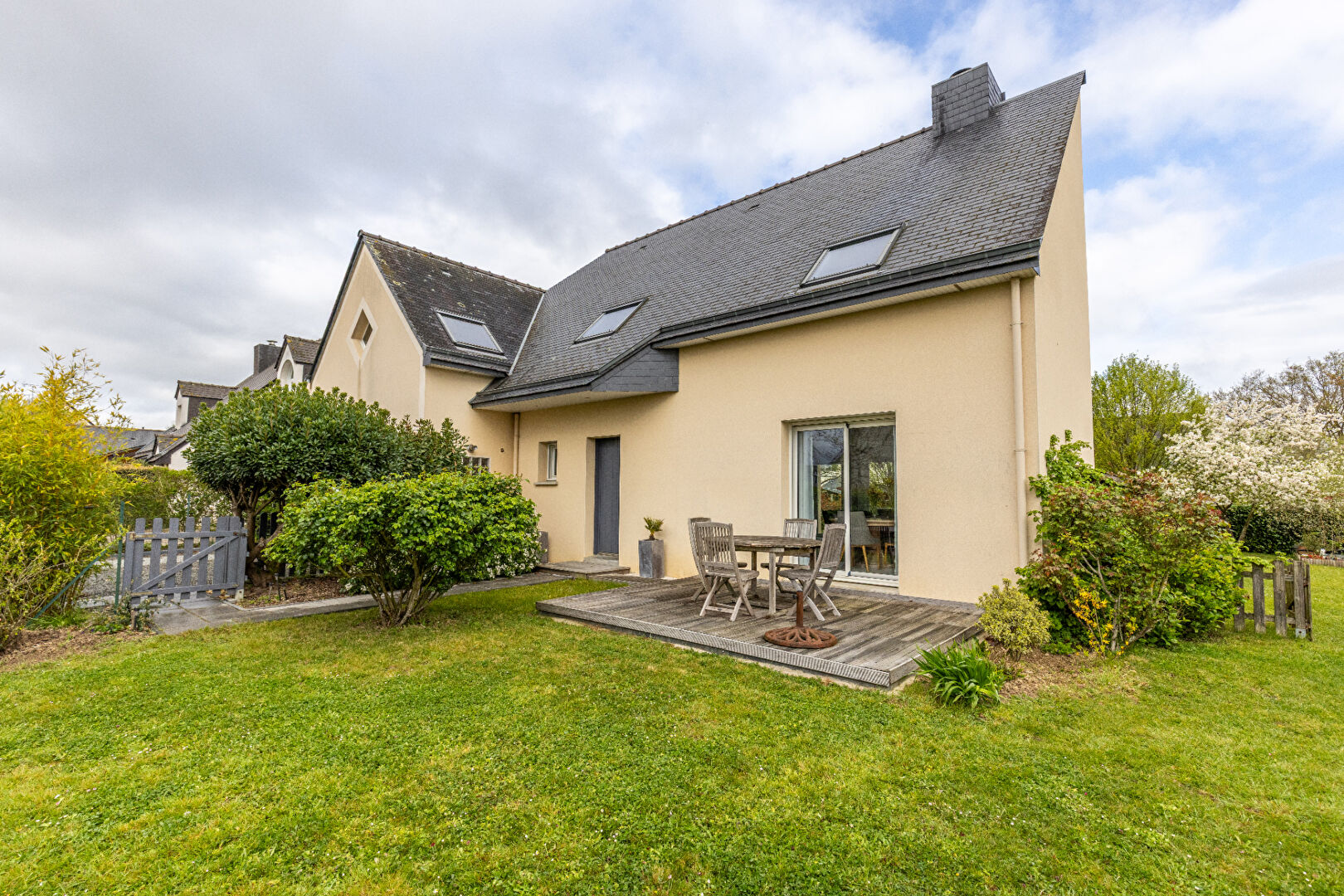 A VENDRE - EXCLUSIVITÉ CABINET BARTH IMMOBILIER CHARTRES DE BRETAGNE - MAISON PROCHE CENTRE PONT-PEAN Retrouvez nos biens en vidéo sur Instagram : barth_immobilier Maison familiale située à Pont Péan (Rennes Métropole), d'une surface habitable de 148m² (164,60 m² utiles) offrant un cadre de vie privilégié, au calme et sans vis-à-vis, sur une belle parcelle arborée de 803 m², dans un quartier très privilégié et résidentiel, en impasse. Très bien entretenue, elle séduit dès l'entrée par sa luminosité et ses volumes agréables. Le rez-de-chaussée se compose d'une entrée accueillante ouvrant sur une pièce de vie lumineuse de 54m², avec son poêle à bois suspendu, sa cuisine aménagée et équipée, et complétée par un dégagement desservant une chambre, une salle d'eau et un WC. A l'étage, une très belle mezzanine dessert trois chambres confortables avec placards intégrés, une salle de bains équipée d'une baignoire et d'une douche, un WC indépendant ainsi qu'un grenier partiellement aménagé de 30m², au même niveau. La maison dispose également d'un double garage avec espace cellier, ainsi que de deux places de stationnement extérieures. A l'extérieur, le terrain clos et soigneusement arboré propose plusieurs ambiances grâce à ses trois terrasses, idéales pour profiter des différentes expositions tout au long de la journée, sans vis à vis. Alliant confort, fonctionnalité et environnement paisible, cette maison constitue une opportunité idéale pour une famille à la recherche d'un bien clé en main, à proximité des commodités. Les +: * Maison parfaitement entretenue sans aucuns travaux à prévoir * Potentiel d'agrandissement de la maison par le grenier à achever, portant une possibilité de maison à 194m² utiles * Terrain clos, sécurisé, arboré et sans vis à vis, piscinable * Chauffage au sol en rez-de-chaussée * Aspiration centralisée * Poêle à bois * Hotte à extraction * Double garage * Ardoise naturelle A très vite !!! Référence : 2554LM (4.65 % honoraires TTC à la charge de l'acquéreur.) Ludovic MONNIER (EI) Agent Commercial - Numéro RSAC : 932 868 144 - Rennes.