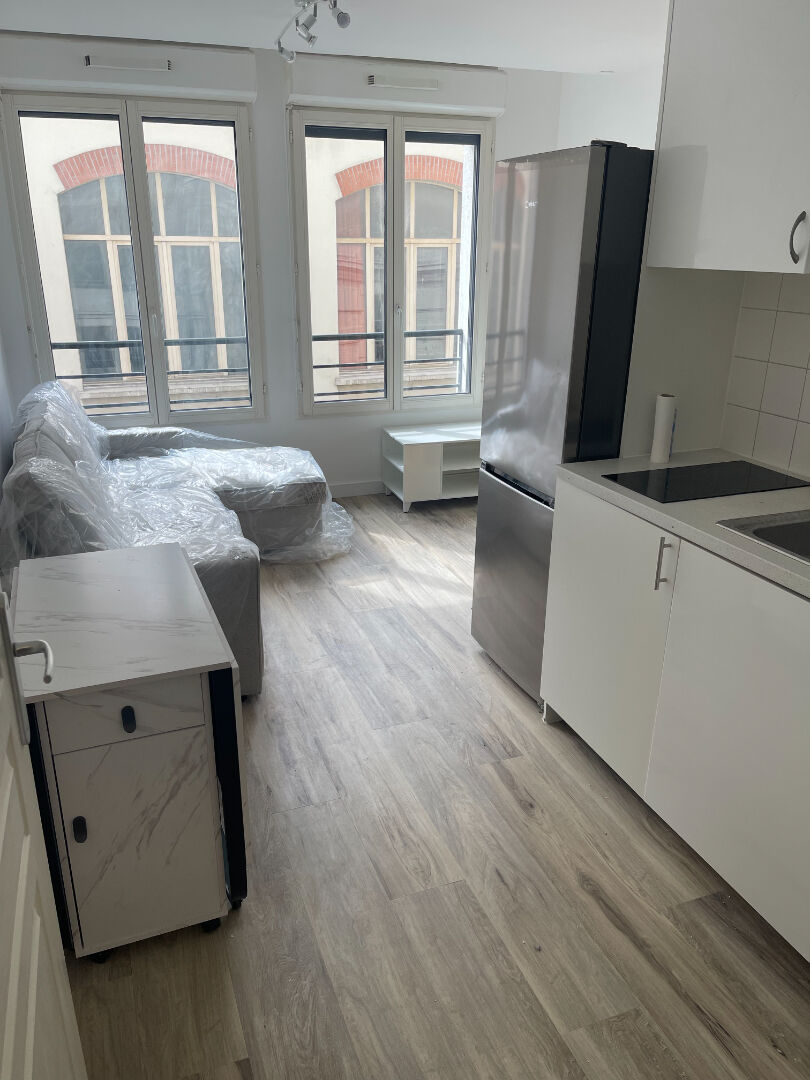 A deux pas du Métro LA CHAPELLE, proche commerces et toutes commodités, Passage Ruelle, dans un petit Immeuble très récent (2015) et bien entretenue, Duplex 2 pièces meublé de 41m² comprenant, Entrée, cuisine équipée ouverte sur le séjour, salle d'eau + wc. A l'étage, une grande chambre avec dressing et placards Libre de suite
