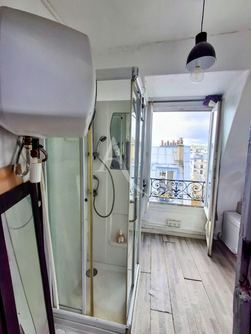Découvrez cette agréable chambre de service, à rafraichir, située dans un immeuble haussmannien sécurisé de 1875, offrant une entrée élégante et un local à vélos. Idéalement placée dans le très prisé 9ème arrondissement, à quelques pas de la vibrante Rue des Martyrs et de Montmartre, vous profiterez de l'animation des cafés, boutiques et de toutes les commodités à proximité. Cette pièce lumineuse et calme bénéficie d'une vue dégagée sur les toits parisiens, incluant le Sacré-Coeur à droite et la Tour Eiffel à gauche. Une pièce de vie avec cabine de douche ( un ballon d'eau chaude récent et kitchenette). Les toilettes sont sur le palier à proximité. Parfaite comme pied-à-terre, bureau, ou pour un primo-accédant. Transports: Métro Notre-Dame-de-Lorette (Ligne 12) à 5 minutes à pied et Métro Cadet (Lignes 7 et 2) à 7 minutes à pied, assurent un accès rapide à tout Paris. Une opportunité à ne pas manquer dans un emplacement de choix! Copropriété de 38 lots. Charges annuelles : 220 euros. Kirsi VEENHUYSEN (EI) Agent Commercial - Numéro RSAC : 833 725 518 - Saint-Brieuc.