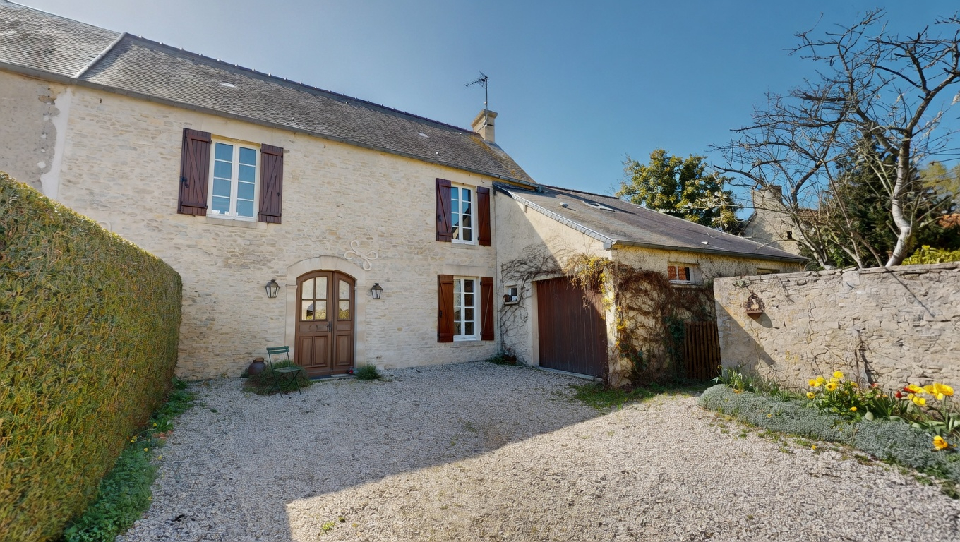 PROPRIÉTÉ EN PIERRES COUP DE COEUR - 3 CHAMBRES - AXE BAYEUX-MER Rue du Particulier vous propose à la vente cette charmante maison en pierres de 142 m² habitables, idéalement située à seulement 7 minutes de Bayeux et 6 minutes de la mer, dans un environnement très calme, sur une parcelle d'environ 1 050 m². Cette maison constitue un véritable coup de coeur, tant par la qualité de ses espaces intérieurs que par son cadre extérieur, offrant un véritable havre de paix. Au rez-de-chaussée, vous découvrirez une entrée desservant un séjour de 27 m², une cuisine indépendante avec accès direct au jardin exposé sud / sud-ouest, entièrement ensoleillé, un cellier/buanderie, un espace bureau aménagé sous un magnifique escalier, une salle d'eau ainsi qu'un WC indépendant. A l'étage, un dégagement distribue trois chambres spacieuses (21 m², 25 m² et 12 m²), dont une avec bureau attenant. Vous y trouverez également une salle de bains avec WC. En complément, la propriété dispose d'un garage, d'un jardin entièrement clos et sans vis-à-vis, d'une cour d'accueil permettant le stationnement de plusieurs véhicules, ainsi que de deux espaces de stockage de jardin. Chauffage électrique. Adoucisseur.? Menuiseries en double vitrage bois. Les informations sur les risques auxquels ce bien est exposé sont disponibles sur le site Géorisques : https://www.georisques.gouv.fr/