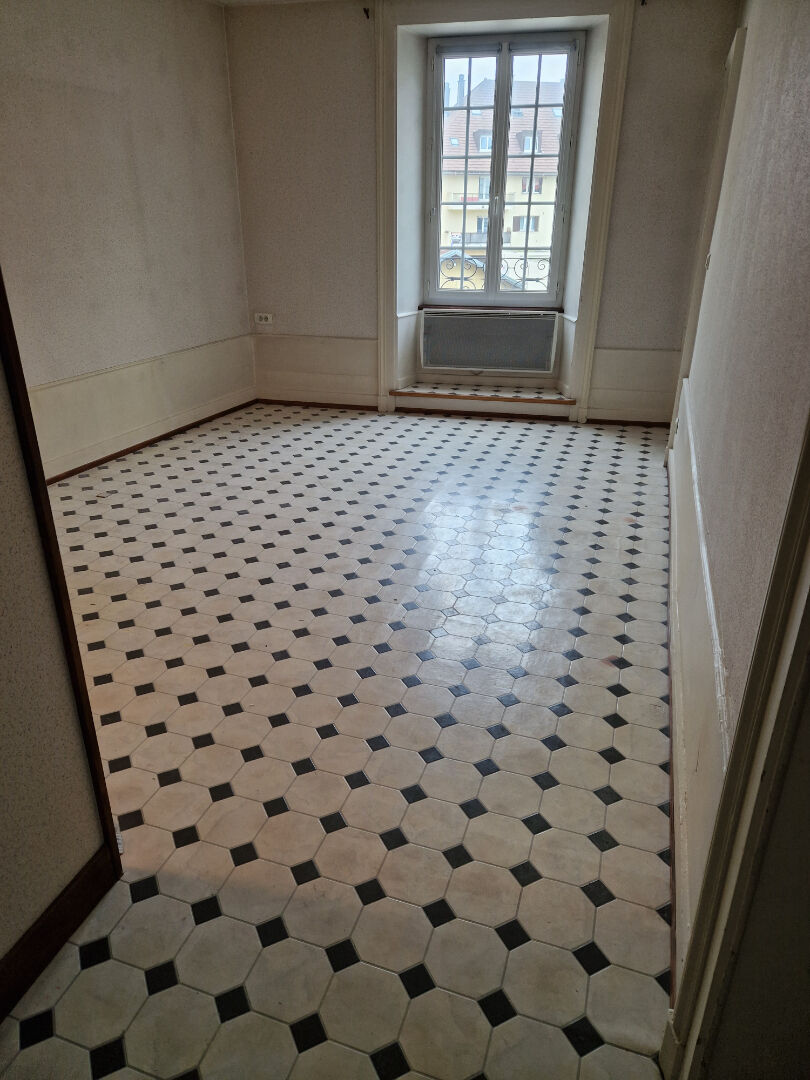Rue de Salins, au premier étage d'un petit immeuble du centre-ville, un appartement de type F2 comprenant : Un hall d'entré, un séjour, une cuisine, une chambre, une salle de bains avec WC et un cagibi (dressing). Chauffage et eau chaude : électrique. Disponible de suite. Cautionnaire demandé.