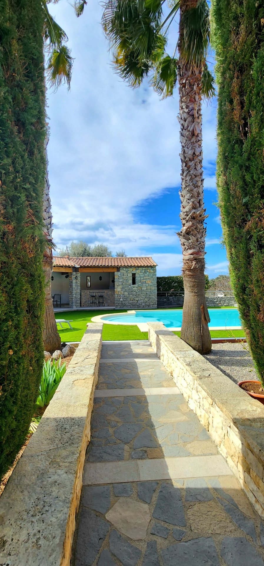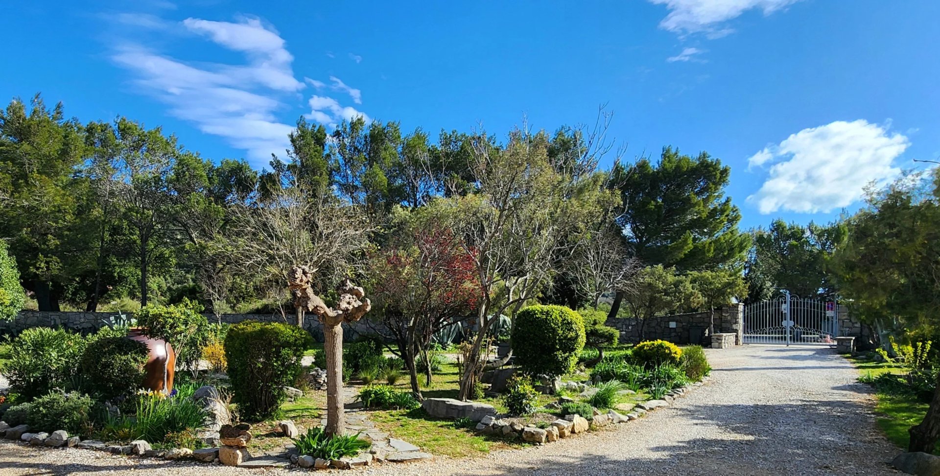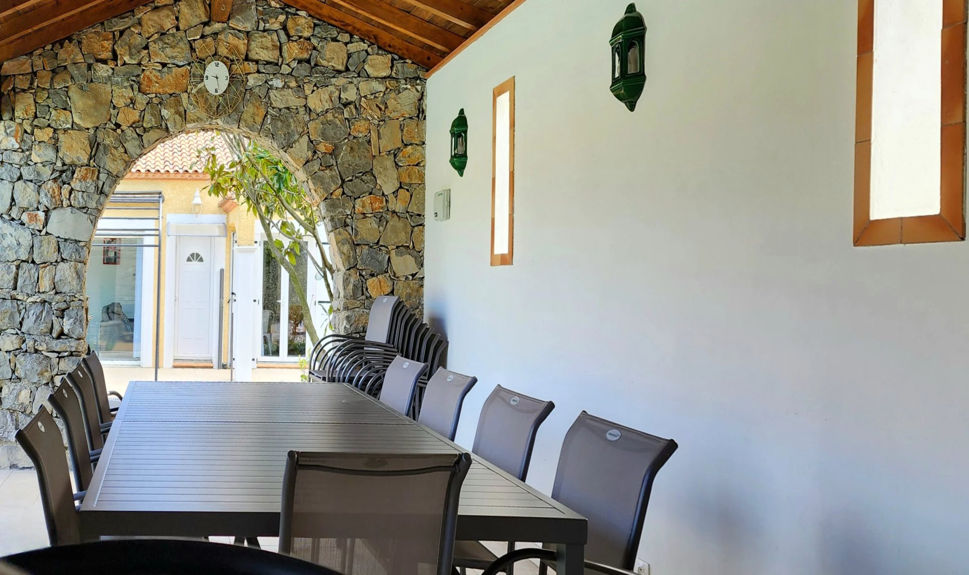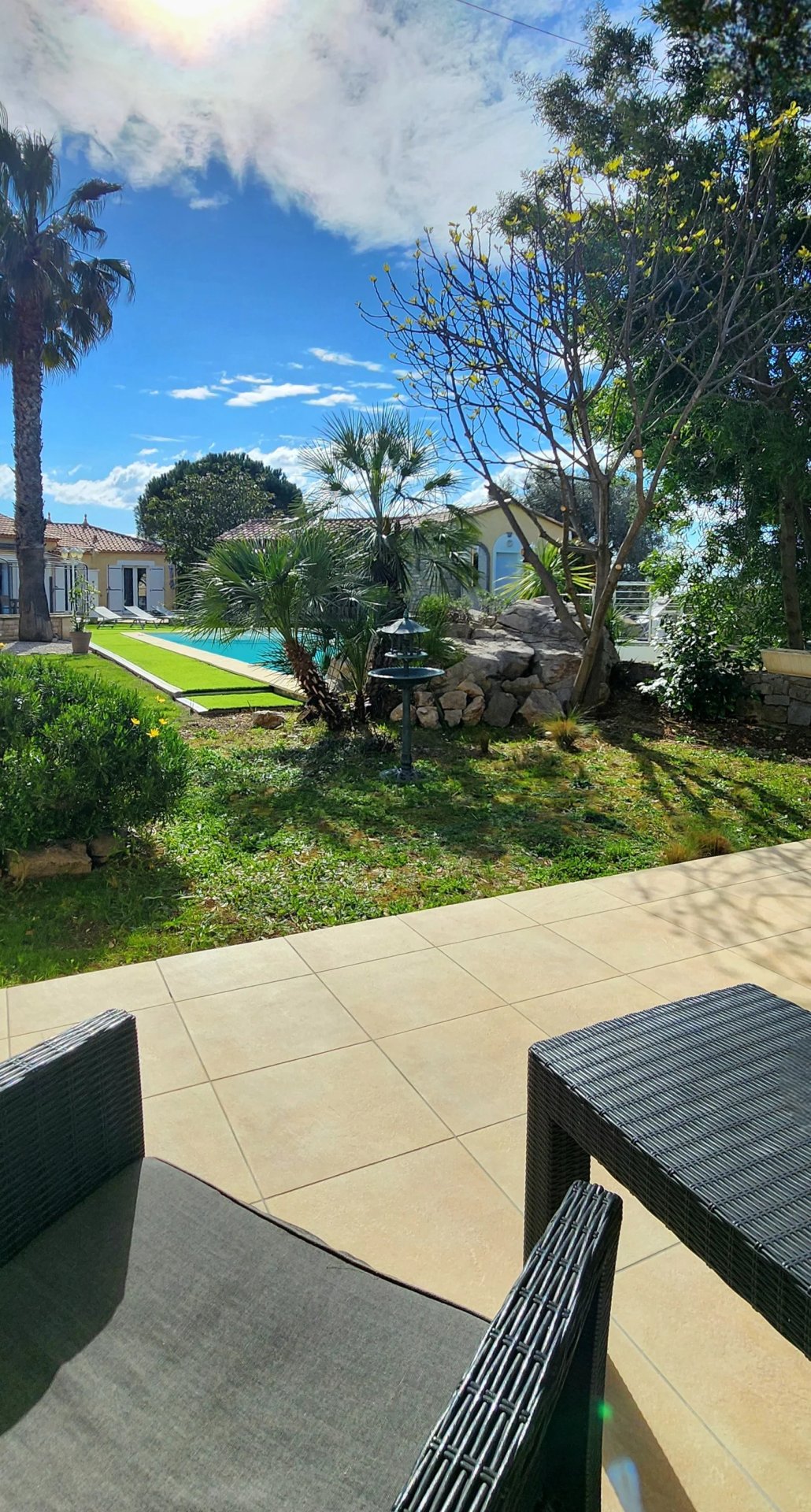 L'extérieur vous propose de nombreux espaces pour se poser, se ressourcer, une grande piscine à débordement avec son superbe pool house, un terrain de pétanque, un immense terrain clôturé pouvant accueillir des chevaux ou autres animaux.