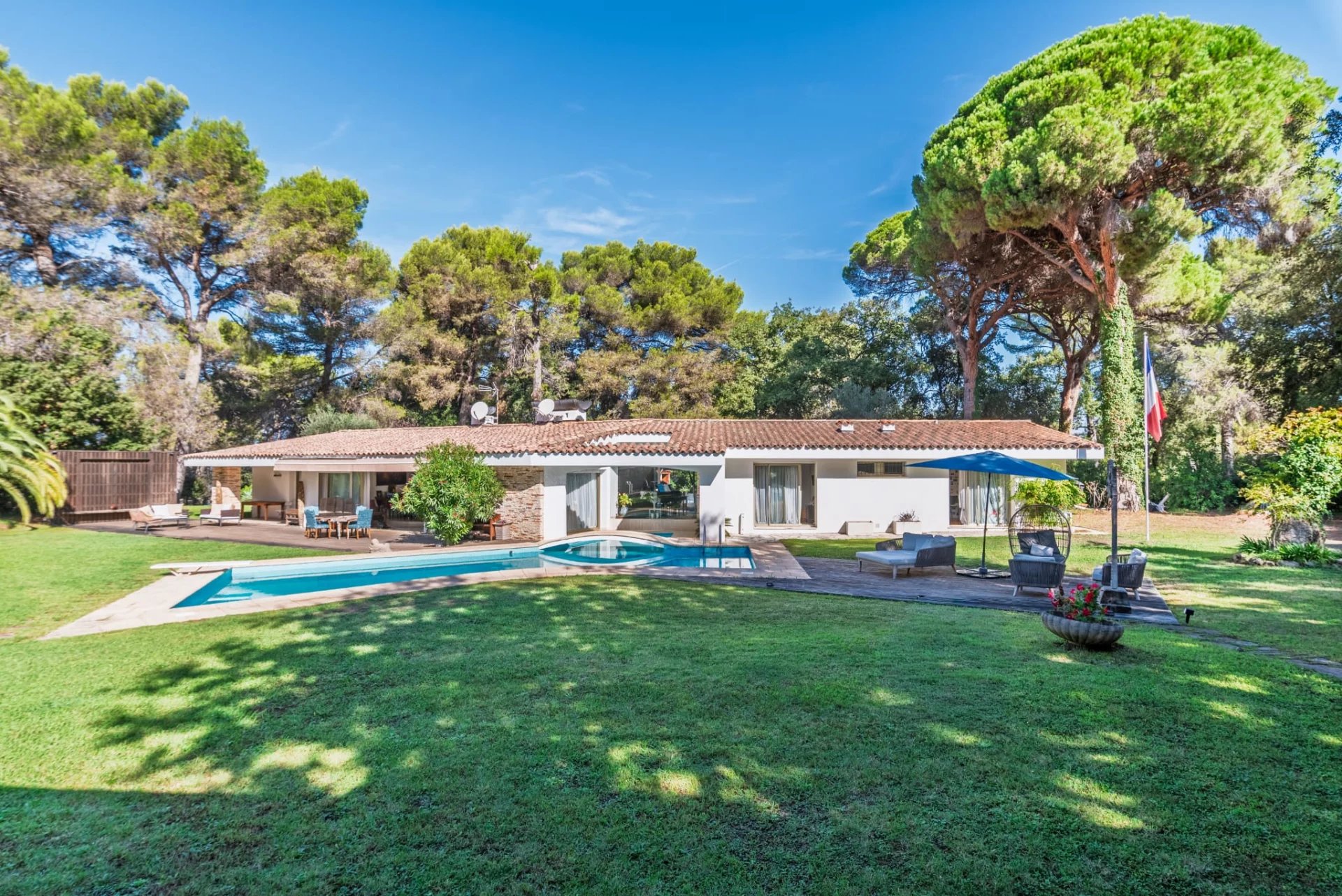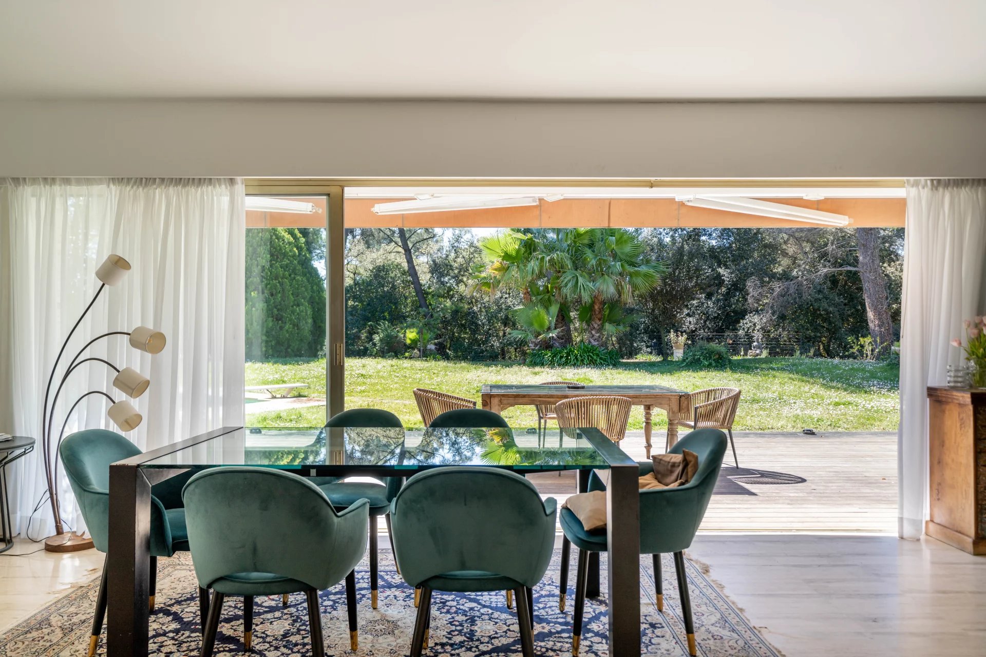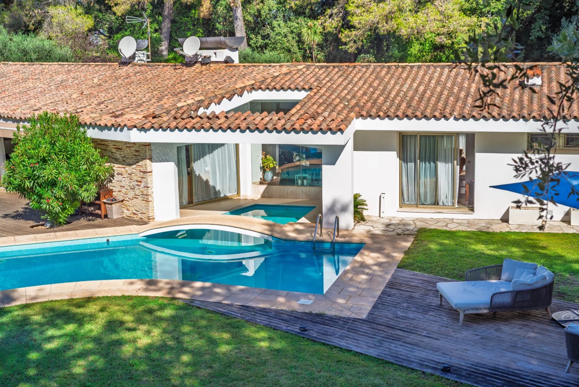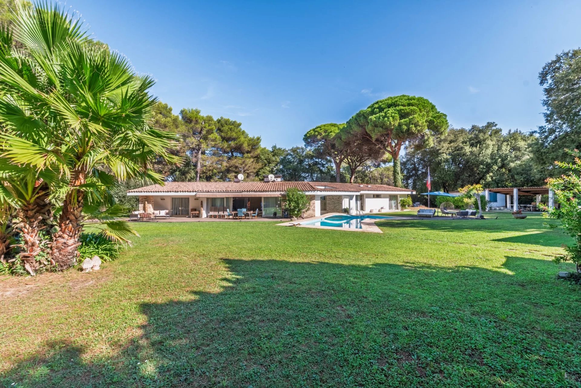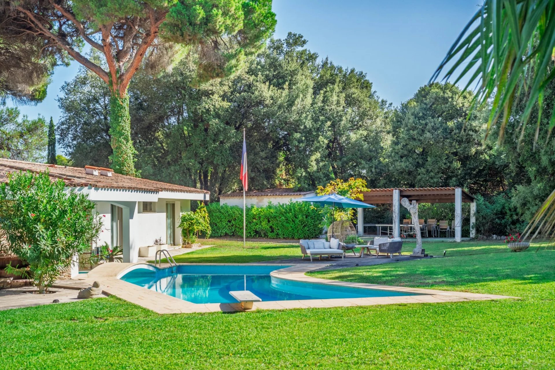 Dans un domaine fermé recherché, au calme absolu et exposée plein sud, cette propriété de charme est implantée sur un magnifique terrain paysager d’environ 1,1 hectare. La villa principale de plain-pied développe 319 m² et offre une atmosphère chaleureuse avec de beaux volumes. Elle comprend une cuisine équipée, une arrière-cuisine, ainsi qu’un espace nuit composé de 4 chambres avec salles de douche / bain. La propriété est complétée par une maison d’amis indépendante de 46 m² ainsi qu’une maison de gardien de 32 m², offrant un confort idéal pour recevoir ou loger du personnel en toute discrétion. À l’extérieur, le jardin accueille une piscine, un jacuzzi et un terrain de pétanque, créant un véritable art de vivre méditerranéen. Deux garages fermés et un parking couvert complètent l’ensemble. Des travaux de rafraîchissement sont à prévoir, offrant un fort potentiel de valorisation. Une propriété rare, alliant charme, volumes et intimité dans un cadre sécurisé et privilégié.