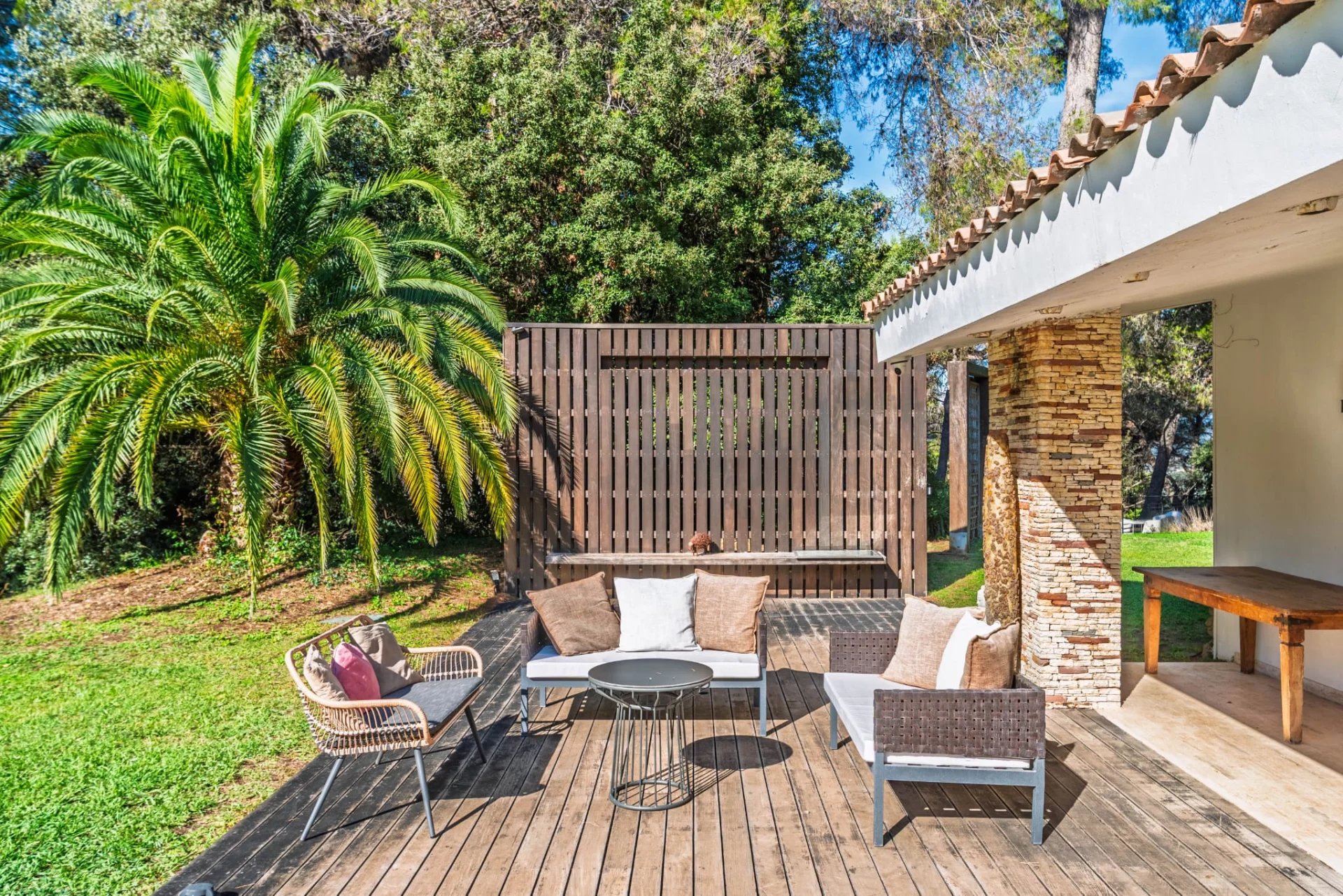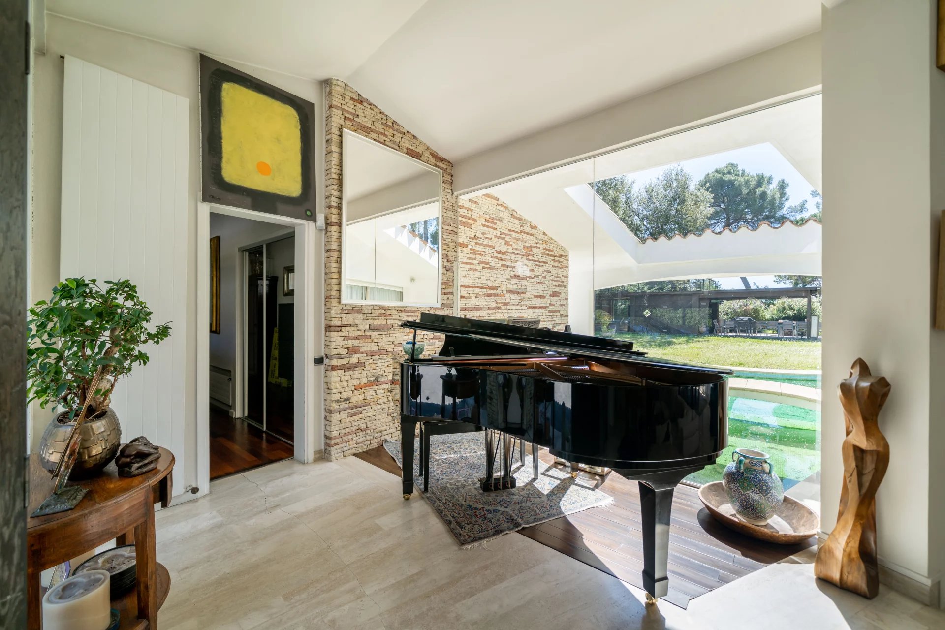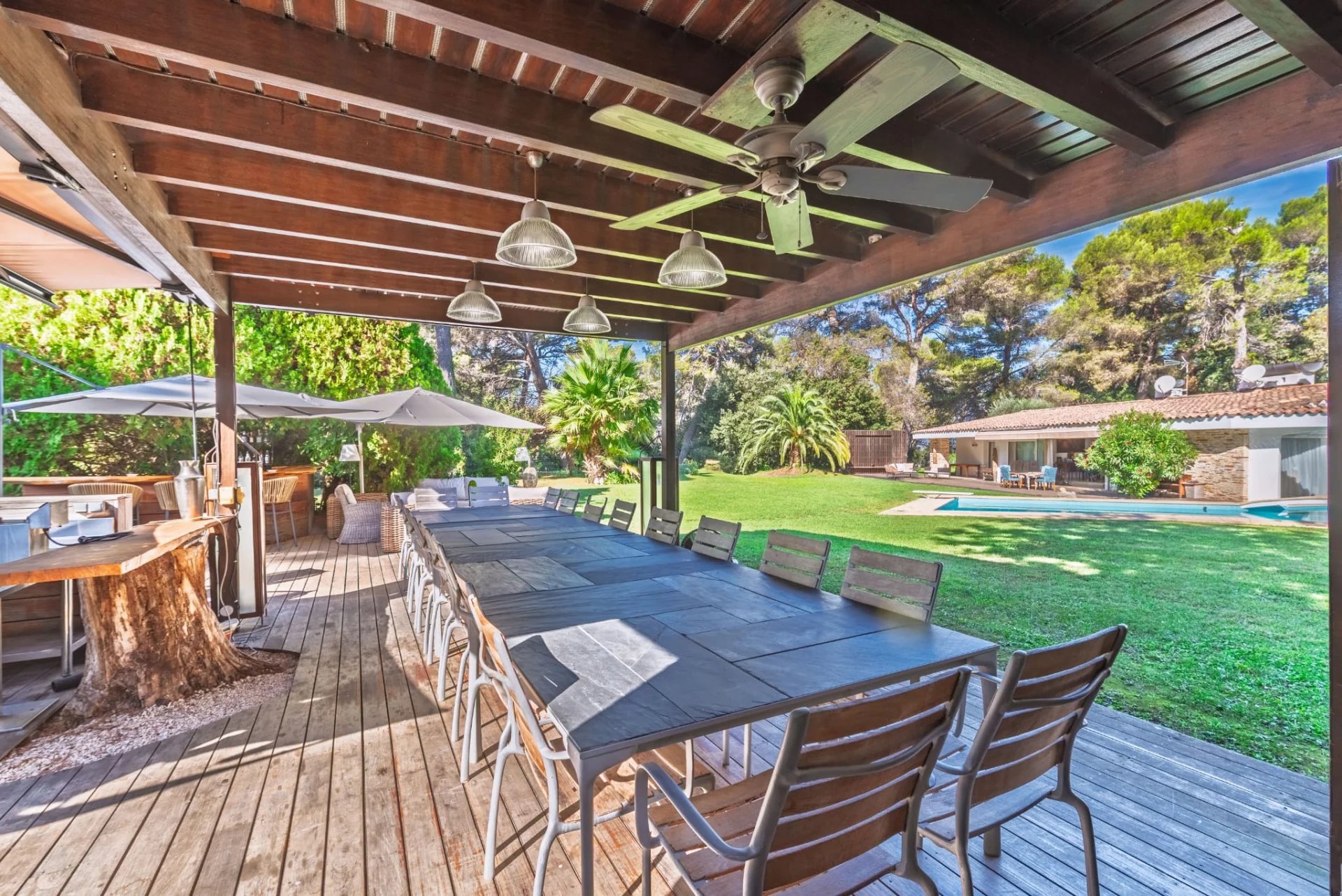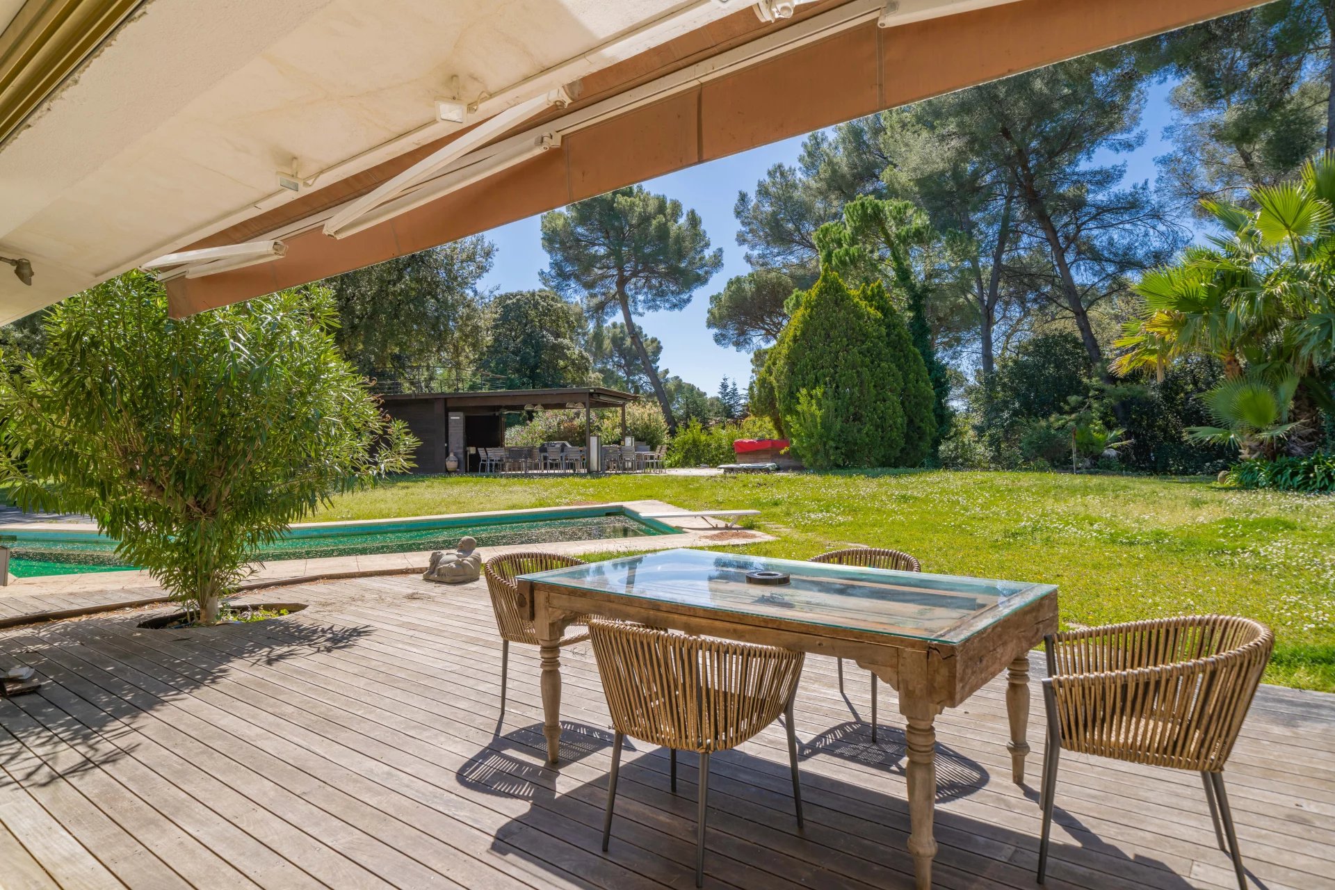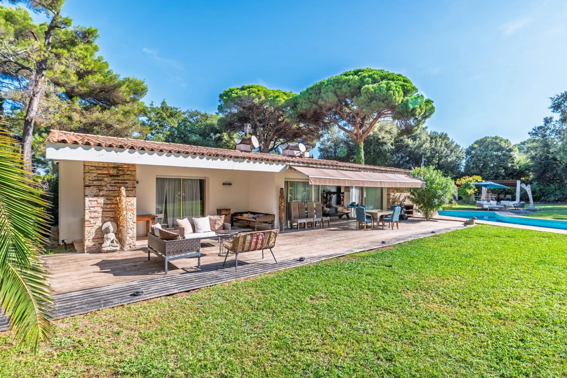 Dans un domaine fermé recherché, au calme absolu et exposée plein sud, cette propriété de charme est implantée sur un magnifique terrain paysager d’environ 1,1 hectare. La villa principale de plain-pied développe 319 m² et offre une atmosphère chaleureuse avec de beaux volumes. Elle comprend une cuisine équipée, une arrière-cuisine, ainsi qu’un espace nuit composé de 4 chambres avec salles de douche / bain. La propriété est complétée par une maison d’amis indépendante de 46 m² ainsi qu’une maison de gardien de 32 m², offrant un confort idéal pour recevoir ou loger du personnel en toute discrétion. À l’extérieur, le jardin accueille une piscine, un jacuzzi et un terrain de pétanque, créant un véritable art de vivre méditerranéen. Deux garages fermés et un parking couvert complètent l’ensemble. Des travaux de rafraîchissement sont à prévoir, offrant un fort potentiel de valorisation. Une propriété rare, alliant charme, volumes et intimité dans un cadre sécurisé et privilégié.