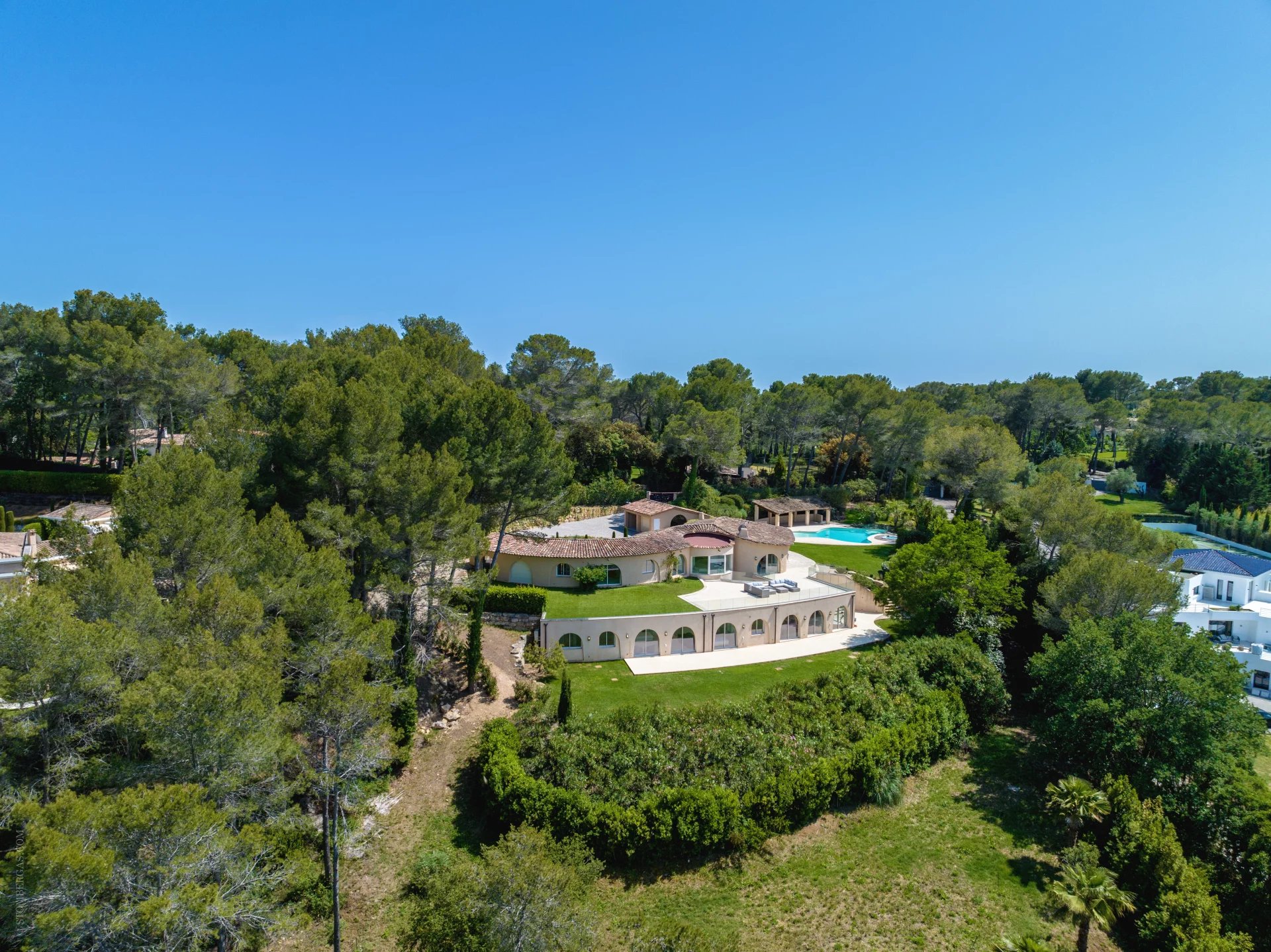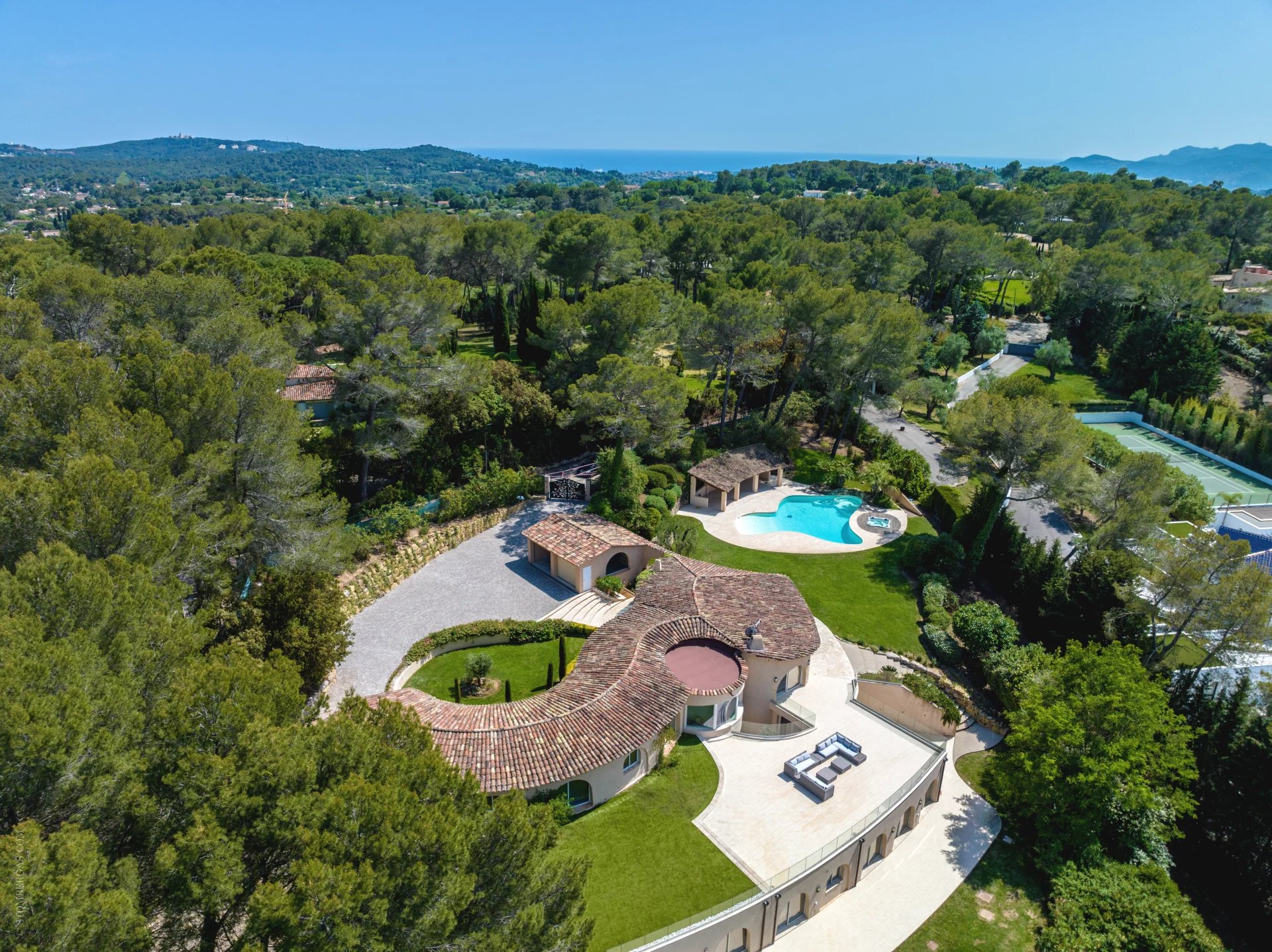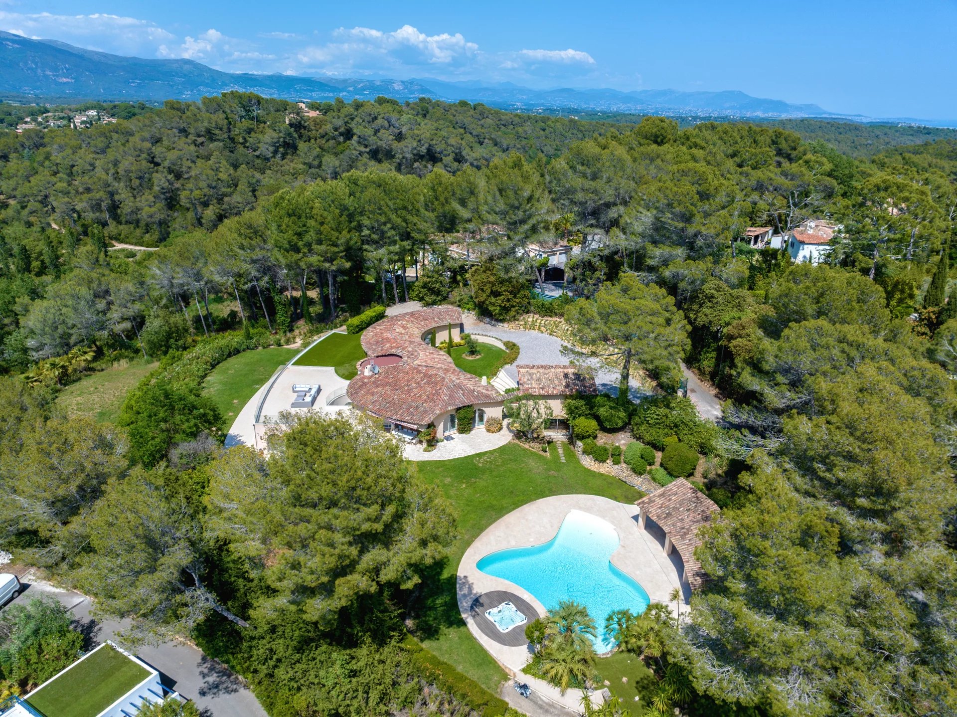 Idéalement située entre Mougins et Mouans-Sartoux, dans le meilleur secteur de l’arrière, pays cannois. Magnifique, villa d’inspiration Couëlle d’environ 540m2 sur 10.297m2 de terrain. La villa offre une magnifique vue panoramique sur le château de Castellaras. Elle se compose: Rdc : entrée, séjour, salle à manger, cuisine et quatre chambres en suites. RDJ : séjour, cuisine, deux chambres en suites, une vaste master, un appartement indépendant avec séjour, cuisine, SdB et chambre. Viennent compléter : une agréable piscine en forme libre avec pool house, jacuzzi, garage 2 voitures et nombreuses places de parking.