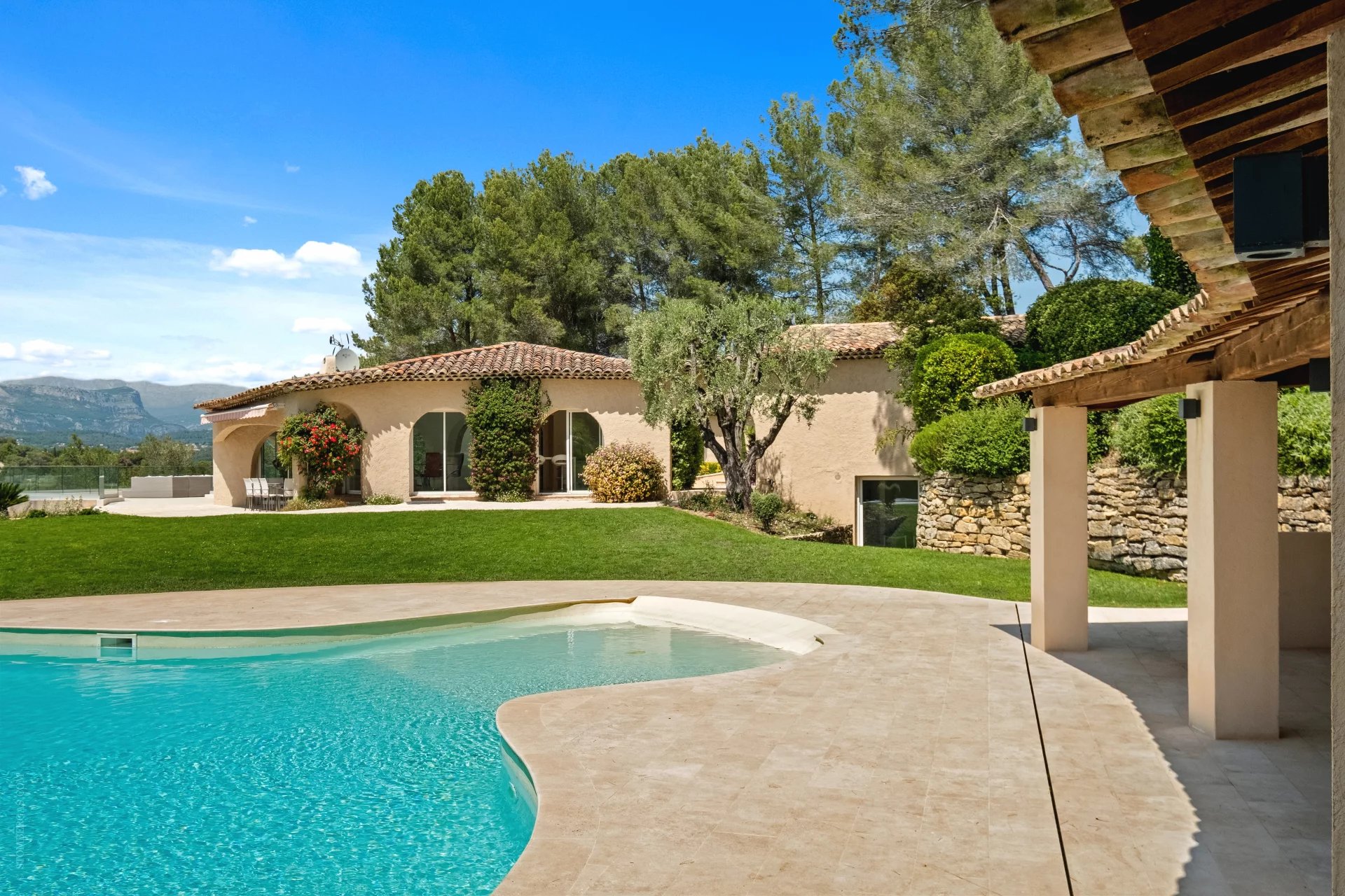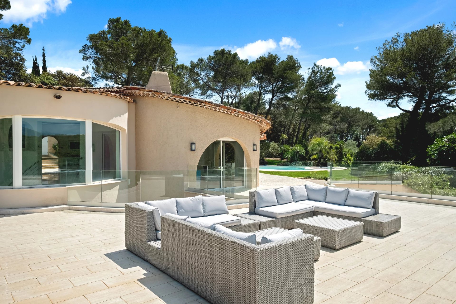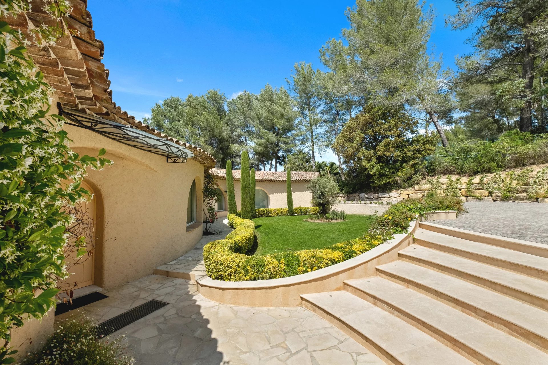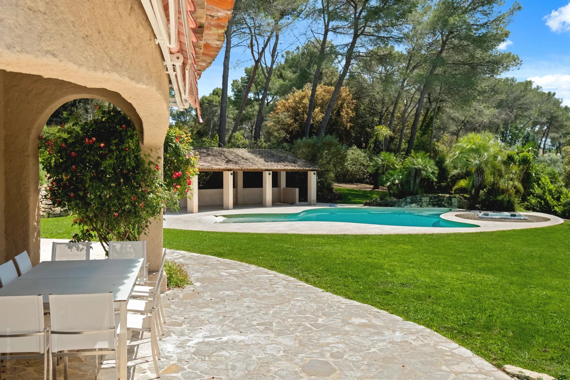 Idéalement située entre Mougins et Mouans-Sartoux, dans le meilleur secteur de l’arrière, pays cannois. Magnifique, villa d’inspiration Couëlle d’environ 540m2 sur 10.297m2 de terrain. La villa offre une magnifique vue panoramique sur le château de Castellaras. Elle se compose: Rdc : entrée, séjour, salle à manger, cuisine et quatre chambres en suites. RDJ : séjour, cuisine, deux chambres en suites, une vaste master, un appartement indépendant avec séjour, cuisine, SdB et chambre. Viennent compléter : une agréable piscine en forme libre avec pool house, jacuzzi, garage 2 voitures et nombreuses places de parking.