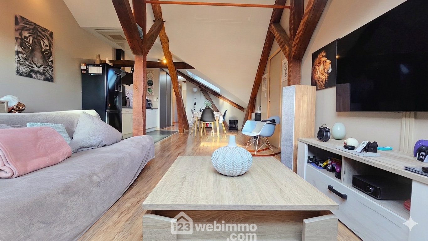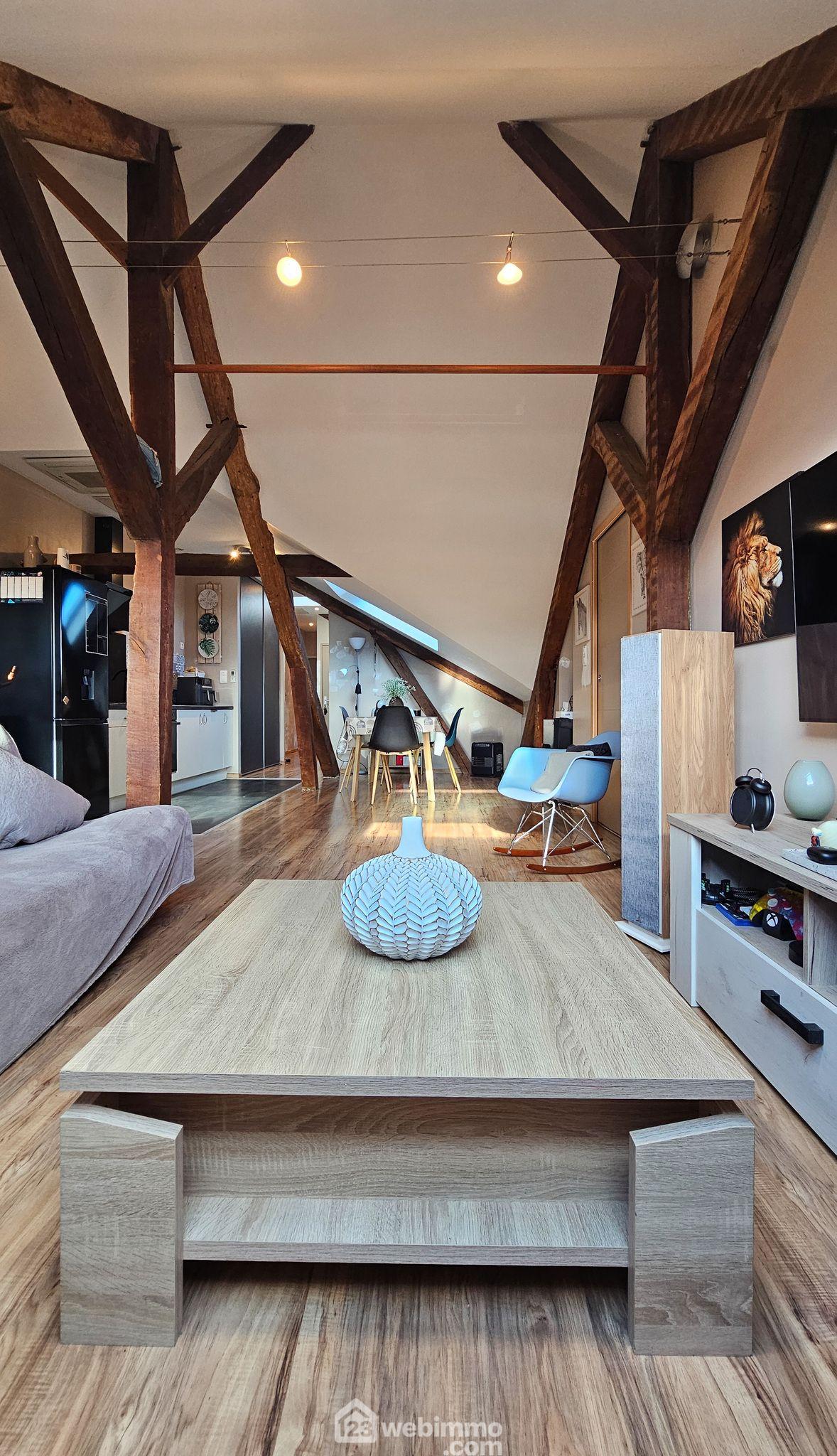 Votre agence 123webimmo vous présente : Au coeur du centre-ville de Nay, tout en étant à l'abri des nuisances, cet appartement situé au dernier étage d'une petite copropriété à faibles charges (syndic bénévole) ne manque pas de charme. Vous profitez ici de 49 m² en loi Carrez et de 80 m² au sol, offrant de beaux volumes et une vraie sensation d'espace, d'autant plus appréciable sous les toits. Situé au dernier étage, il bénéficie d'une belle luminosité et d'une vue dégagée sur les toits de Nay avec les Pyrénées en toile de fond. Dès l'entrée, vous êtes séduit par le cachet : poutres et fermes apparentes apportent une vraie personnalité à l'ensemble. La pièce de vie, spacieuse et lumineuse, avec cuisine aménagée, sera entièrement repeinte pour la vente, offrant un espace encore plus agréable. L'agencement est confortable avec deux chambres, une salle de bain et un WC indépendant. Côté confort, l'appartement est équipé d'une climatisation réversible dans l'ensemble des pièces, ainsi que de la fibre. Le DPE est classé C. La toiture de l'immeuble a été refaite il y a une dizaine d'années, un vrai plus pour la tranquillité. En bonus, vous bénéficiez d'une cave et d'un petit jardin commun, parfait pour profiter des beaux jours. Un bien plein de caractère, idéal pour un premier achat, un pied-à-terre ou un investissement locatif. Les informations sur les risques auxquels ce bien est exposé sont disponibles sur le site du gouvernement : https://www.georisques.gouv.fr.Informations LOI ALUR : Soumis au régime de copropriété. Nombre de lots : 5. Quote part annuelle(moyenne) : 50 euros. Honoraires charge vendeur. (gedeon_51778_33036846)