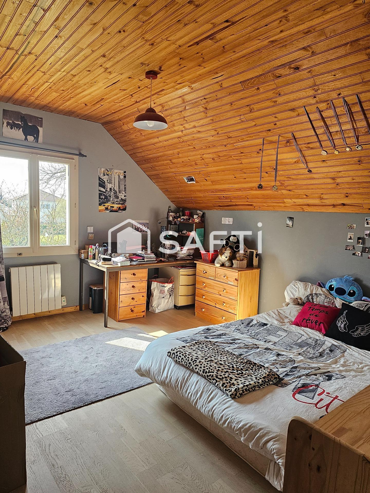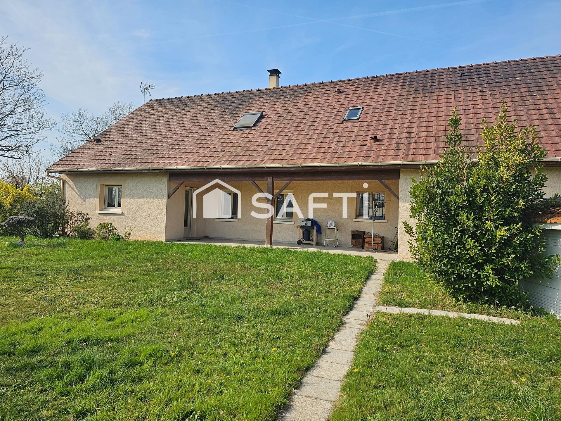 Située à Ouroux / Saône, cette maison individuelle construite en 2006 offre de belles prestations et un excellent état d'entretien. Implantée sur un terrain clos de 2 398 m² avec portail électrique, elle bénéficie d'une vue dégagée sur la campagne et d'un accès à la voie verte. Au rez-de-chaussée, un hall d'entrée fermé dessert un vaste séjour lumineux de 60 m² avec salon, salle à manger et cuisine aménagée et équipée, ouvert sur une grande terrasse couverte. Ce niveau comprend également deux chambres, une salle d'eau, un WC indépendant, une buanderie, ainsi qu'un accès à un double garage avec atelier et un grenier aménageable au-dessus. À l'étage, vous trouverez trois chambres supplémentaires, une mezzanine, une salle d'eau et un WC indépendant. Les extérieurs offrent plusieurs dépendances : garage en bois avec appentis et abris de jardin. Côté confort, la maison est équipée d'un poêle à bois 'Godin' en complément, des radiateurs électriques, d'un puits climatique sans échangeur (système de ventilation) et d'une climatisation à l'étage. Maison fonctionnelle, bien entretenue et idéalement située, offrant espace et tranquillité. Les informations sur les risques auxquels ce bien est exposé sont disponibles sur le site Géorisques : www.georisques.gouv.frPrix de vente : 315 000 ¤Honoraires charge vendeurContactez votre conseiller SAFTI : Murielle JOACHIM, Tél. : 06 83 58 27 94, E-mail : murielle.joachim@safti.fr - EI - Agent commercial immatriculé au RSAC de Chalon-sur-Saône sous le numéro 493784763.Informations LOI ALUR : Honoraires charge vendeur. (gedeon_26118_33005384)