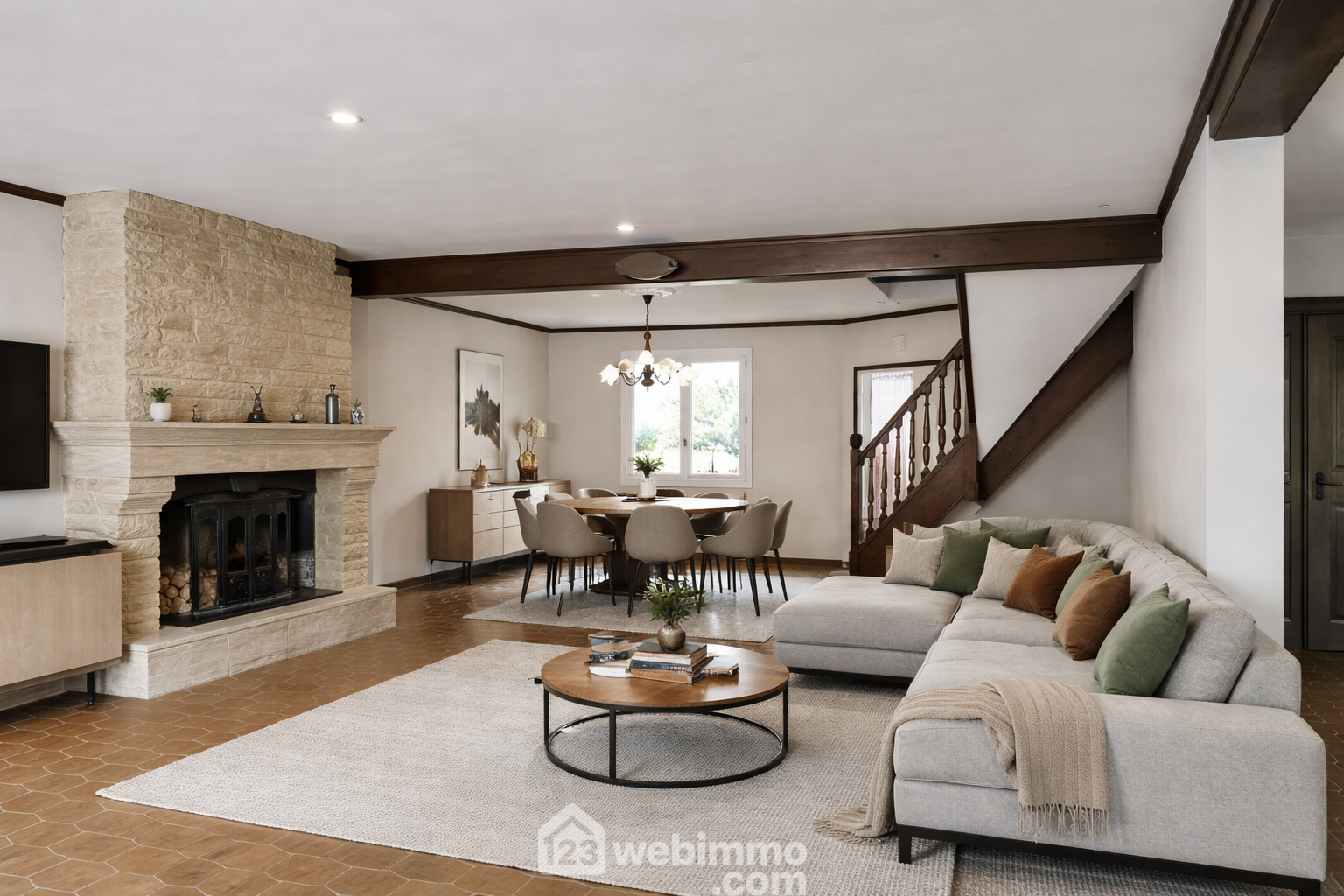 Votre agence 123webimmo vous présente : Située dans une zone calme du village, à proximité des plages et des commerces, cette maison de caractère T / 6 de 230 m², vous propose : *Au RdC, - 1 Garage fermé de 34 m² pouvant recevoir 1 à 2 véhicules. - 1 Cour de 33 m² à l'entrée de la maison. - 1 Jardin de 50 m² avec terrasse couverte. - 1 Patio intérieur de 27 m². - 1 Buanderie de 3 m². - 1 Spacieuse pièce de vie de 57 m² avec sa cheminée en pierre de Fontvieille. - 1 cuisine traditionnelle de 16 m². - 1 WC séparé. - 1 Placard e rangement. * Au 1er niveau, - 5 Chambres de 10 à 12 m² chacune, dont 4 chambres pourvues d'un balcon / loggia. - 1 Salle de bain de 5 m² - 1 Salle de bain de 7 m² avec WC. - 1 Mezzanine de 6 m² - 1 Mezzanine de 7 m² - Combles accessibles pour rangement. Nous vous proposons 3 photos générés par I. A. (intelligence artificielle) avec une projection réalisable de la pièce de vie. Ce bien d'exception réalisé avec des matériaux nobles convient parfaitement pour la vie de famille ou la location de prestige, aucun travaux nécessaire à prévoir, la cuisine est en chêne massif avec un plan de travail en granit rose, mur intérieur et mur de soutien en pierre de Fontvieille, cheminée réalisée sur mesure en pierre de Fontvieille, l'escalier desservant le 1er étage à été fait sur mesure en chêne massif, marbre rose et marbre de carrare dans les salle de bains. Les équipements : * Menuiserie double vitrage PVC et ALU dans toutes les pièces. * Cheminée à foyer fermé avec récupérateur de chaleur. * Barbecue en pierre. * Vide sanitaire. * 2 Cumulus de 200L. Pas de copropriété. Taxe foncière : 1500¤ / an. Les informations sur les risques auxquels ce bien est exposé sont disponibles sur le site du gouvernement : https://www.georisques.gouv.fr.Informations LOI ALUR : Honoraires charge vendeur. (gedeon_25761_32992582)