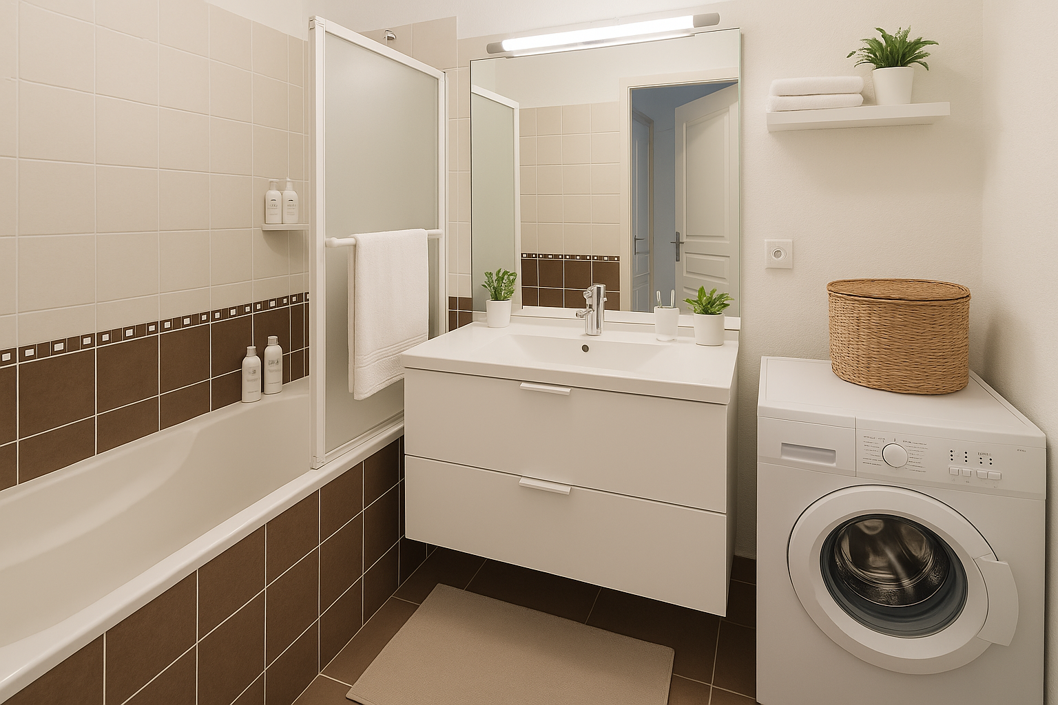 Il se compose : d'une entrée avec placard, d'une cuisine équipée ouverte sur le coin repas, avec accès direct à une spacieuse terrasse carrelée de 12 m² (celle-ci offre une magnifique vue dégagée sur le Môle et le Mont Orchez, idéale pour profiter des couchers de soleil), d'un séjour, d'une chambre avec placard intégré, d'un bureau (pouvant faire office de chambre d'enfant - 7,5 m²), d'un WC indépendant et d'une salle de bains avec baignoire - meuble vasque - emplacement lave-linge et sèche-serviettes.