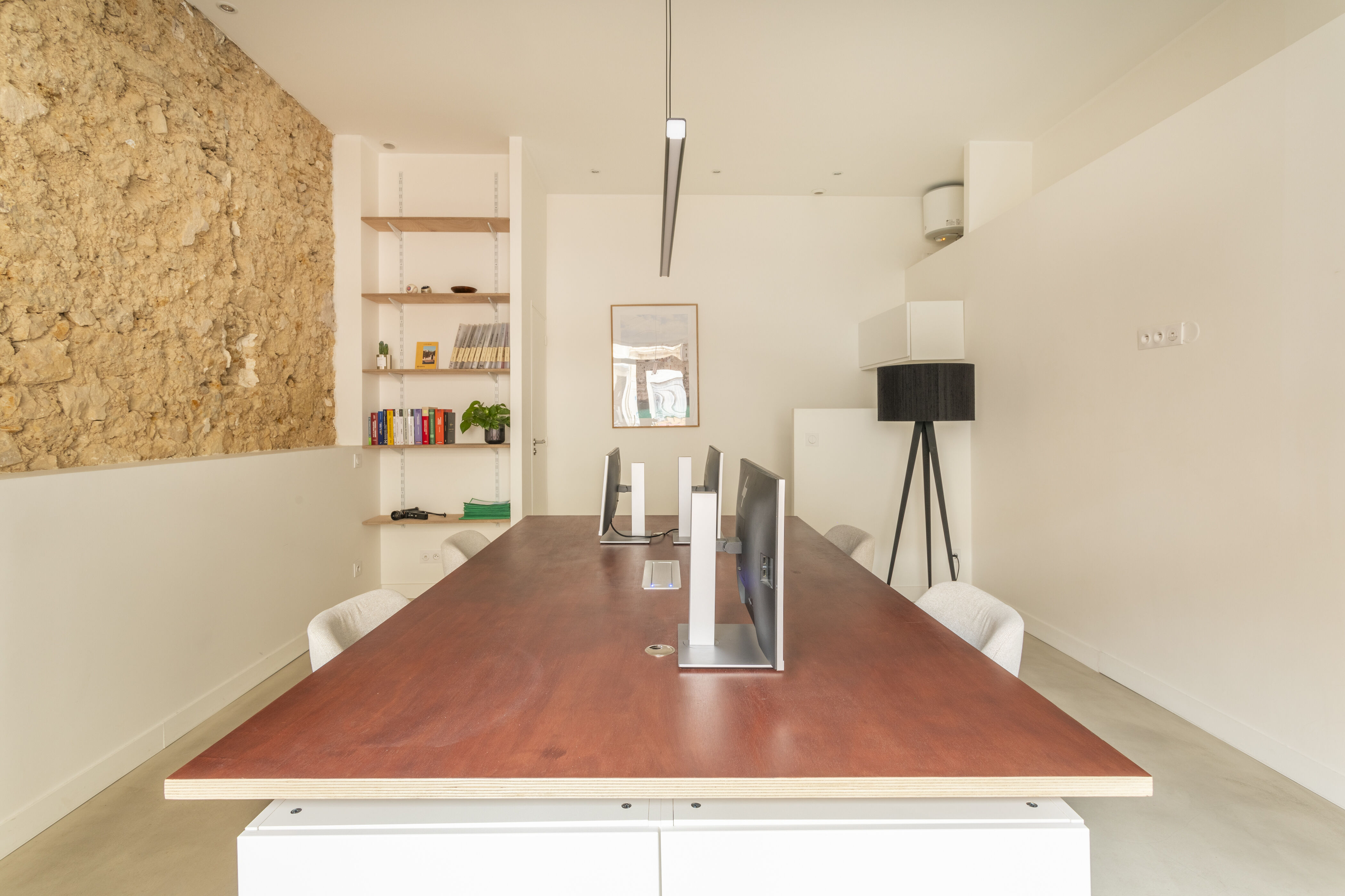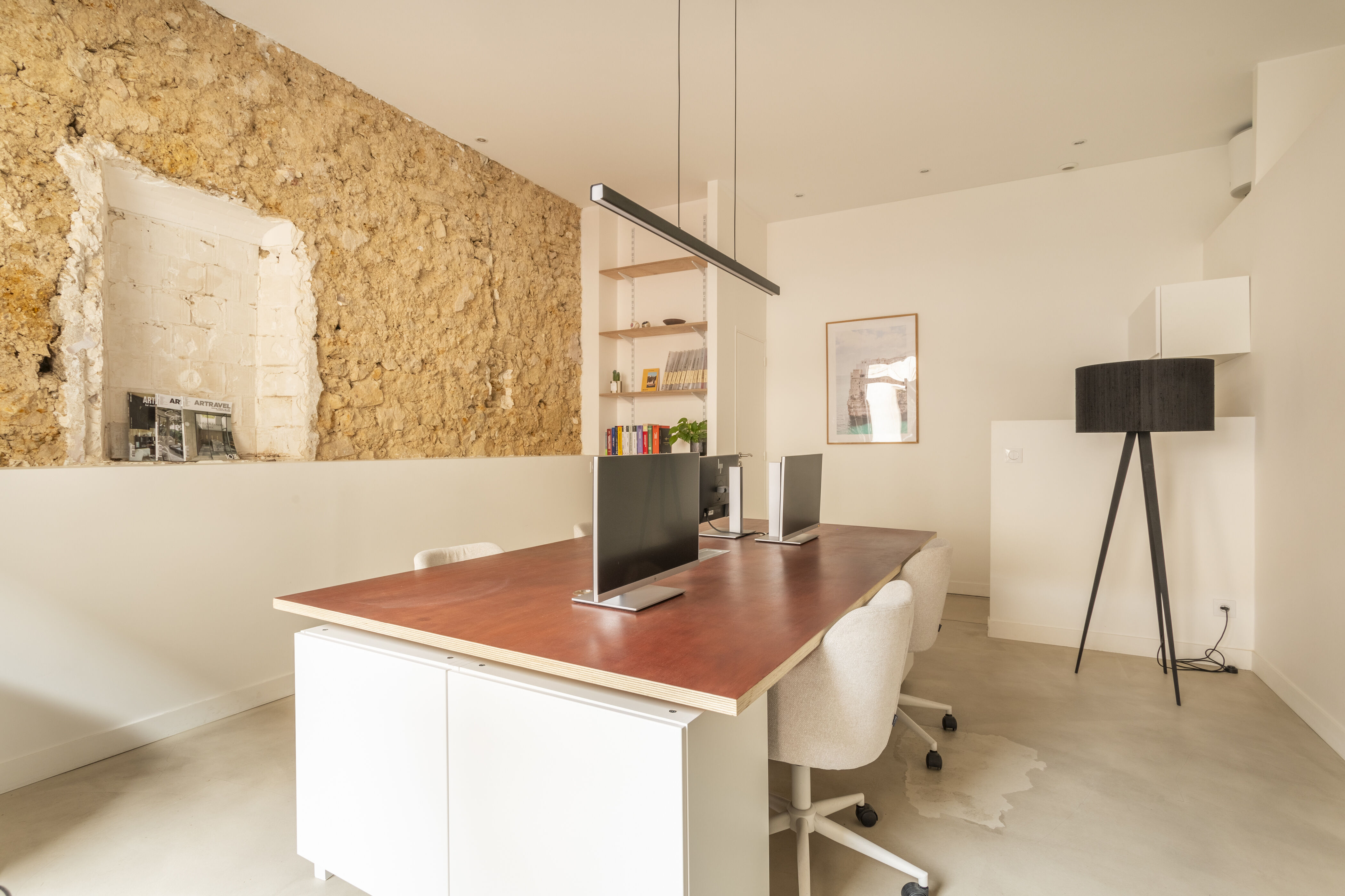 Actuellement bureaux, il peut accueillir tout autre projet. Entièrement rénové avec goût il dispose de toutes fonctionnalités : vitrine avec rideau électrique, climatisation, et grande cave de 28,52 m² accessible dans le local.