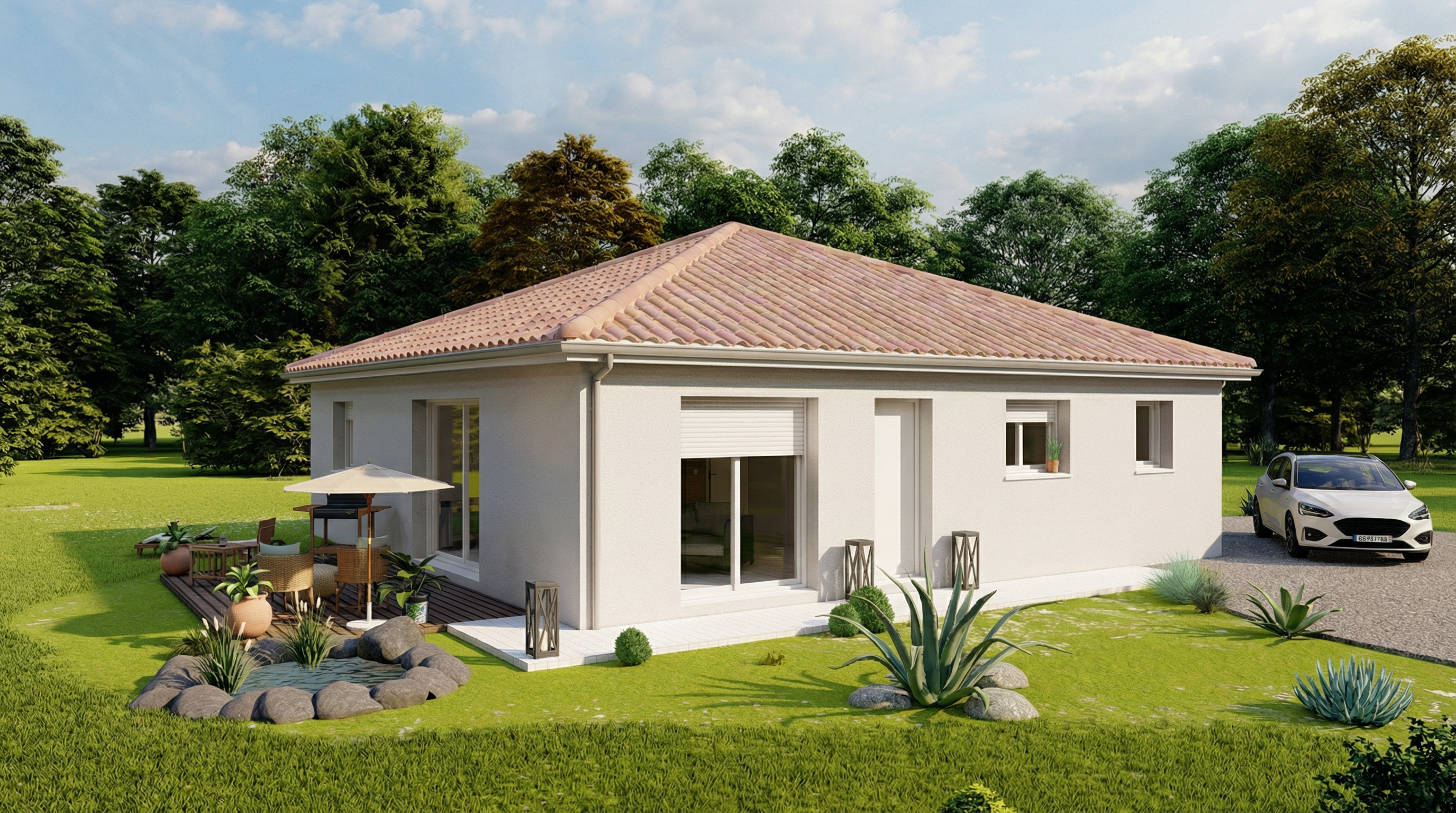 Garantie d'achèvement et de livraison à prix et délais convenus et Assurance Dommages-Ouvrage incluses. Non mandaté pour réaliser la vente du terrain, sous réserve de disponibilité de notre partenaire foncier.