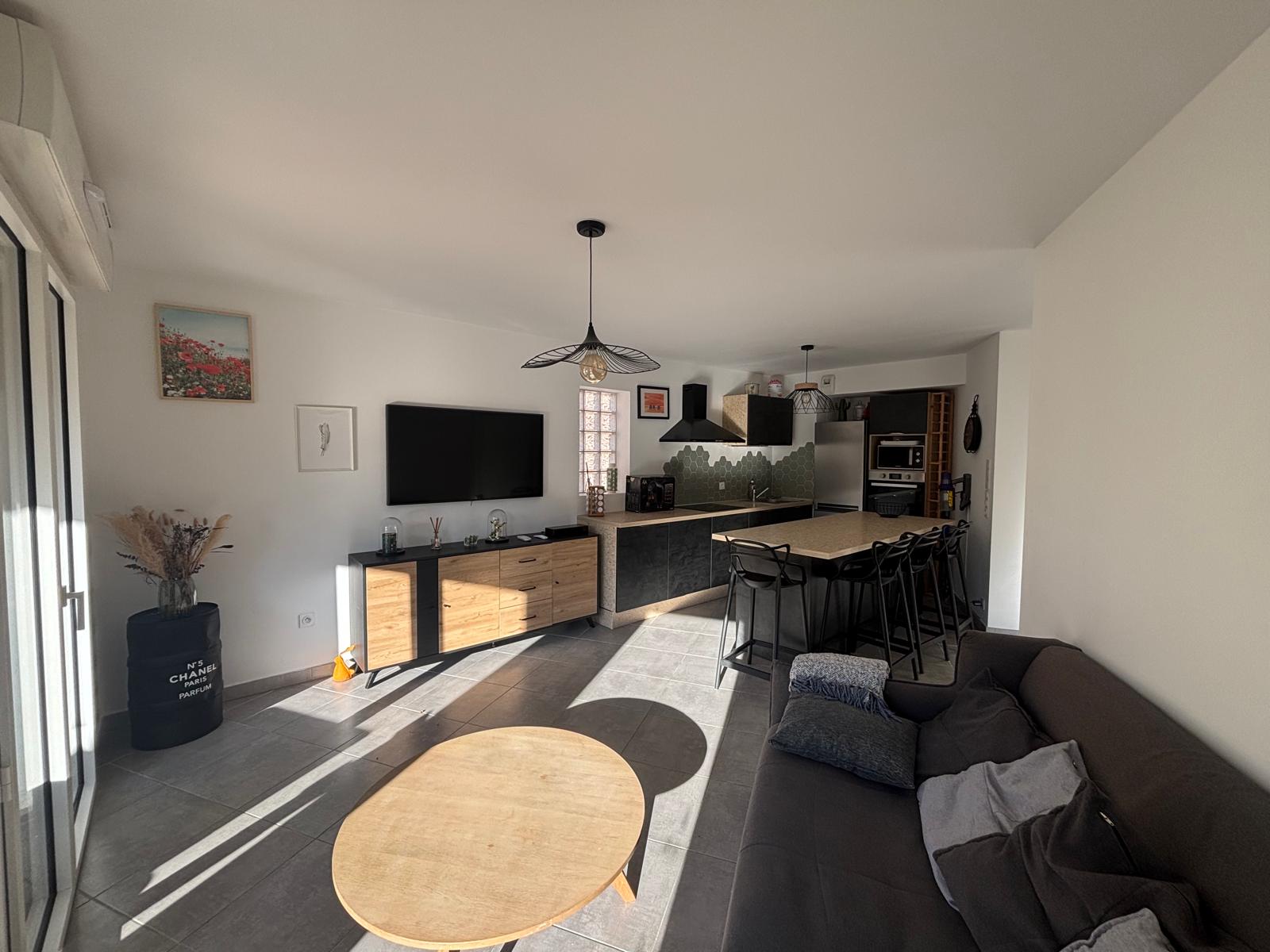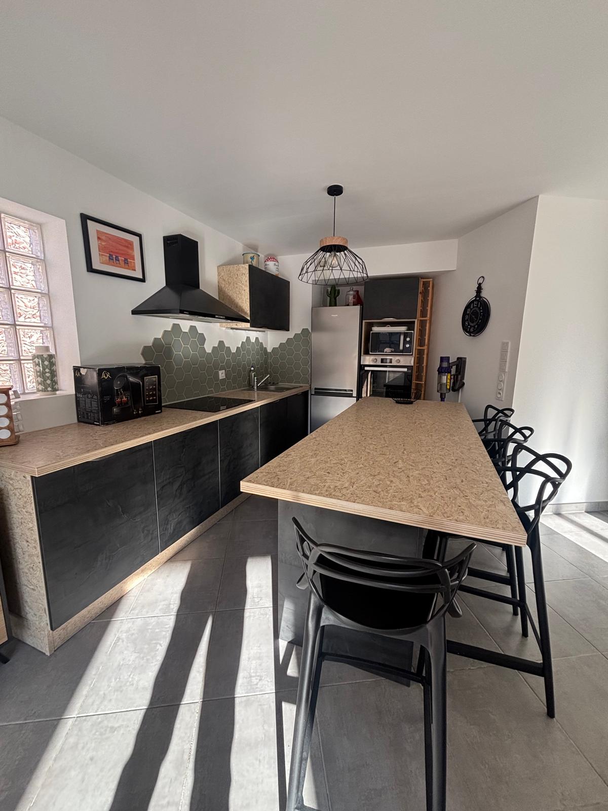 Cuisine équipée ouverte sur un séjour lumineux