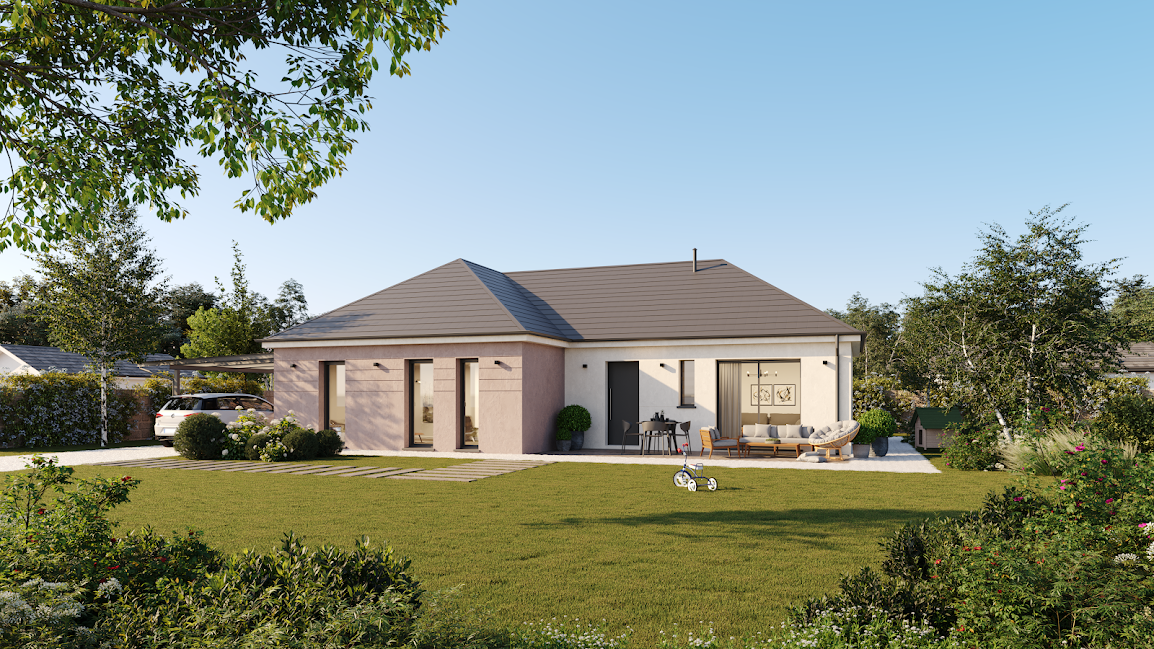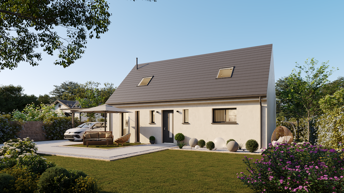 Votre projet de construction sur un terrain de 540 m². pièce de vie avec cuisine ouverte, une suite parentale avec dressing + 2 ch, SDB, Buanderie, etc. - Norme RE 2020 (pompe à chaleur) - Volets roulants, CDI Obligatoire,
