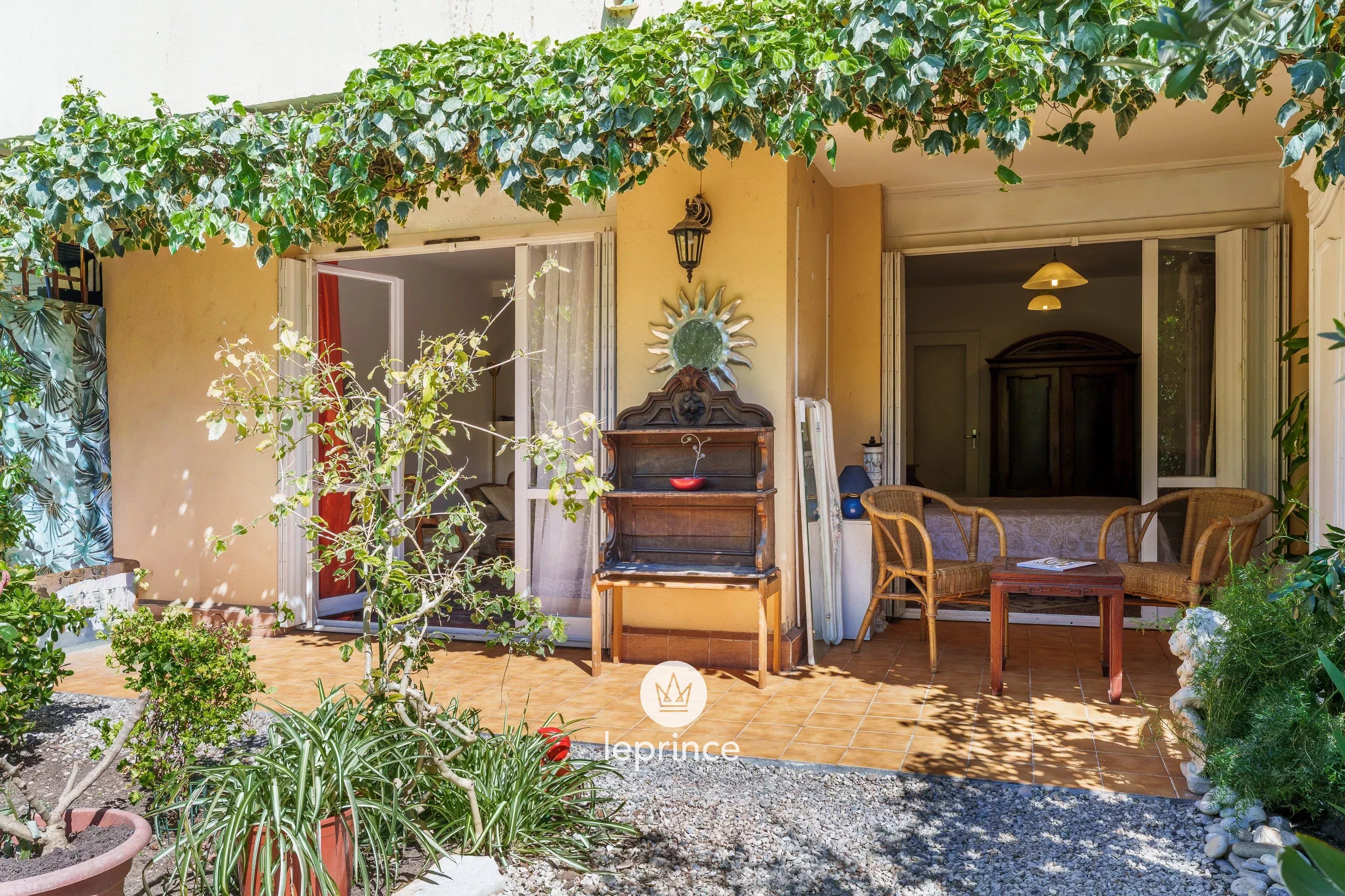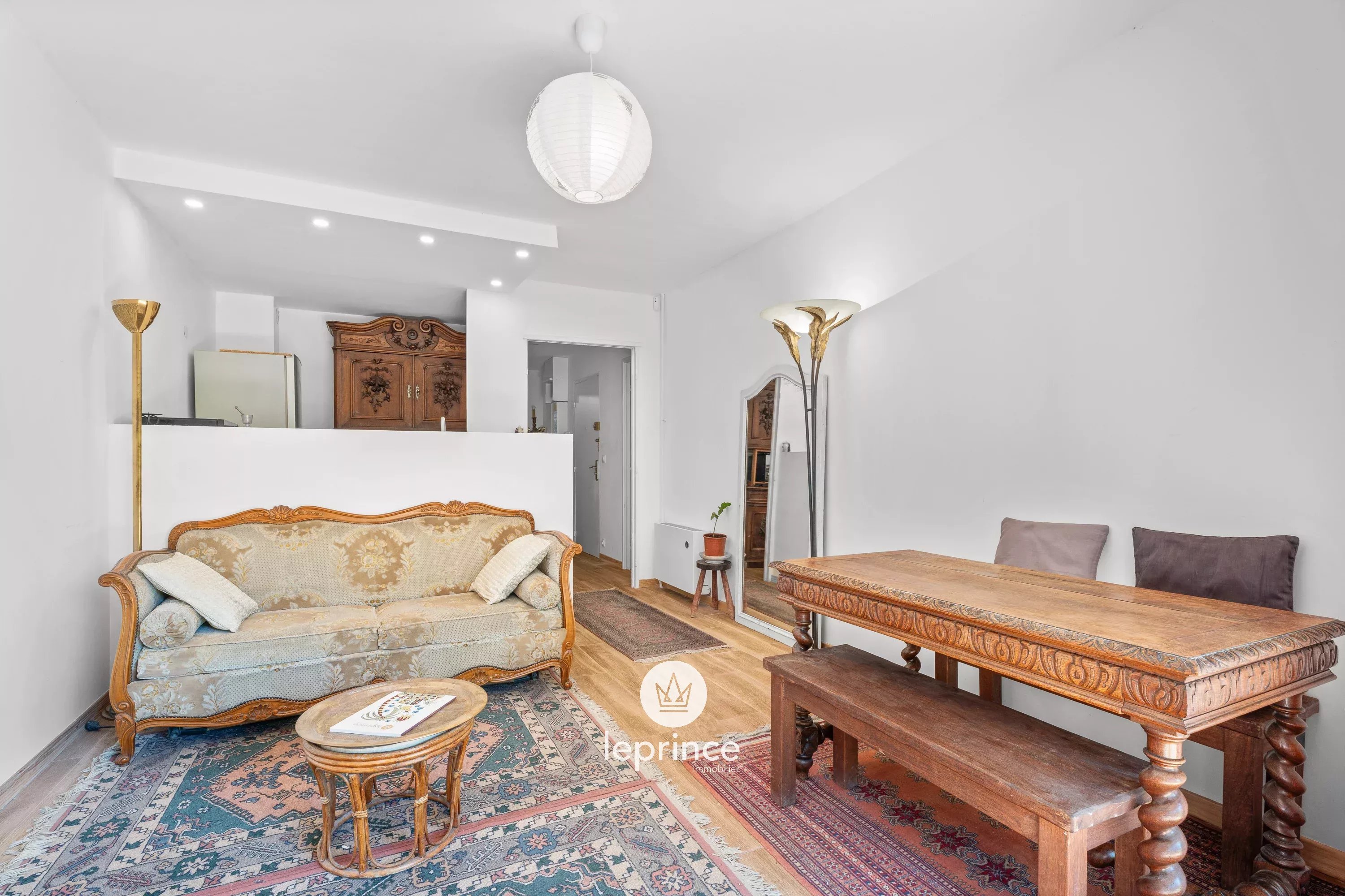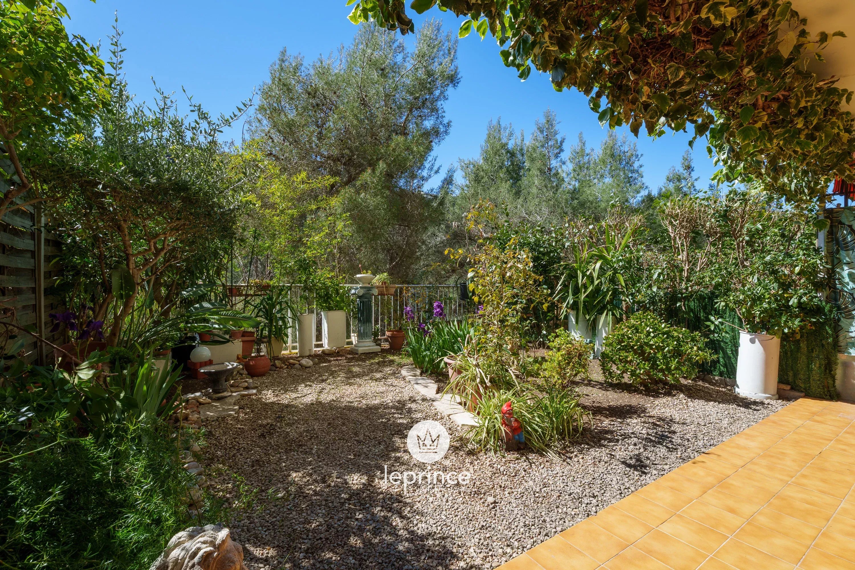 L’appartamento si apre su un soggiorno con cucina semi-aperta, che offre uno spazio abitativo funzionale. Questo spazio dà accesso a un piacevole giardino di 40 m² con vista sul verde.