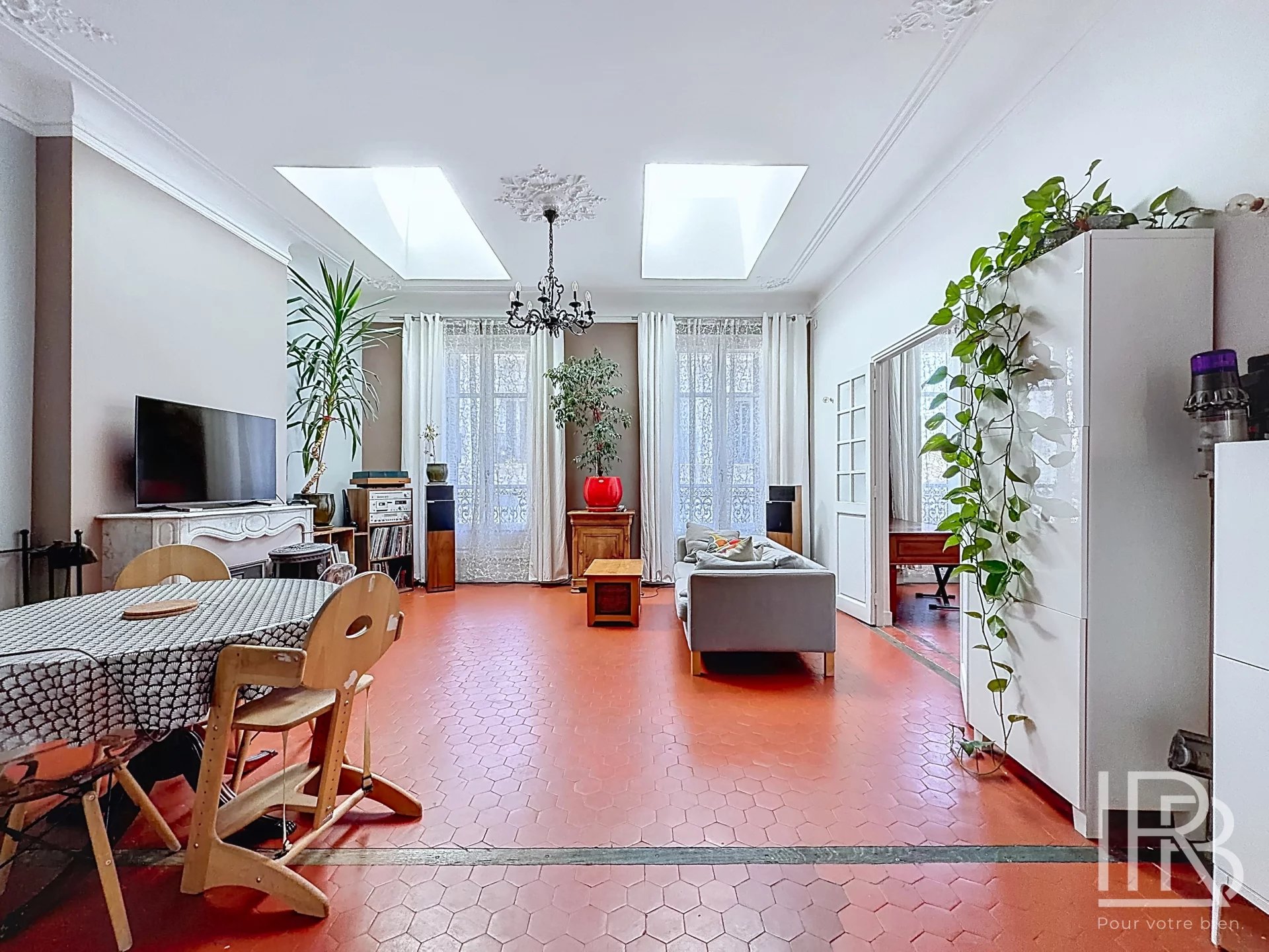 Dans un immeuble bien entretenu, cet ensemble immobilier rare développe 171 m² Carrez répartis sur deux niveaux pas réunis (4e et 5e étages, dernier étage sans ascenseur), actuellement exploités comme une seule habitation familiale. L’organisation des volumes permet une grande flexibilité d’usage, avec la possibilité de conserver une grande maison familiale ou de créer deux logements indépendants grâce à la présence de deux compteurs séparés.