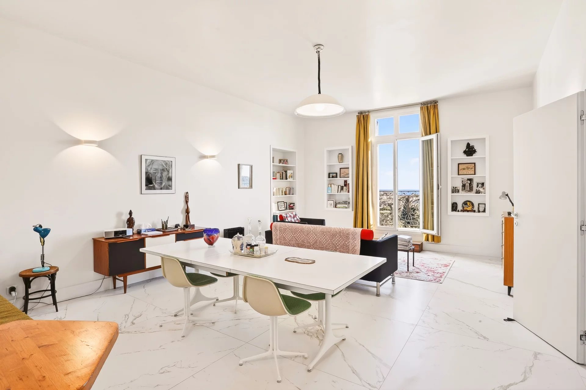 Au sein de l’un des palaces les plus iconiques et confidentiels de la Riviera, découvrez un bien d’exception où se conjuguent élégance intemporelle, raffinement absolu et art de vivre méditerranéen. Perché au dernier étage, cet appartement de 123 m², entièrement repensé avec des matériaux nobles et des finitions d’une qualité remarquable, offre une expérience résidentielle rare, à la hauteur des adresses les plus exclusives. Dès l’entrée, le ton est donné : un hall élégant aux lignes épurées introduit des espaces parfaitement orchestrés, où chaque détail a été pensé avec exigence. La cuisine, résolument contemporaine et entièrement équipée, séduit par son design sophistiqué et sa parfaite intégration aux volumes de réception. L’espace nuit révèle deux suites somptueuses, véritables cocons de sérénité, chacune dotée de sa salle de bain privative aux prestations haut de gamme. Un espace bureau, discret et parfaitement aménagé, complète l’ensemble et peut aisément être transformé en une chambre supplémentaire, offrant ainsi une grande flexibilité d’usage. Le séjour, baigné de lumière naturelle grâce à une exposition plein sud, s’ouvre sur une vue mer spectaculaire et infinie. Un panorama d’exception qui sublime chaque instant et confère à ce lieu une dimension véritablement unique. Pensé pour un confort absolu, l’appartement dispose également d’un espace buanderie ainsi que de toilettes invités. À l’extérieur, un parc paysager, soigneusement entretenu, enveloppe la résidence dans un écrin de verdure rare, invitant à la quiétude et aux promenades, y compris pour vos animaux de compagnie. Une cave en sous-sol ainsi qu’une place de parking en location viennent parfaire les prestations de ce bien d’exception. Une adresse rare. Une signature. Un art de vivre.
