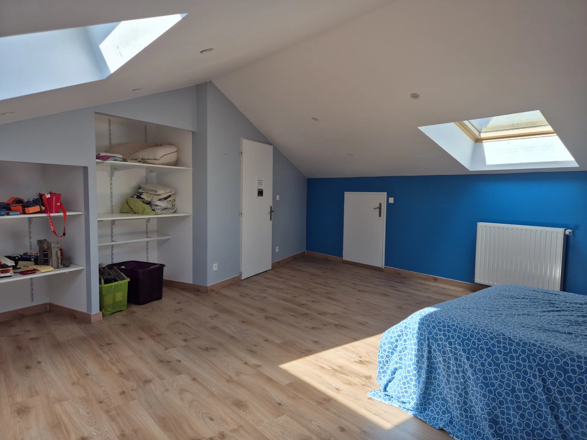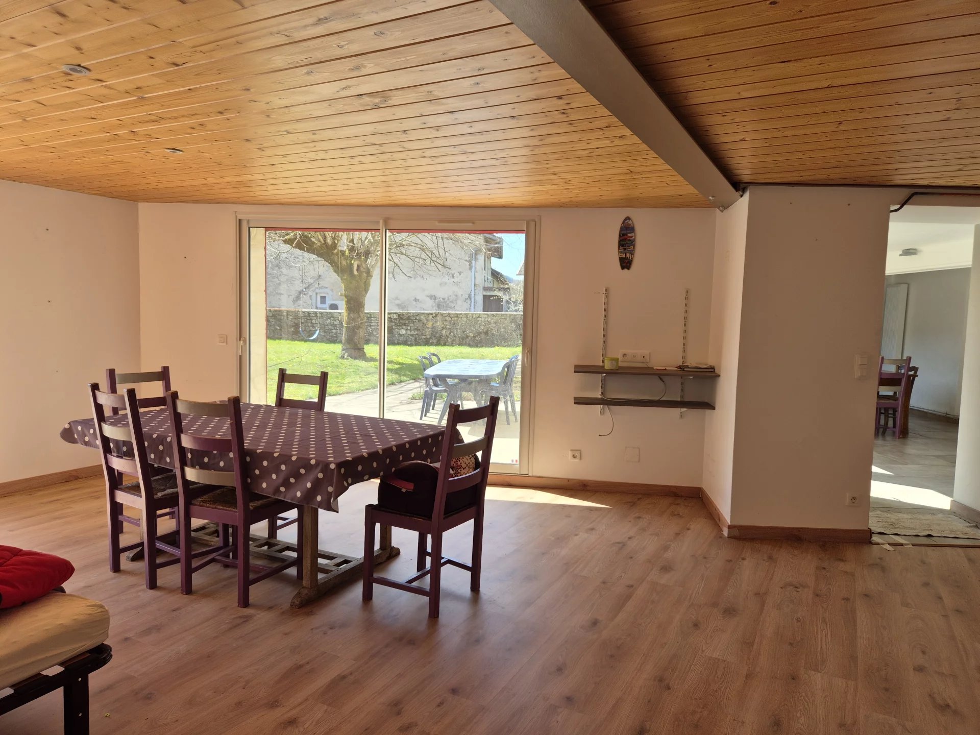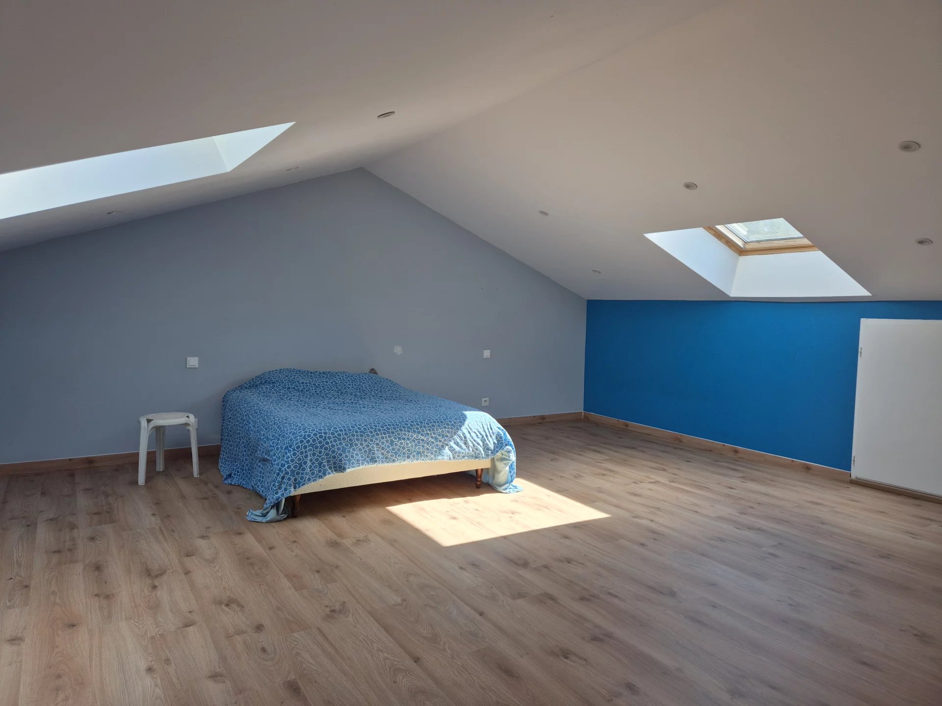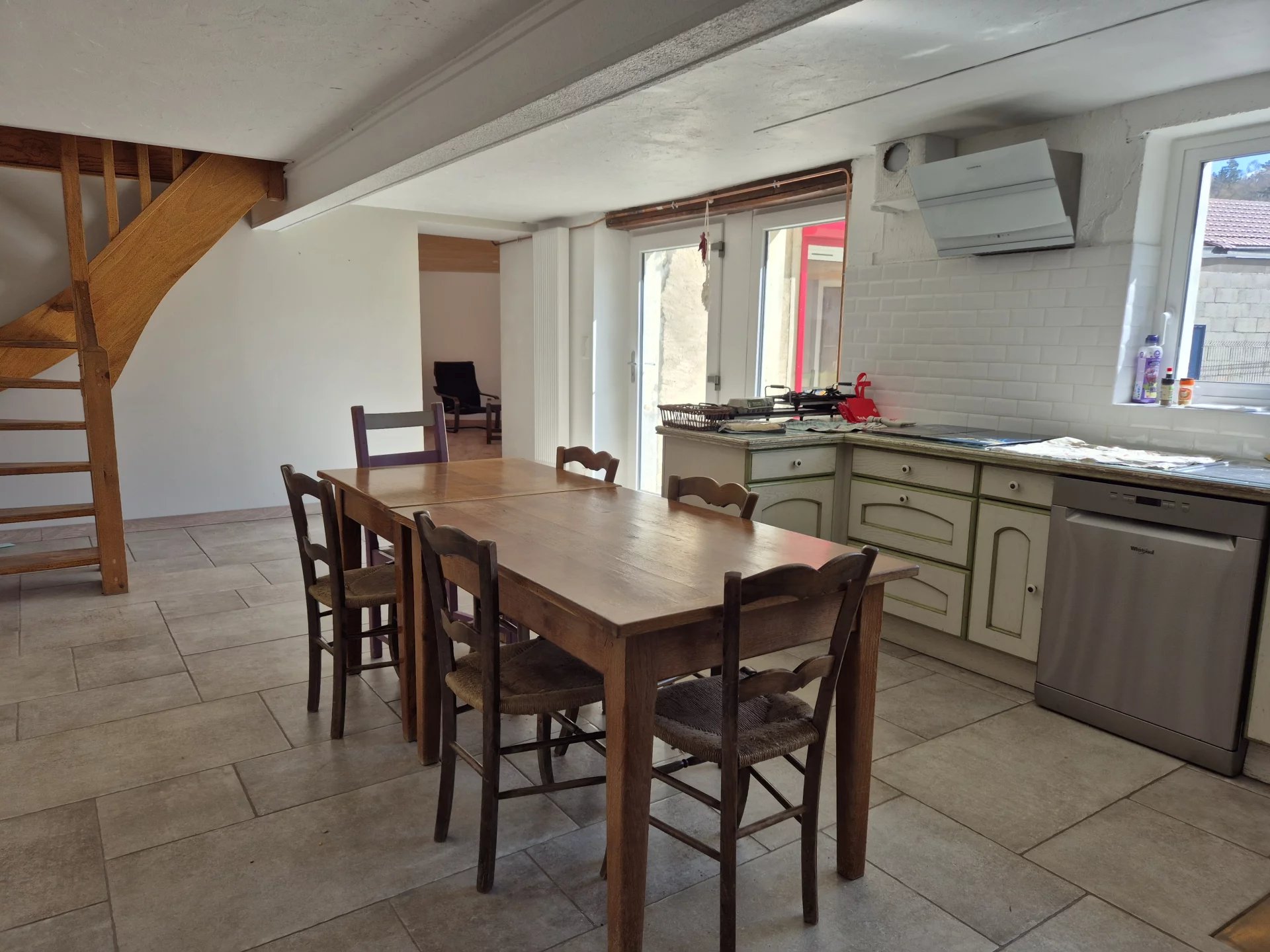 Sur un terrain clos de 1219 m², cette maison en pierres, mitoyenne sur un côté, comprend au RDC : une entrée sur la cuisine aménagée, un salon-séjour de 34 m², dégagement avec placard, wc avec lave-mains, buanderie-chaufferie et un couloir dessert une chambre avec placard mural et une salle de bains avec wc. Au 1er étage, vous trouverez une grande pièce très lumineuse qui fait office de 2ème salon ou de grand bureau, une première chambre, une autre chambre plus grande et mansardée avec des placards et une salle d'eau (douche) avec wc. Le 2ème étage est mansardé, on peut y aménager une petite chambre ou il peut rester à usage de grenier. Il y a également une cave enterrée. La maison est chauffée au moyen d'un chauffage central par pompe à chaleur (air-eau). Toutes les menuiseries sont en PVC, volets roulants électriques. Toiture tuiles refaite en 2009. Portail motorisé. Assainissement : tout à l'égout