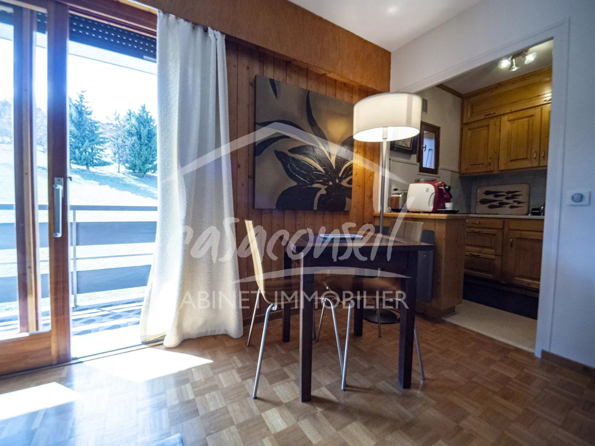 Luminoso e raffinato, l’appartamento offre un’atmosfera accogliente e rilassante. Il suo ampio balcone soleggiato, affacciato direttamente sulle piste, prolunga lo spazio abitativo e regala un contesto alpino d’eccezione in ogni stagione.