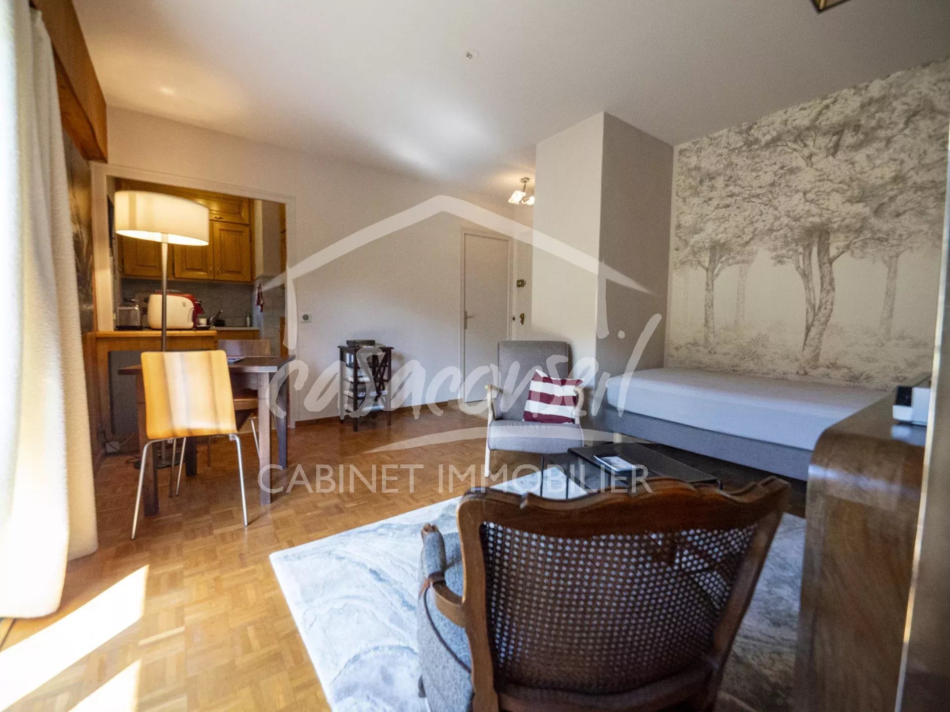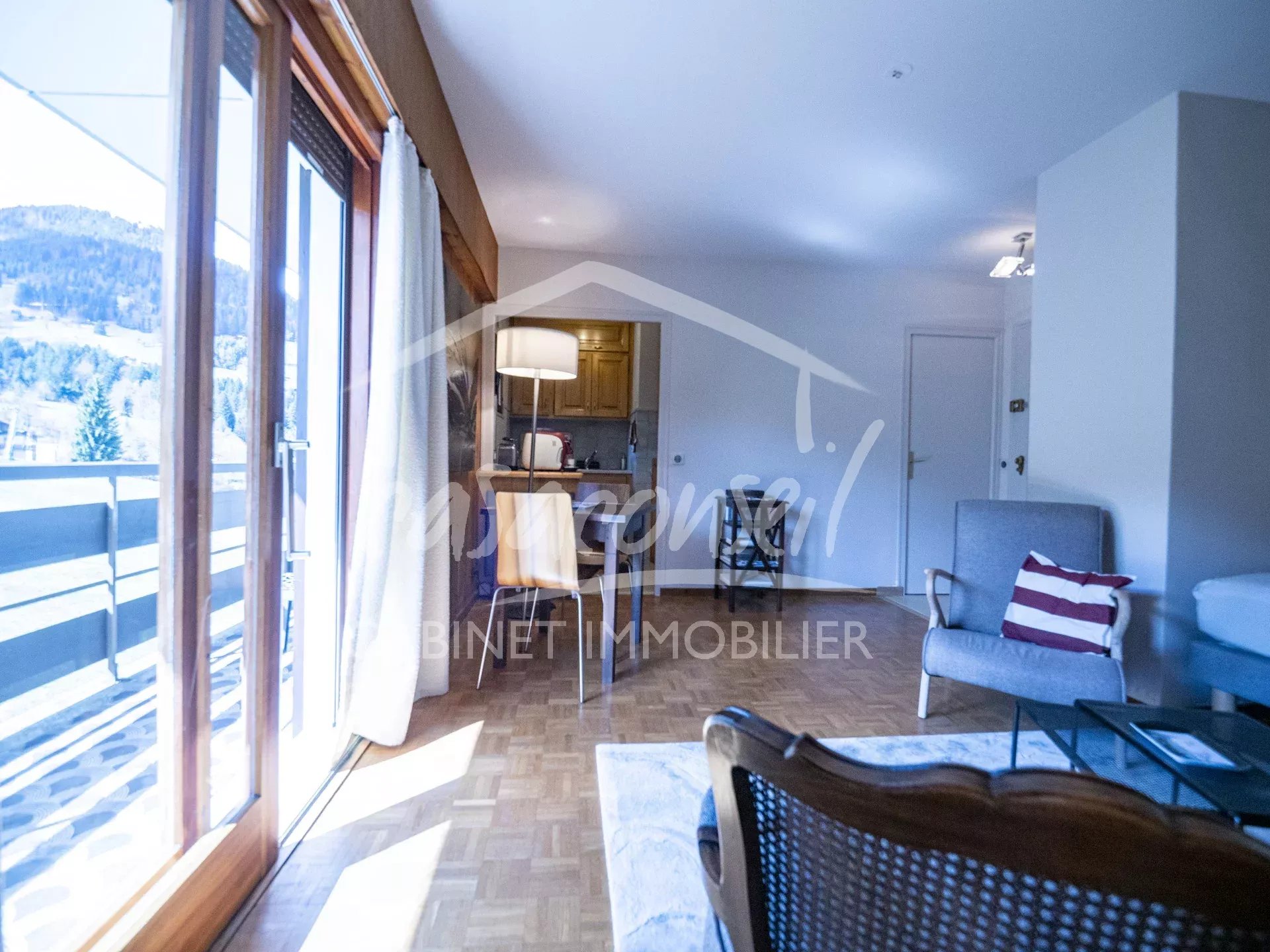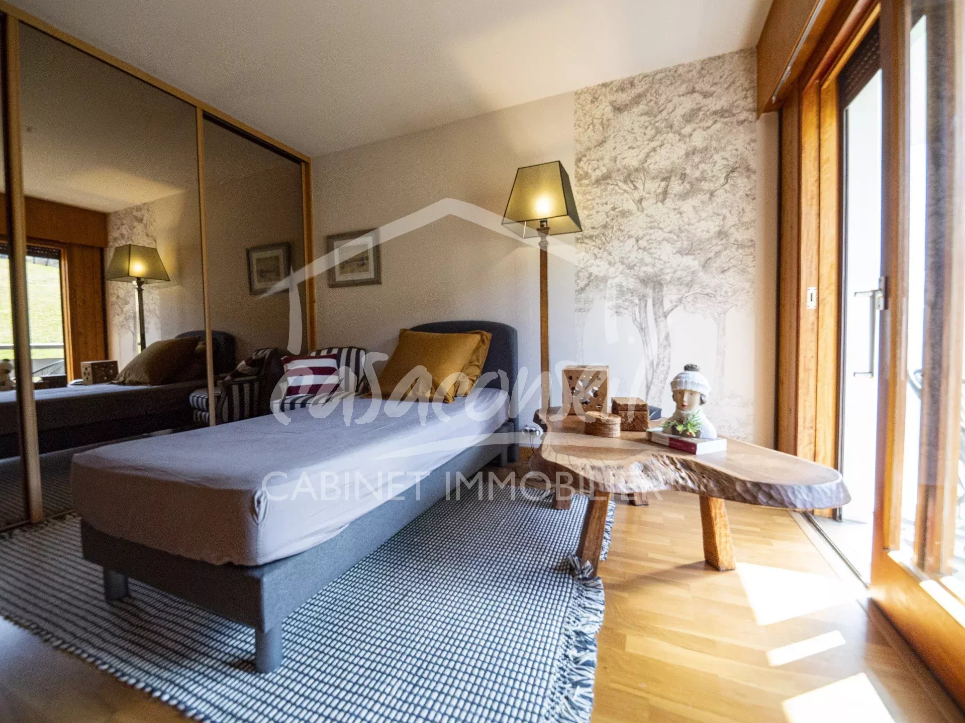 In un ambiente riservato e preservato, all’interno di una residenza di standing situata ai piedi delle piste di Cordon, scoprite questo elegante bilocale concepito come una vera suite di montagna.