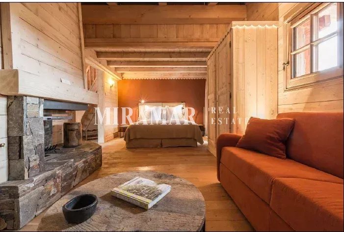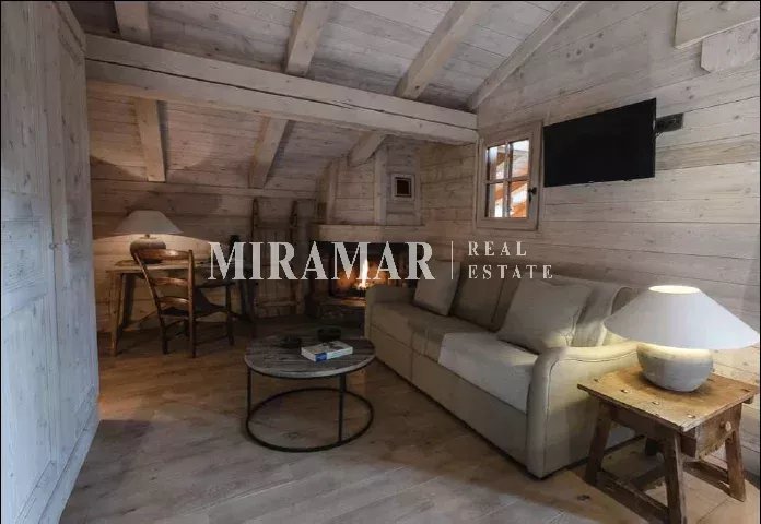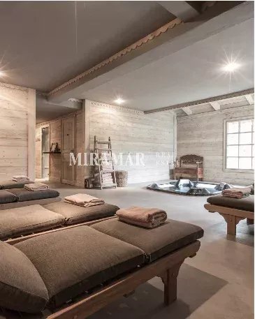 Chalet de famille, il offre 14 chambres et suites, un spa avec des cabines de soins et une terrasse avec piscine. D'une surface de 802 m² habitables (1756 m² au total avec parking) sur une parcelle de 2989 m².