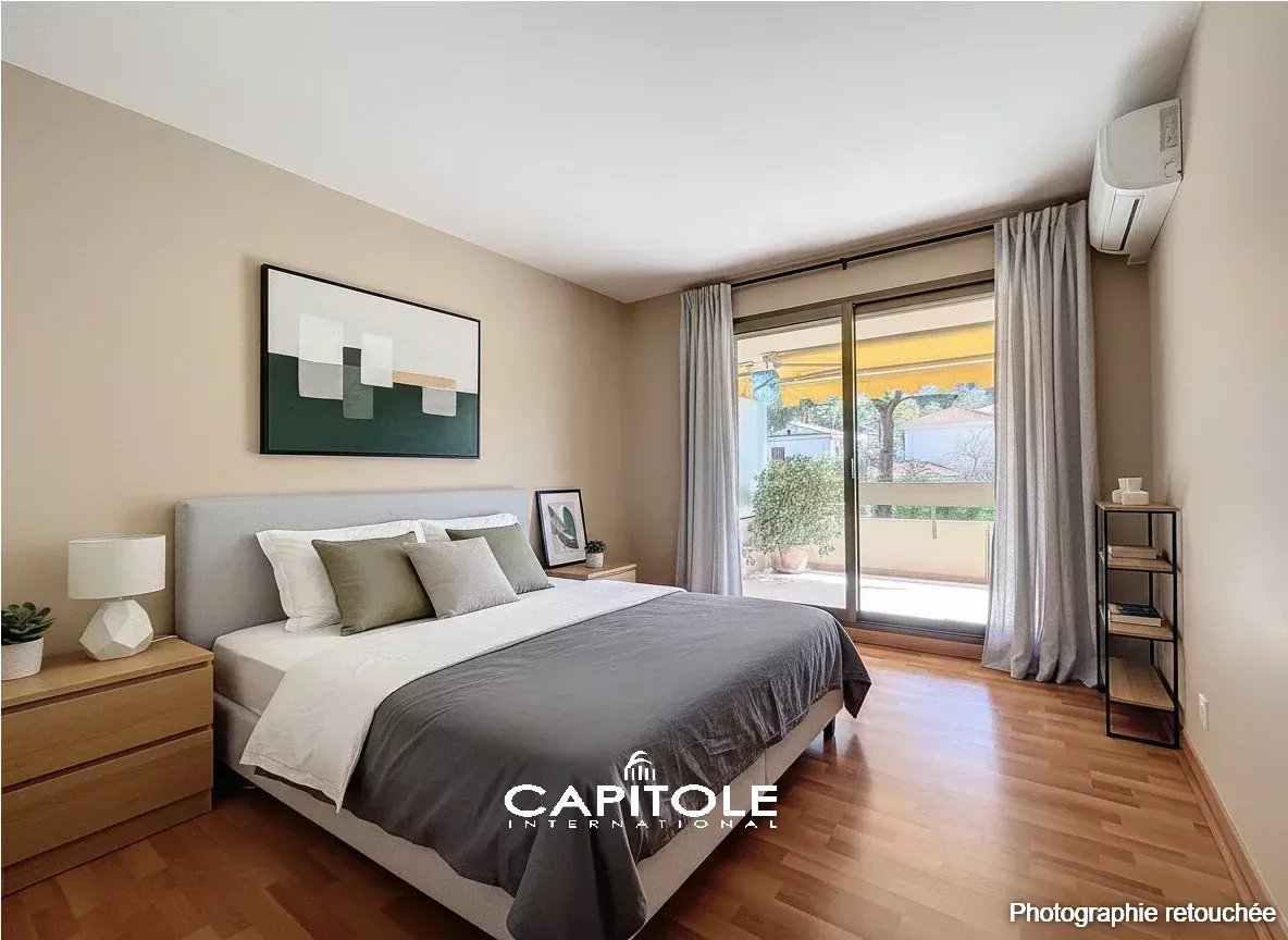 À proximité du Cap d'Antibes, découvrez ce superbe appartement de 3 pièces, situé dans la prestigieuse résidence Château de la Pinède. Avec ses 71 m², cet appartement climatisé offre un cadre de vie d'exception au calme absolu. Il s'ouvre sur une spacieuse terrasse d'angle où vous pourrez profiter d'une vue imprenable sur un magnifique jardin paysager, garantissant un espace extérieur intime et apaisant. L'appartement bénéficie d'une triple exposition, d'un vaste séjour lumineux, d'une cuisine entièrement équipée, de deux grandes chambres ainsi qu'une salle de bain avec WC et des toilettes indépendantes. Vous disposerez également d'une cave et d'un parking. La résidence offre des équipements de qualité dont une belle piscine et deux courts de tennis, parfaits pour les amateurs de sport et de détente. Située à seulement 400 mètres de la plage de la Pinède et à proximité des plages de la Gallice et du Casino, cette propriété combine luxe et accessibilité avec des commerces à quelques pas. Deux terrain de tennis spacieux, une piscine de grande taille et la présence de deux gardiens pour assurer la sécurité. Ne manquez pas cette opportunité unique d'acquérir un bien d'exception dans un cadre idyllique. Réf : MM1823VA-D Les informations sur les risques auxquels ce bien est exposé sont disponibles https://georisques.gouv.fr/"