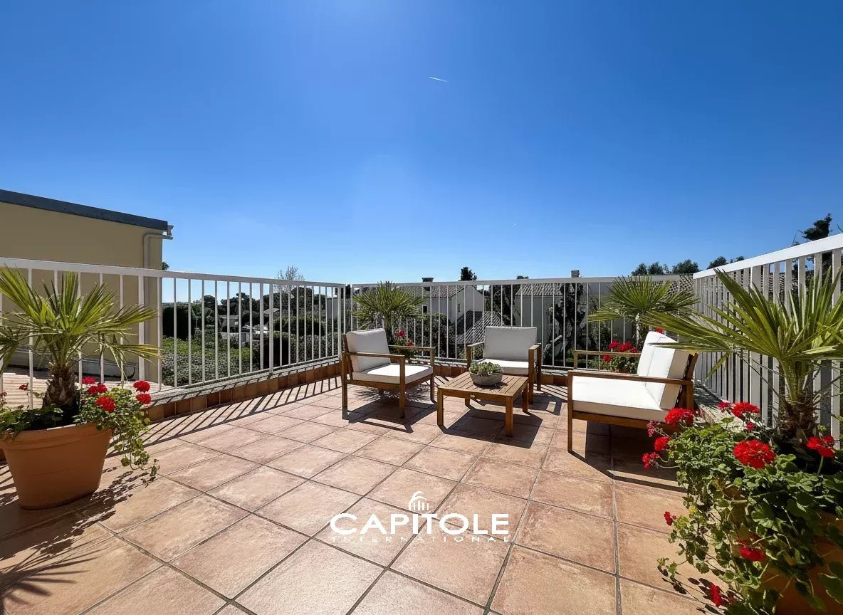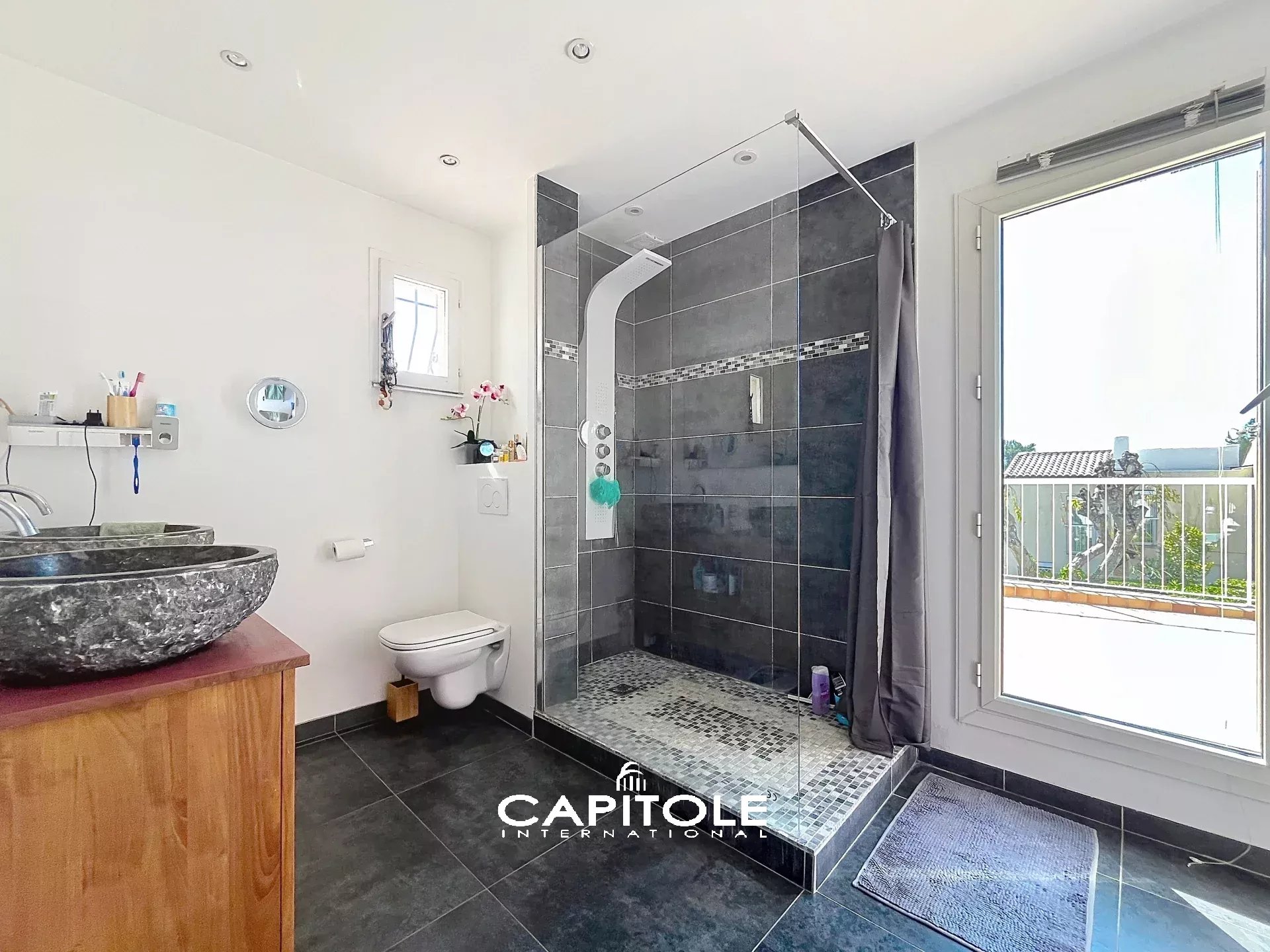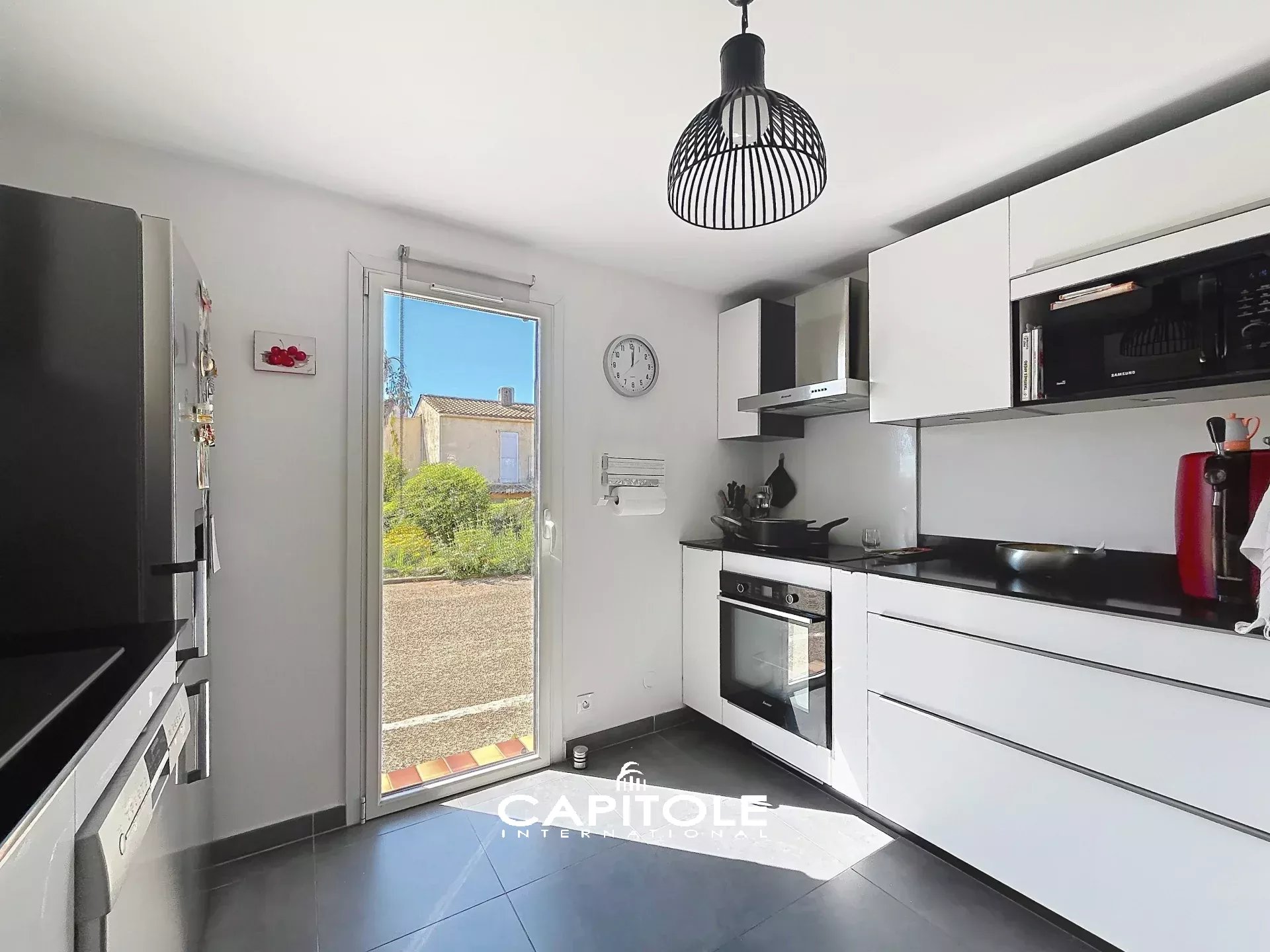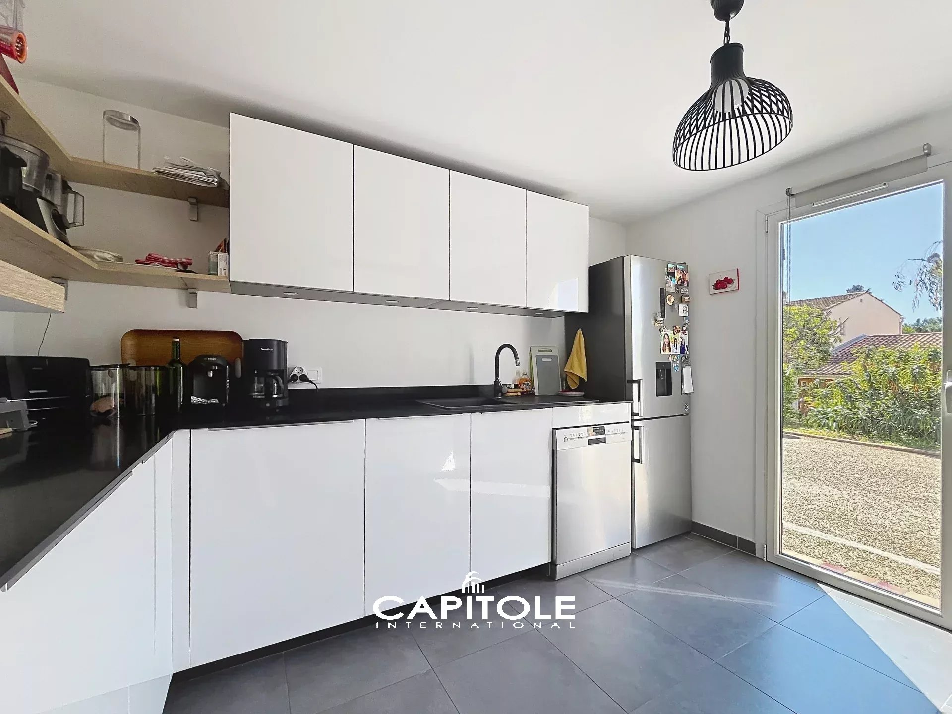 A VENDRE, dans un domaine fermé et sécurisé au calme découvrez cette charmante maison jumelée par le garage (25m2) entièrement rénovée, d’une surface de 93 m2, bénéficiant d’une excellente exposition. La maison se compose d’un agréable séjour lumineux, avec salle à manger ouvrant sur l’extérieur avec une belle terrasse, cuisine équipée, toilette invité. À l’étage, vous trouverez trois chambres (dont un bureau) ainsi qu’une grande salle de douche à l'italienne avec WC. Une belle terrasse de 11 m2, permet de profiter pleinement des beaux jours. Implantée sur un terrain d’environ 350 m², la maison dispose d’une piscine privative, idéale pour les moments de détente en toute intimité. Un garage de 25m2 complètent ce bien, avec une belle hauteur sous plafond, offrant de nombreuses possibilités de rangement ou d’aménagement. Une villa clé en main, parfaitement entretenue, idéale en résidence principale comme secondaire, alliant confort. Place de parking invité. réf MM1986VM