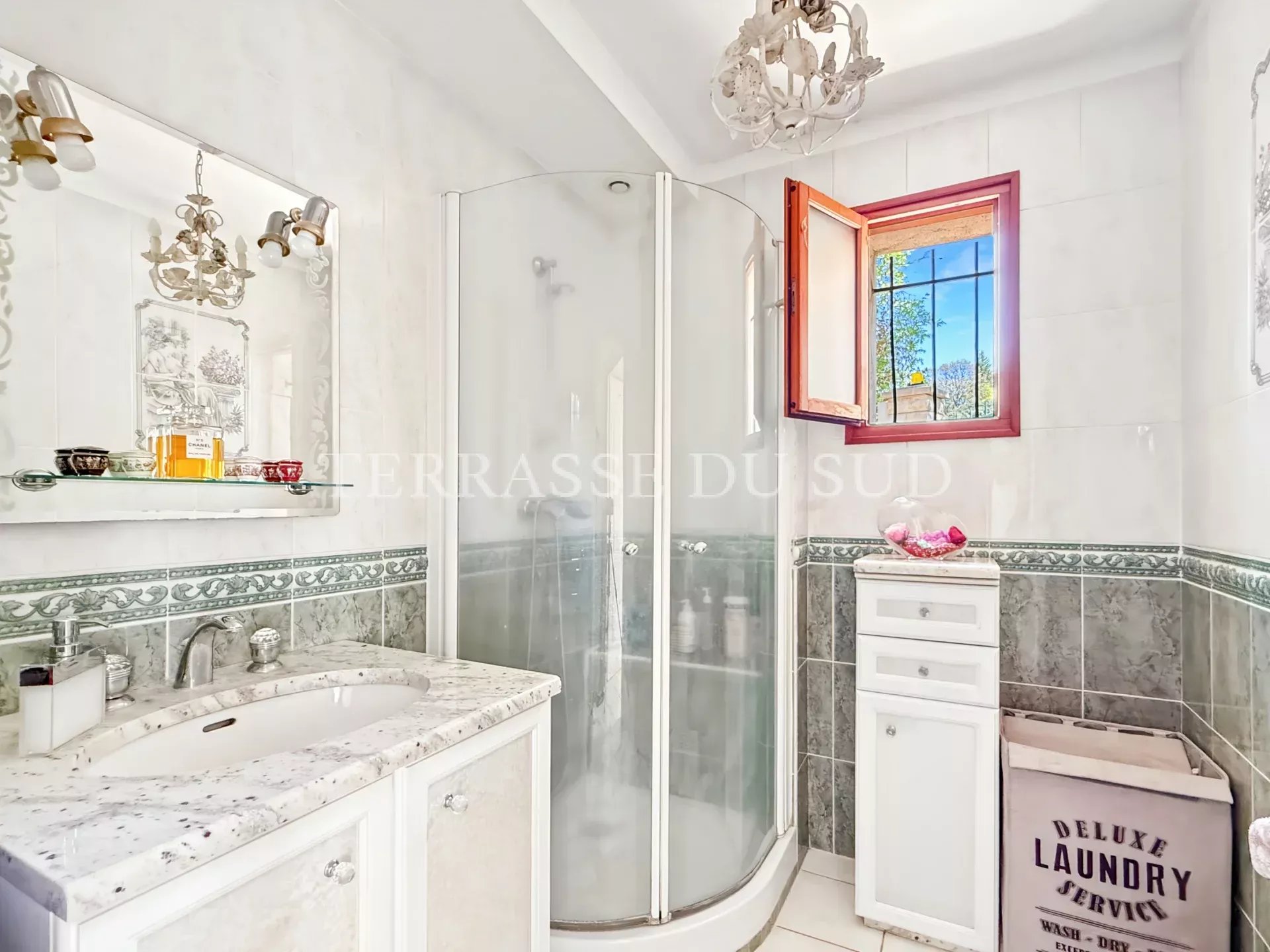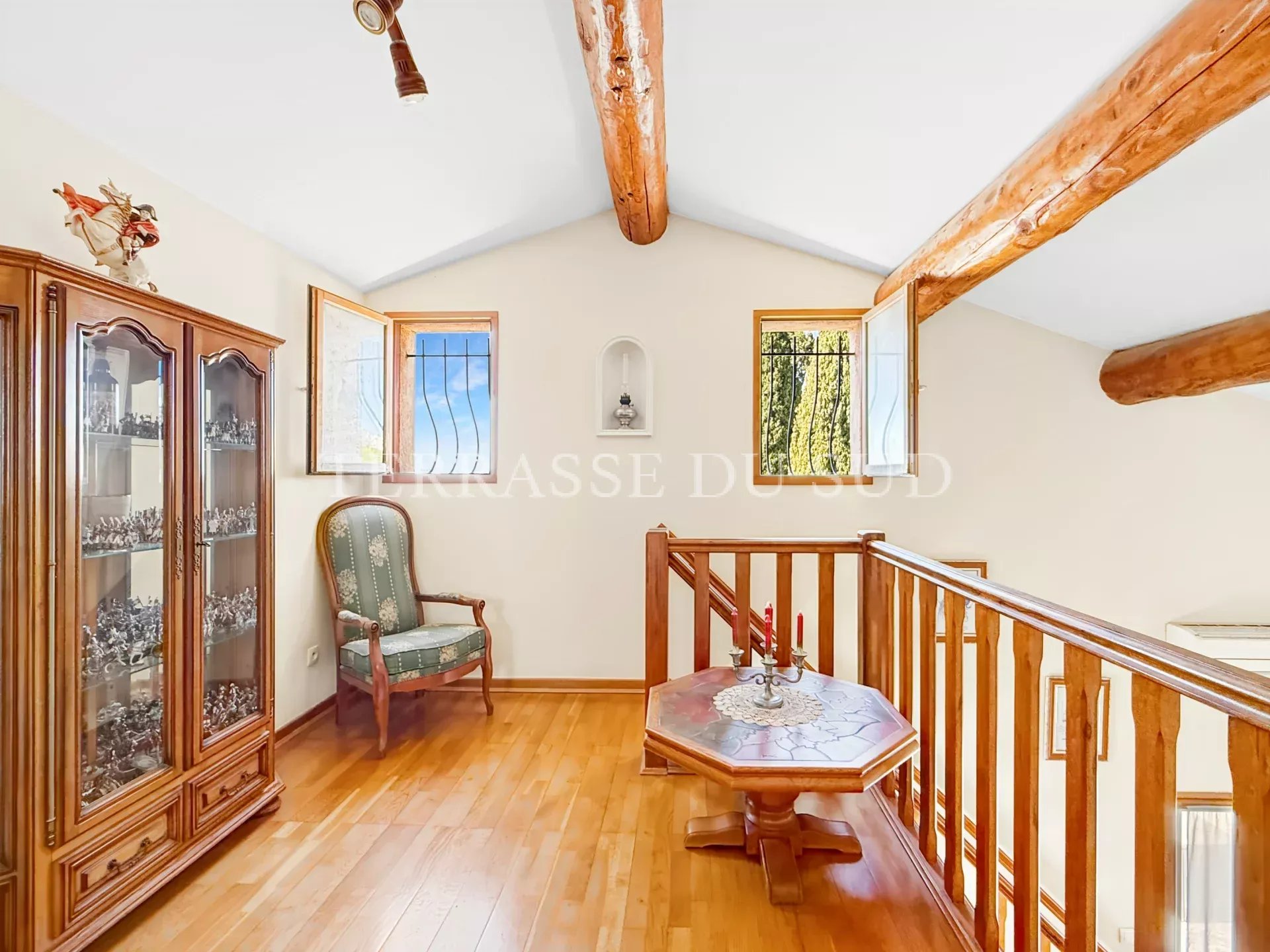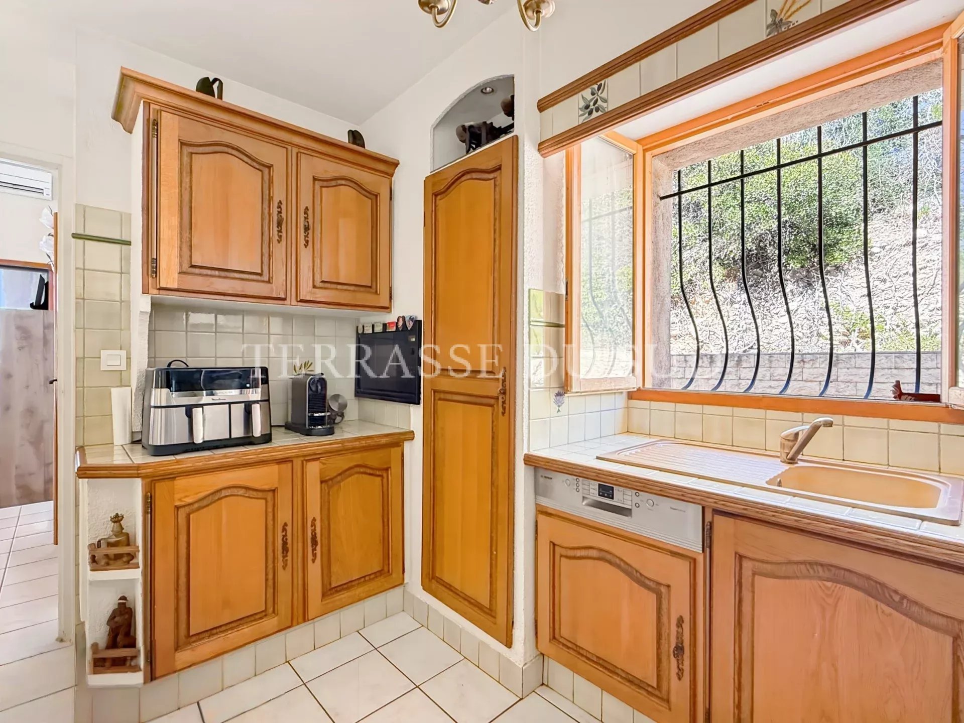 Située au coeur du quartier de la Fourragère, cette maison de 97m² de type 4 profite d'une vue dégagée et d'un calme absolu. La maison s'organise sur 2 niveaux . Le Rez-de-chaussée propose un salon, une salle à manger, une cuisine équipée, une chambre, une salle d'eau et un wc. L'étage est composé d'une mezzanine, d'une vaste chambre de 20m², d'une salle de bain et d'un wc. L'extérieur se répartie en plusieurs zones. Un espace détente autour de la piscine sécurisé par des portillons en ferronerie, un espace salon extérieur dominant, une grande terrasse sur l'avant et le côté de la maison. Enfin sur le flanc opposé, une zone plus intimiste garnie de gazon synthètique. Côté stationnement, l'accès à la maison se fait depuis un grand portail électrique qui permet de garer 2 véhicules et une moto. Le potentiel de ce bien est multiple. Actuellement configurée avec 2 chambres, il est aisément possible de créer une troisième chambre soit par une séparation en deux de la grande suite (de 20m²), par une redistribution de pièces au rdc, ou bien par la création d"une extension sur du restant à construire. Cette maison de 1998 propose de nombreuses prestations, 1 grand portail automatique, du double vitrage, des pièces climatisées, une cheminée insert, un interphone. Taxe foncière : 2738 euros DPE : C 149 Référence mandat exclusif : SNM_2034 Prix de commercialisation : 550 000 euros (honoraires agence à charge vendeur) Contact : Gregory BARBIER o687380443 – agent commercial (EI) inscrit au Tribunal de Commerce de Marseille sous le numéro RSAC 832246136. gregory@terrassedusud.com
