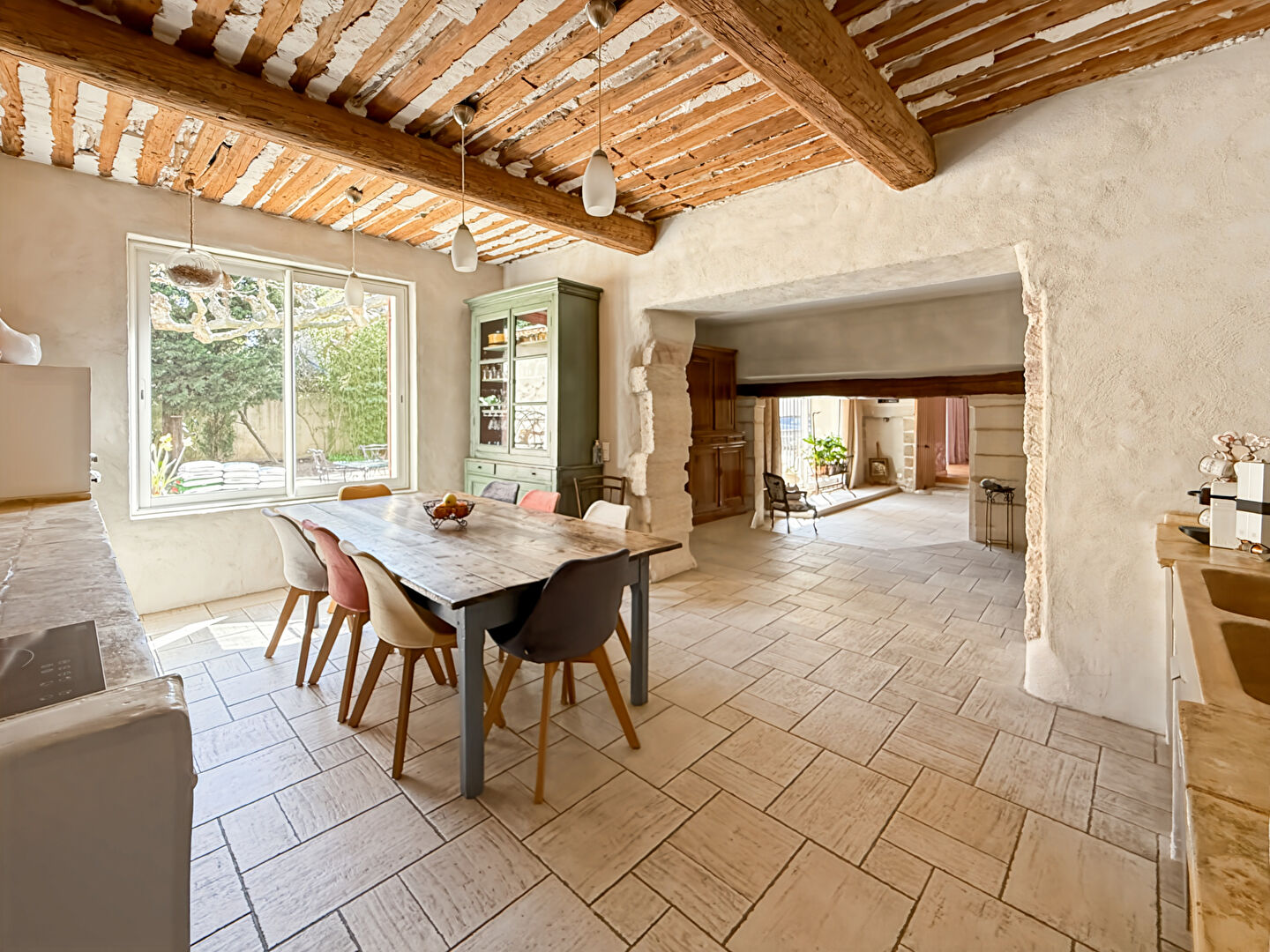 Découvrez ce magnifique mas de 197 m², niché sur une parcelle d'environ 1000 m², offrant tout le charme de la Provence authentique. Vous serez immédiatement séduit par ses éléments de caractère : pierres apparentes, plafonds à la française et cheminée traditionnelle qui confèrent à l'ensemble une atmosphère chaleureuse et conviviale, chauffage au sol chauffant rafraîchissant. La maison propose un bel espace de vie lumineux, idéal pour accueillir famille et amis, ainsi qu'une suite parentale en rez-de-chaussée, offrant confort et praticité au quotidien ainsi qu'un bureau. A l'étage, vous trouverez 2 chambres , salle de bain et accès à une grande pièce à aménager selon vos besoin et vos envie. Un véritable atout : possibilité de créer un logement supplémentaire, parfait pour un projet locatif, une activité indépendante ou pour accueillir famille et proches en toute autonomie. A l'extérieur, le terrain de 1000 m² vous permettra de profiter pleinement des beaux jours dans un cadre paisible et verdoyant. Un bien rare, alliant authenticité, potentiel et qualité de vie. A visiter sans tarder, contactez Mélanie 06.50.18.11.61