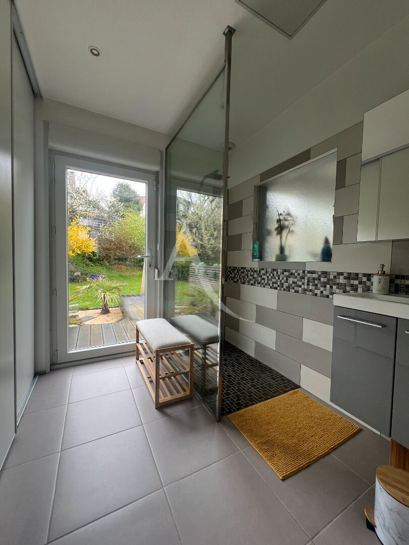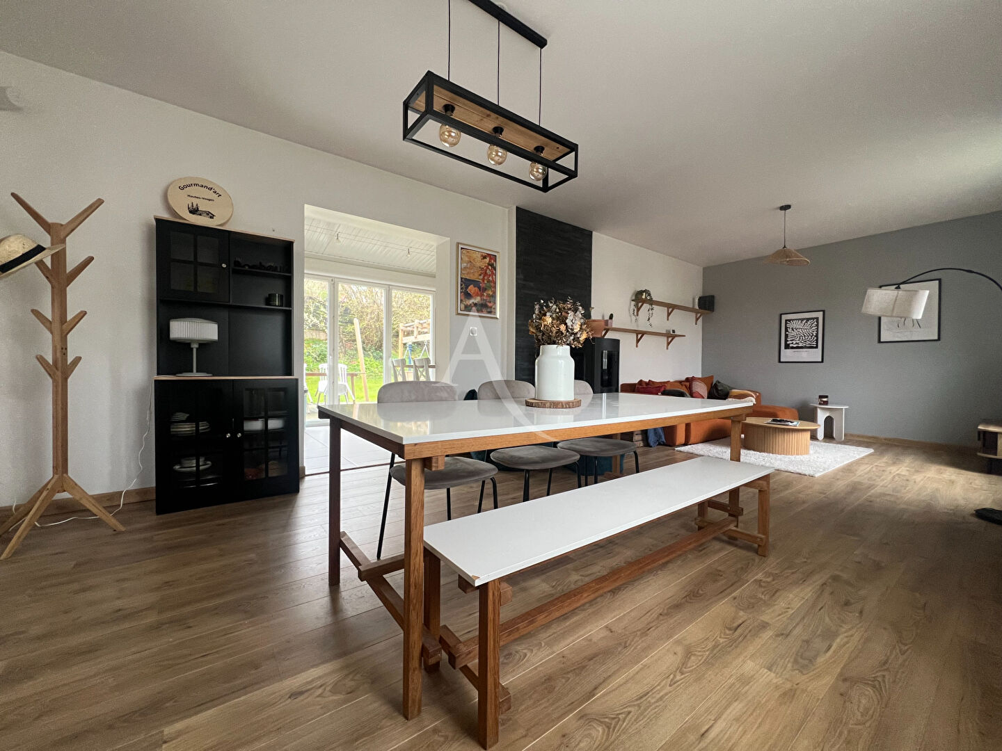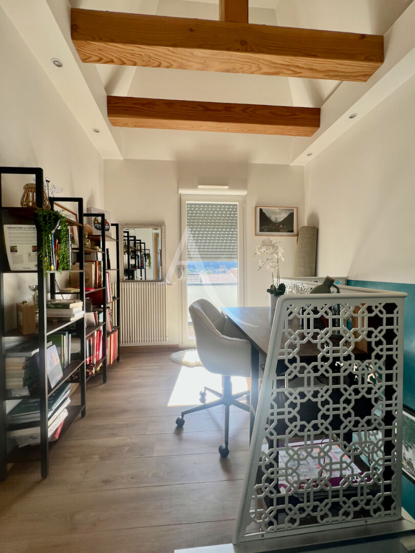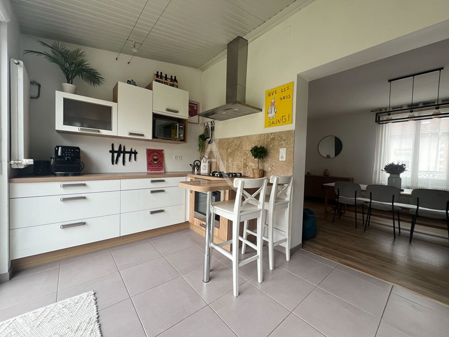 Magnifique maison année 30 entièrement rénovée et relookée avec soin par les propriétaires actuels. Bâtie sur un terrain d'un peu plus de 700 m2 en léger surplomb de la ville, cette maison offre en rez-de-jardin un séjour lumineux en partie ouvert sur la cuisine donnant directement sur la terrasse par sa grande baie vitrée. Le poele à bois dans le séjour assure un esprit cocooning des plus réussi. Sur ce même niveau vous trouverez un toilette indépendant et un second accés direct à la terrasse via une pièce d'eau avec douche italienne et meuble vasque, dissimulant dans de larges placards toute la partie technique de la maison : chaudière Gaz Frisquet, tableau électrique, coin lingerie avec machines à laver et sécher le linge. Depuis l'entrée vous accéder au premier étage par le clocheton de la maison aménagé en espace bureau du plus bel effet, avec accés à un balcon offrant une belle vue sur la ville. La partie nuit se compose d'une salle de bains lumineuse avec meuble double vasque, baignoire et WC, et d'un dégagement distribuant les deux chambres (dont une avec dressing). En dépendance la maison dispose d'un garage à vélo- cellier extérieur pour les éléments de jardin (outils, tonte...) ainsi qu'une cave sur la quasi-totalité de la maison. Stationnement dans la propriété avec une grande aire pouvant accueillir facilement 3 voitures. C'est maison est un vrai cocon ouvert sur jardin, proche de la ville, sans travaux à venir et avec des frais de fonctionnement optimisés par les travaux récents. N'hésitez pas à nous contacter pour tout complément. Louée meublée (2 chambres avec lit et armoires dressing, une salle d'eau, une salle de bains équipées, salon avec canapé, TV, table de salle à manger, chaises et banc, vaisselier, cuisine avec tabourets hauts, électroménager : LV, four, plaque, hotte, réfrigérateur, salon de jardin et aménagement terrasse.) Disponible maintenant.