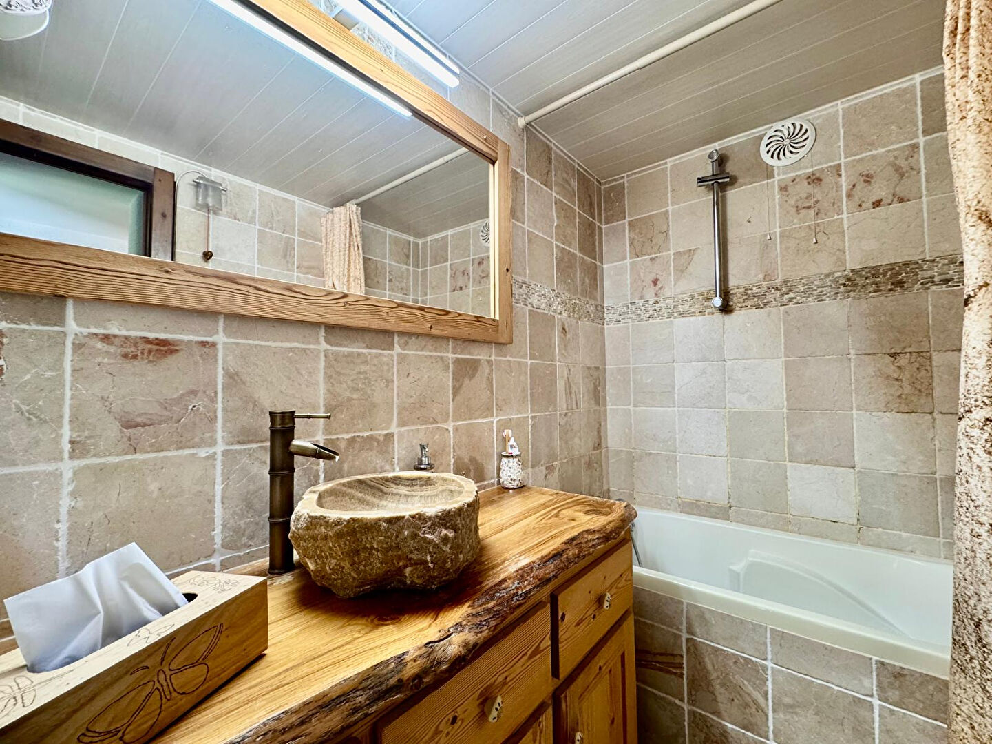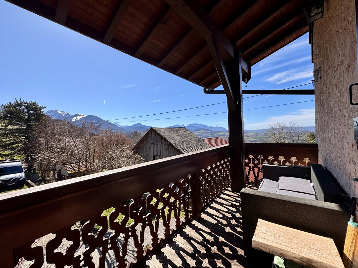 Maison de charme avec vue, terrain 1 259 m² ,environnement calme Située dans un environnement calme et verdoyant, sans vis-à-vis, cette maison de caractère développe une surface habitable de 135 m² sur un terrain de 1 259 m². Cette maison séduit par son architecture typique et ses prestations authentiques, alliant bois et pierre. Elle bénéficie d'une vue dégagée sur les montagnes et la vallée, offrant un cadre de vie rare et recherché. L'espace extérieur se compose d'un jardin paysager, idéal pour profiter du calme environnant, ainsi que d'une terrasse et d'un balcon permettant de contempler le panorama. A l'intérieur, la maison propose une belle pièce de vie avec plafond cathédrale, poutres apparentes et cheminée, créant une atmosphère chaleureuse. La cuisine équipée, ouverte sur le séjour, renforce la convivialité de l'ensemble. La distribution s'organise sur plusieurs niveaux avec : 4 pièces principales, 2 chambres, 1 mezzanine pouvant devenir une 3ème chambre, 1 salle de bains, 1 WC, 1cave Le bien dispose également de 4 places de stationnement dont 2 couvertes. Dépendance avec cuisine d'été. Cette maison avec vue montagne conviendra aussi bien pour une résidence principale que secondaire, à proximité des commodités et dans un cadre naturel privilégié !