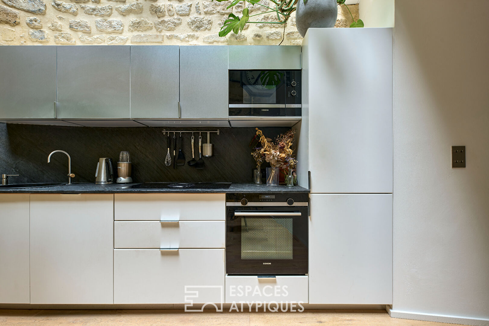 Dans une rue paisible de Montmartre, à l'abri des regards, se cache ce lieu de vie singulier de 63,15 m2 Carrez accompagné d'une terrasse de 8,32 m2. Entièrement repensé par architecte, cet appartement loft conjugue avec justesse espace, lumière et harmonie des matières. Dès l'entrée, le regard se pose sur un confortable salon où chaque détail semble avoir été pensé pour créer une atmosphère à la fois chaleureuse et maîtrisée. Les lignes sont nettes, les textures dialoguent entre elles, et la lumière naturelle souligne la cohérence de l'ensemble. La salle à manger et la cuisine ouverte, s'enveloppe d'une douce clarté diffusée par une atypique verrière zénithale sur mesure. L'espace respire la convivialité, sans rien céder à l'élégance. La chambre, traitée en suite, invite au repos. Une paroi de verre dévoile en transparence une salle de douche à l'italienne au jeu subtil de reflets, tandis que des rangements sur mesure et un mur en pierre naturelle viennent parfaire l'équilibre entre authenticité et sophistication. L'extérieur, au potentiel d'aménagement certain, vient parfaire ce bien soumis au régime de copropriété ancrée sur la butte Montmartre. Métro Château Rouge ou Lamarck-Caulaincourt (Lignes 4 et 12) Contact : Fabrice +33 7 86 75 71 32 Copropriété de 22 lots - dont 22 lots habitation. Charges annuelles : 2425 euros. FABRICE DERRIEN (EI) Agent Commercial - Numéro RSAC : 951 254 671 - PARIS.