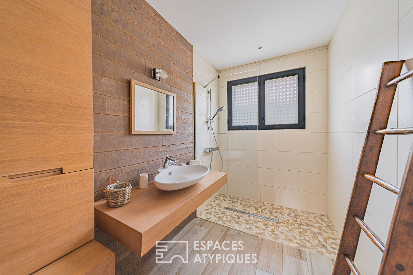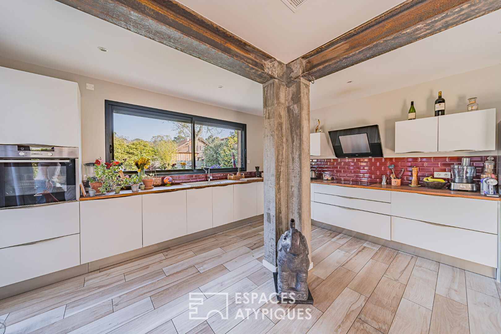 Idéalement située au coeur du quartier de Meyran, sur une superbe parcelle arborée et paysagée de 1 000 m², cette élégante maison landaise a fait l'objet d'une rénovation complète en 2014 par un cabinet d'architecte Landais. Elle marie avec audace le charme de l'architecture traditionnelle landaise à des lignes contemporaines : toiture plate, habillage bois chaleureux et menuiseries en aluminium anthracite confèrent à l'ensemble une identité unique et résolument moderne. Dès l'entrée, le ton est donné. Les volumes généreux de la pièce de vie, d'environ 80 m², offrent une organisation fluide et conviviale des espaces : double séjour, salle à manger et cuisine ouverte entièrement aménagée et équipée. Chaque espace s'ouvre sur une agréable terrasse, tandis que la triple exposition garantit une luminosité exceptionnelle tout au long de la journée. Le rez-de-chaussée accueille également deux chambres, une salle d'eau, un WC indépendant, une buanderie, ainsi qu'une spacieuse suite parentale avec dressing et salle de bains avec douche. Baignée de lumière, cette suite bénéficie d'une large ouverture à galandage donnant directement sur l'extérieur et la piscine. A l'étage, vous trouverez une suite supplémentaire avec salle d'eau et WC, ainsi qu'une cinquième chambre pouvant aisément faire office de bureau. A l'extérieur, une allée permet de stationner plusieurs véhicules et mène à un garage fermé d'environ 40 m². Une propriété rare, alliant caractère, modernité et confort de vie. CLASSE ENERGIE : B / CLASSE CLIMAT : A. Estimation des coûts annuels : entre 960 euros et 1340 euros par an. Prix moyens des énergies indexés sur les années 2021, 2022, 2023 (abonnements compris) Contact : Yannick MENA au 06 74 77 11 60 (EI) Agent commercial n° RSAC : 753 556 968 à Périgueux. Yannick MENA (EI) Agent Commercial - Numéro RSAC : 753 556 968 - Périgueux.