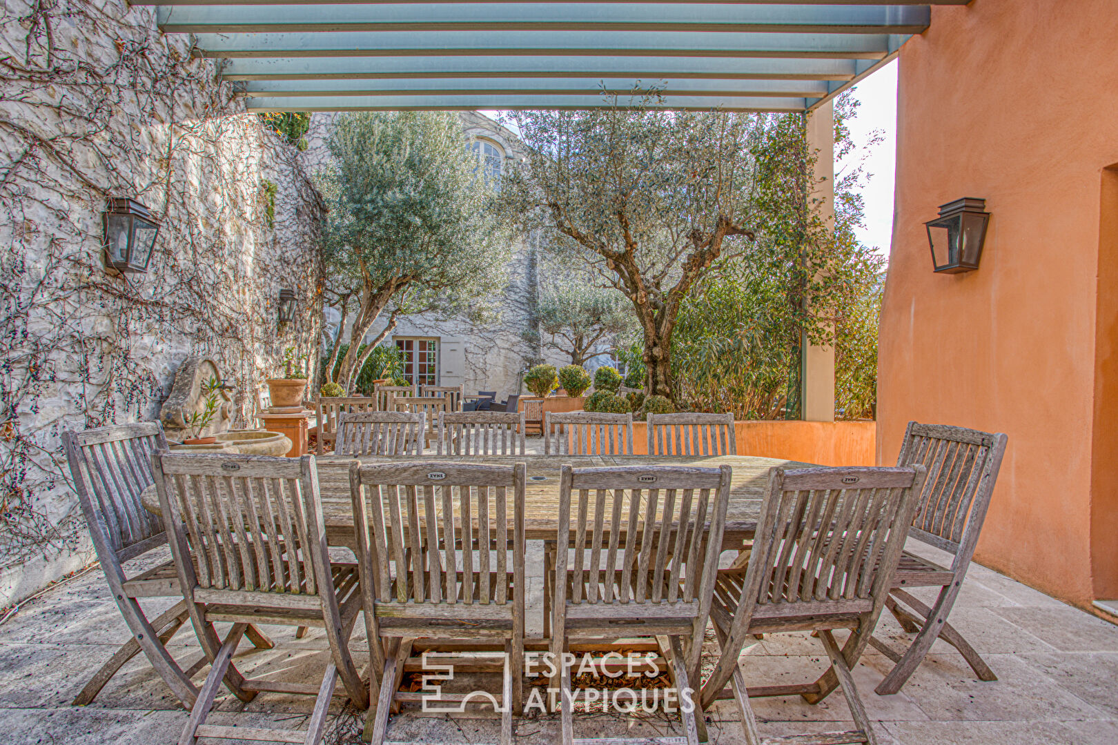 Situé au coeur d'un charmant village provençal doté de tous commerces, cet exceptionnel hôtel particulier du XVIIIe siècle allie élégance, caractère et confort moderne. Une adresse rare où chaque pierre raconte une histoire, dans un cadre enchanteur mêlant charme d'antan et raffinement contemporain. Dès votre arrivée, un vaste hall d'entrée vous accueille et dévoile un intérieur baigné de lumière naturelle. Les généreux espaces de vie se composent d'une cuisine conviviale, d'une salle à manger élégante, et d'un double salon où les volumes se marient harmonieusement à des finitions soignées. Les six chambres, dont trois sublimes suites, offrent une retraite paisible pour la famille et les invités. Cinq salles de bains et six toilettes, aménagés avec soin, garantissent le bien-être de chacun. Parmi les espaces annexes, un bureau, une salle de sport, une salle de billard, un atelier et des caves voûtées ajoutent une touche de singularité à cette demeure unique. A l'extérieur, une parenthèse de sérénité vous attend. Le jardin suspendu dévoile une piscine chauffée (8x4m), agrémentée d'une cuisine d'été pour profiter pleinement des soirées estivales. Perchée sur le toit, une terrasse panoramique offre une vue spectaculaire sur les Dentelles de Montmirail et la vallée environnante, un tableau vivant à contempler chaque jour. Une maison attenante, d'environ 140 m² à restaurer, complète ce bien d'exception et peut accueillir amis ou personnel. Parfaitement située à seulement 15 minutes de l'autoroute A7, à 30 minutes de la gare TGV d'Orange, et à 1h15 de l'aéroport Marseille-Provence, cette propriété bénéficie d'un emplacement privilégié, à la fois calme et facilement accessible. Venez succomber au charme incomparable de ce lieu d'exception, où l'art de vivre provençal se conjugue avec prestige et raffinement. CLASSE ÉNERGIE : E / CLASSE CLIMAT : E Montant moyen estimé des dépenses annuelles d'énergie pour un usage standard, établi à partir des prix de l'énergie de l'année 2021 : entre 11 590 et 15 740 euros Les informations sur les risques auxquels ce bien est exposé sont disponibles sur le site Géorisques : www.georisques.gouv.fr
