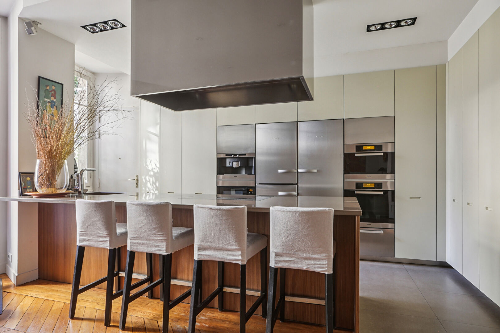 Exclusivité - Avenue de Breteuil, un appartement d'exception ouvert sur les jardins A la lisière du 15e et du 7e arrondissement, face aux jardins majestueux de l'avenue de Breteuil, cet appartement d'exception propose une expérience rare : celle de vivre en plein coeur de Paris avec la sensation d'habiter une maison ouverte sur un écrin de verdure. Dans un élégant immeuble en pierre de taille parfaitement entretenu et sécurisé, ce bien familial de 200,63 m² (183,11 m² loi Carrez, auxquels s'ajoute un studio indivisible de 16 m²). L'entrée s'ouvre sur une galerie avec vestiaire et toilettes invités. Traversant et lumineux, l'appartement bénéficie d'une vue dégagée sur les jardins de l'avenue. Les pièces de réception s'ouvrent sur cet environnement arboré, offrant une atmosphère paisible. La lumière naturelle y entre généreusement tout au long de la journée. Aujourd'hui configuré en double séjour, avec une très vaste cuisine dinatoire signée Boffi, intégrant un véritable espace salle à manger, une chambre avec salle d'eau, une suite parentale avec dressings et salle de bains, un bureau et une seconde chambre disposant de sa salle d'eau indépendante, l'appartement reprend le plan d'origine d'une triple réception et offre une belle modularité, permettant d'envisager une configuration avec trois chambres. Entièrement rénové dans le respect de l'esprit du lieu, parquet point de Hongrie, moulures, cheminée, il est complété par un studio indépendant rénové, deux caves et un ancien WC de service. A proximité immédiate du Bon Marché, du marché de Saxe et d'établissements scolaires réputés comme Jeannine Manuel, cette adresse conjugue élégance, lumière et art de vivre. (4.17 % honoraires TTC à la charge de l'acquéreur.) Copropriété de 8 lots - dont 8 lots habitation. Charges annuelles : 9999.99 euros.