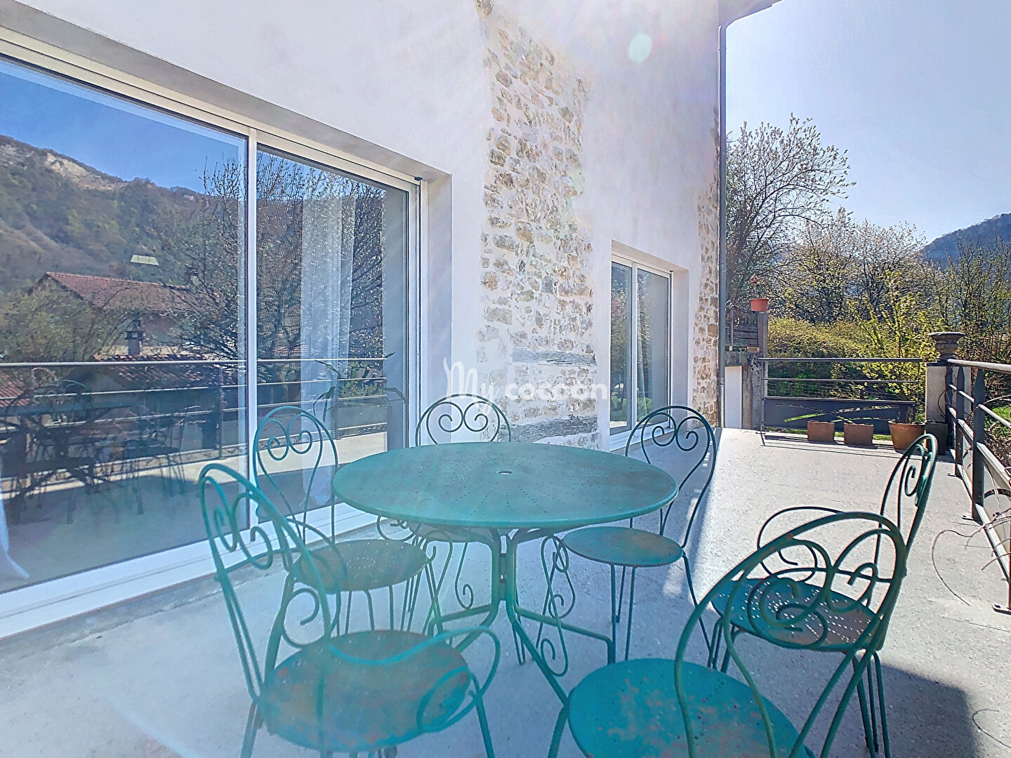 My Cocoon l'agence aux honoraires fixes 2% vous présente en exclusivité: Sur la commune de Torcieu, à 5 min d'Ambérieu-en-Bugey, à 10 min de l'entrée d'autoroute et à 50 min de Lyon, venez découvrir cette ancienne grange "coup de coeur" rénovée sur sa parcelle de 600 m². D'une superficie de 174 m² environ, elle se compose comme suit: au rez-de-chaussée, une entrée (avec placards de rangement) suivie d'une cuisine aménagée permettant l'accès à une terrasse de 50 m², un cellier - buanderie, un bureau (pouvant faire office de chambre complémentaire) et un WC indépendant. Au demi niveau inférieur, se trouve un salon - salle à manger donnant lui accès à une seconde terrasse de 30 m². A l'étage, un palier dessert quatre chambres dont une avec placard mural et une autre avec dressing, un bureau, une salle d'eau et un WC indépendant. Une cave, un abri attenant non fermé (mais pouvant l'être) permettant le stationnement, un garage en sous-sol (non accessible par le terrain mais pouvant l'être avec de futurs aménagements) complètent ce bien. Ses atouts: maison familiale "coup de coeur" alliant contemporain et charme de l'ancien, chauffage avec poêle à bois et électrique (système de chauffage central avec chauffage au sol pouvant être mis en place), huisseries en PVC double vitrage avec volets bois battants + électriques, bel espace extérieur avec aménagements possibles, bon état général! Visite virtuelle sur demande. A visiter sans tarder! --- POUR VISITER : Fanny Adriaens 00676454636 --- Prix : 319 000 euros Honoraires Agence inclus 2% DPE : C / GES: A Montant moyen estimé des dépenses annuelles d'énergie pour un usage standard, établi à partir des prix de l'énergie de l'année 2021: entre 1380 et 1920 euros. Contact: Fanny Adriaens 00676454636 Agent commercial RSAC 848075297 www.mycocoon-amberieu.com Fanny ADRIAENS (EI) Agent Commercial - Numéro RSAC : 848075297 - Ambrieu en Bugey.