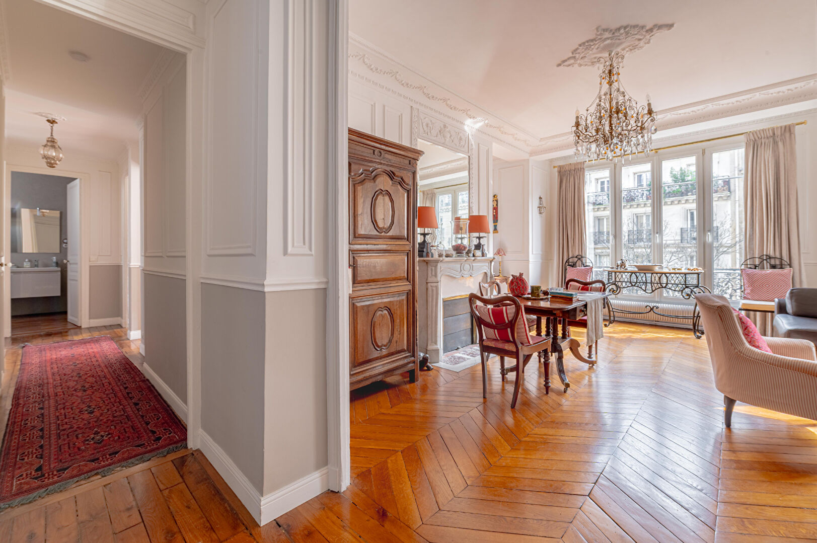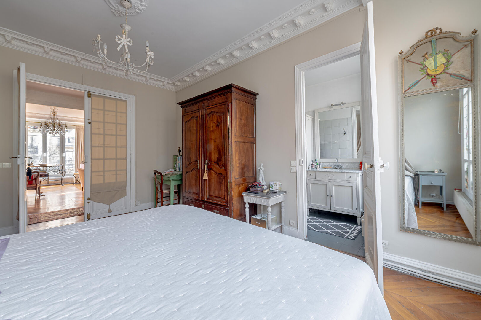 Paris XVIIIe - Marx Dormoy Au sein d'un très bel immeuble ancien de standing, nous vous proposons en exclusivité ce remarquable appartement de réception, situé au 3? étage avec ascenseur. Ce bien rare, aux prestations raffinées, séduit immédiatement par son cachet exceptionnel : parquet point de Hongrie, moulures d'époque, cheminées élégantes dont une de style Louis XV, ainsi que de très belles hauteurs sous plafond confèrent à l'ensemble une atmosphère à la fois élégante et intemporelle. Baigné de lumière, l'appartement développe de superbes volumes et une distribution harmonieuse. Il se compose d'une entrée avec dressing, d'un vaste double séjour de réception, d'une cuisine aménagée et équipée, de trois chambres (possibilité quatre), d'une salle de bains, d'une salle d'eau, ainsi que de WC indépendant. Une cave vient compléter ce bien. Un local à vélos est à disposition dans l'immeuble. Possibilité de stationnement en sus. Emplacement recherché, au pied des commerces et des transports, offrant un cadre de vie à la fois pratique et agréable (4.00 % honoraires TTC à la charge de l'acquéreur.)