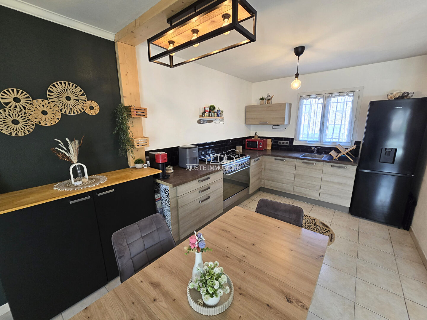 Maison 4 pièces de 80 m² avec garage et terrain de 148 m² - Vitrolles En exclusivité avec Cebo de l'agence Ajuste Immobilier, découvrez ce bien coup de coeur alliant charme, confort et prestations modernes. Située dans un quartier résidentiel et calme recherché de Vitrolles, cette maison mitoyenne entièrement rénovée offre environ 80 m² habitables, complété par un garage de 16 m², le tout sur une parcelle de 148 m² . Rez-de-chaussée Vous profiterez d'un espace de vie lumineux et agréable comprenant : - Un séjour spacieux et élégant ouvrant sur le jardin - Une cuisine équipée et aménagée avec goût avec un superbe piano de cuisson - Une buanderie - Un W.C . Étage L'espace nuit, à l'atmosphère cosy, se compose de : - Trois chambres pour votre vie de famille - Une superbe salle de bain avec douche à l'italienne, double vasque et W.C. Extérieurs Un extérieur agréable et fonctionnel offrant : - Une terrasse avec sa pergola - Un coin détente - Un espace verdure - Un garage qui pouvant accueillir une voiture. Il peut être aménage, en dépendance, cuisine d'été, pièces Spa, salle de jeu... Confort et équipements - Double vitrage - Porte d'entrée sécurisée - Moustiquaires dans les chambres - Climatisation - Alarme - Adoucisseur d'eau - Fibre - Proche des commodités et écoles - Accès rapide aux axes routiers Un bien clés en mains rare sur le secteur, à la fois chaleureux, moderne et idéalement situé. Maison coup de coeur à découvrir sans tarder. - - - Pour toutes informations complémentaires, votre agence Ajuste Immobilier est à votre disposition ou contactez Cebo l'agent immobilier s'occupant du bien au O695310741 pour une réponse plus rapide. Les informations sur les risques auxquels ce bien est exposé sont disponibles sur le site Géorisques : www.georisques.gouv.fr. Selon l'article L.561.5 du Code Monétaire et Financier, pour l'organisation de la visite, la présentation d'une pièce d'identité vous sera demandée. Retrouvez toutes les informations concernant les honoraires d'agence sur notre site www.ajuste-immobilier.com (rubrique « Barème »). Honoraires charge vendeur.