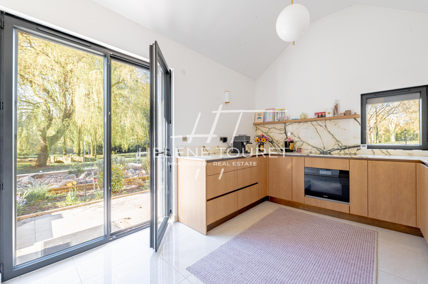 Une cuisine séparée totalement équipée avec accès vers le jardin