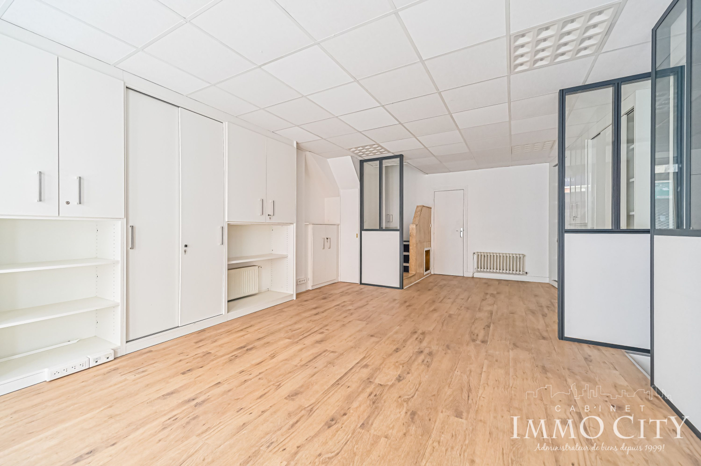 A l'étage : bureau fermé 4 postes + pièce technique/réserve.