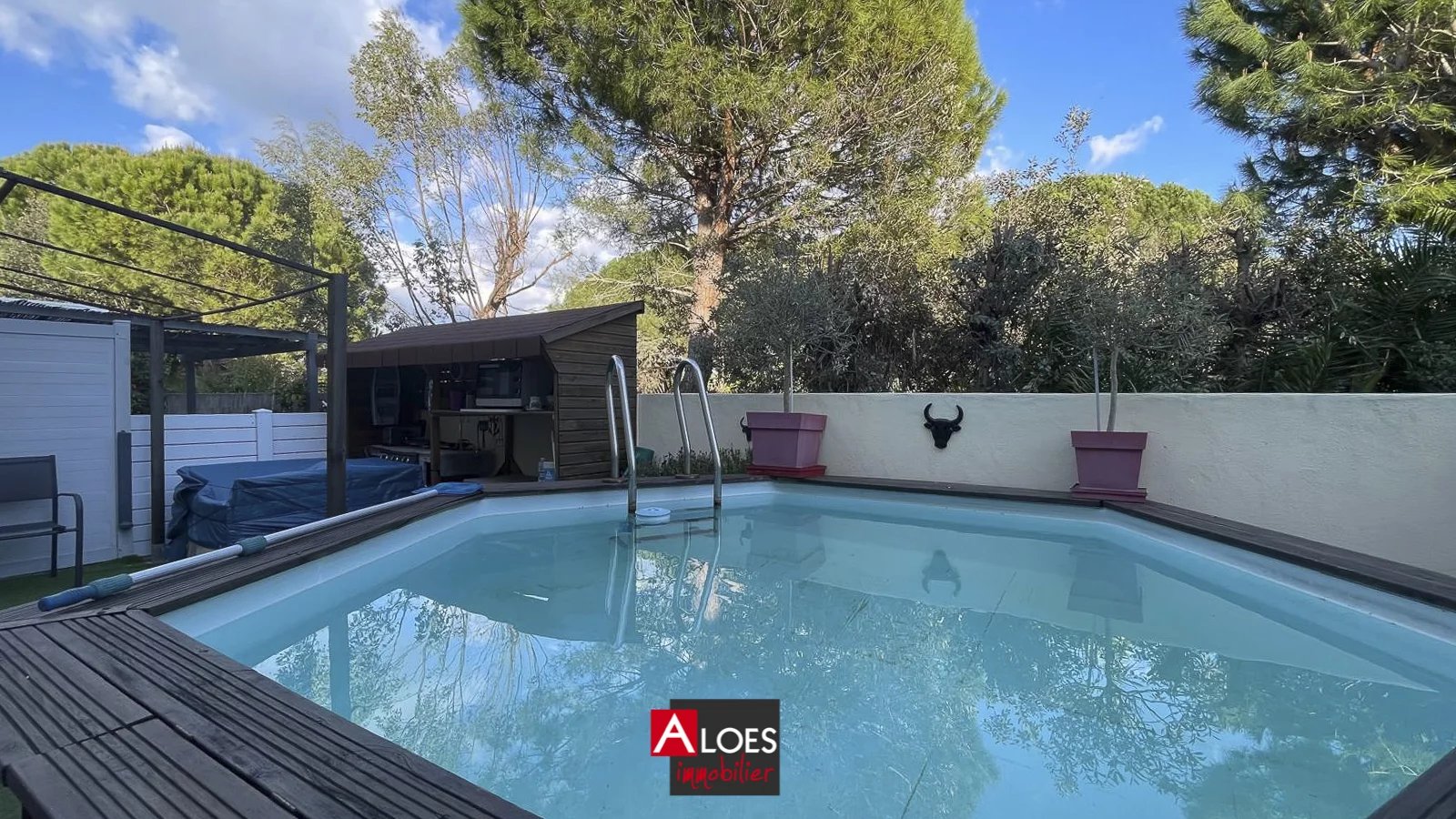 La maison propose une configuration fonctionnelle et confortable, avec une pièce de vie conviviale bénéficiant d’une cuisine ouverte, trois chambres, une véranda pratique au quotidien, deux terrasses pour profiter des extérieurs, ainsi qu’une piscine hors-sol. Elle dispose également d’un garage, d’un parking privé et d’un accès direct au garage depuis la maison par la véranda, sans avoir à sortir à l’extérieur.
