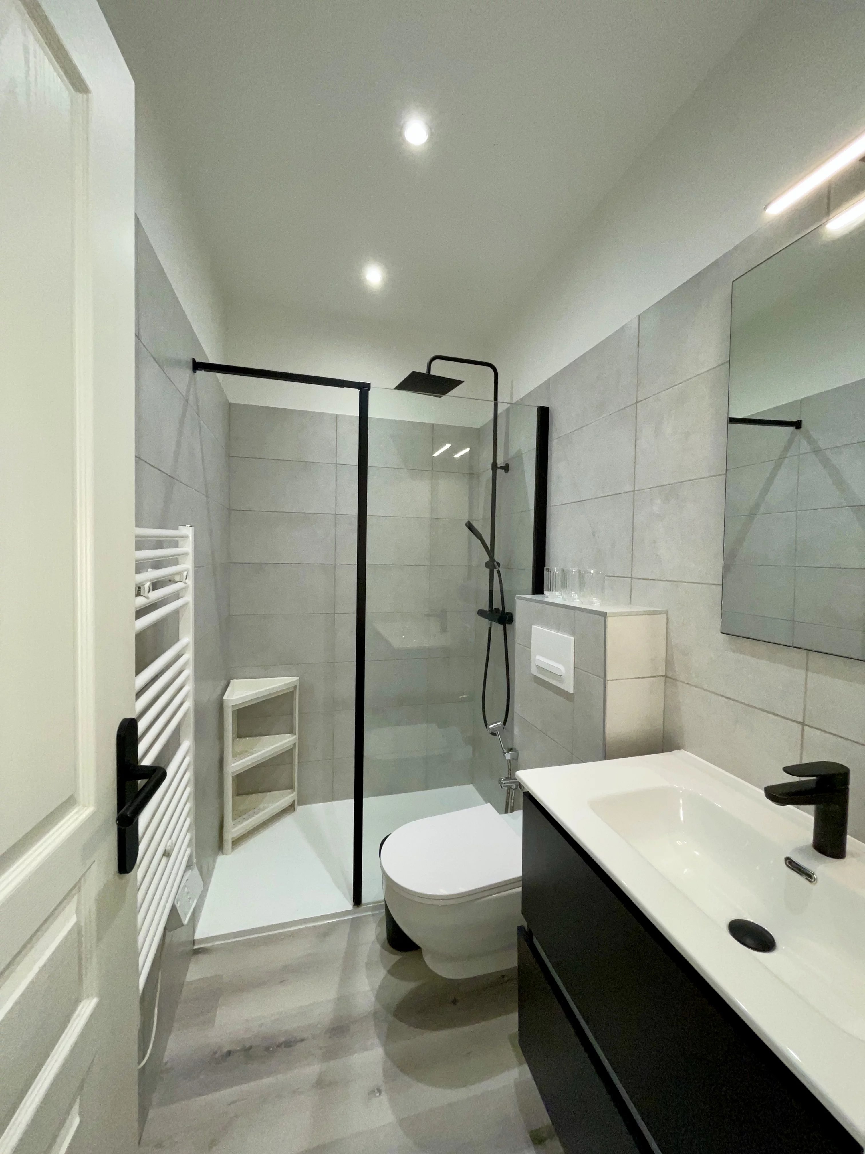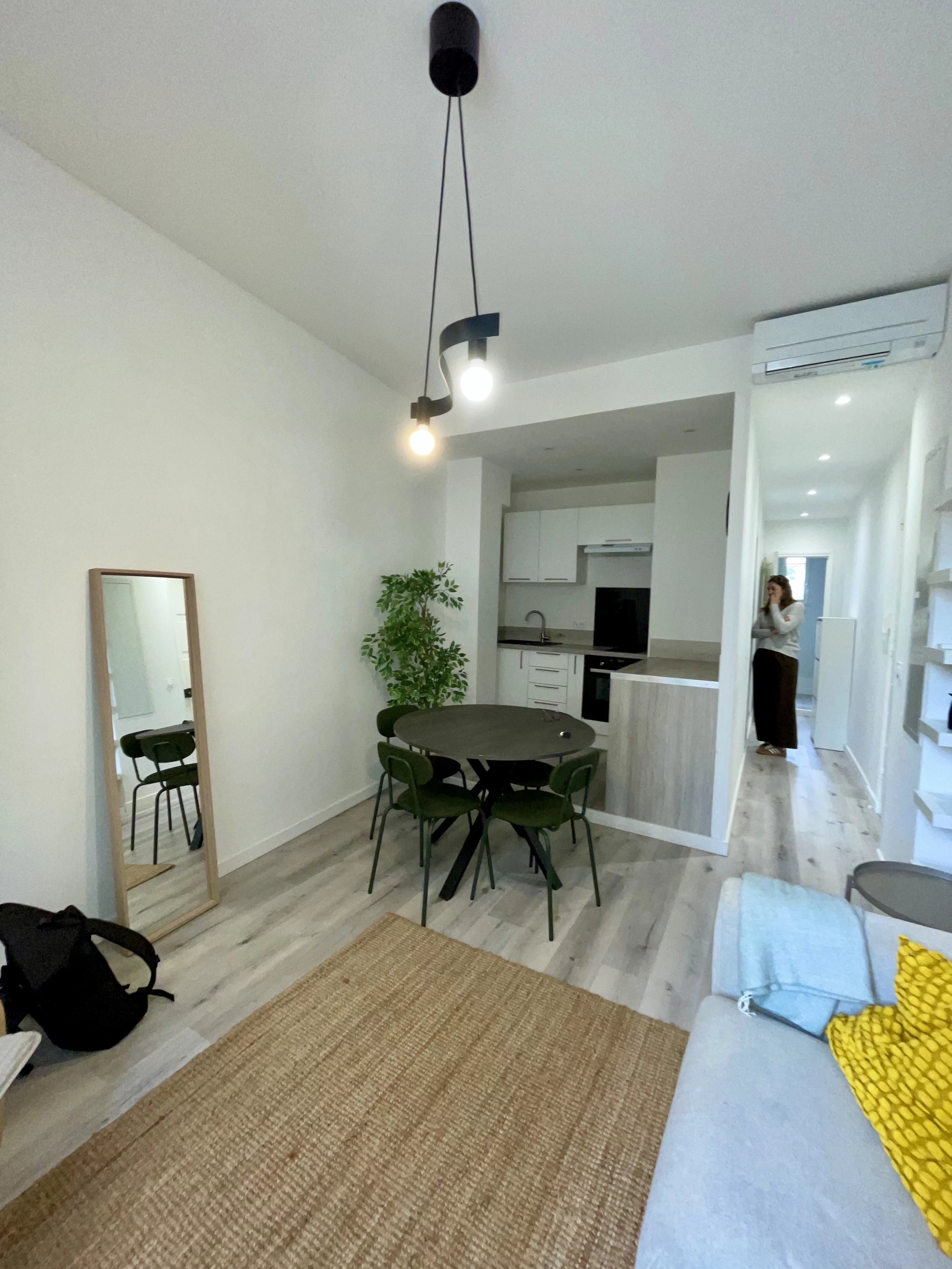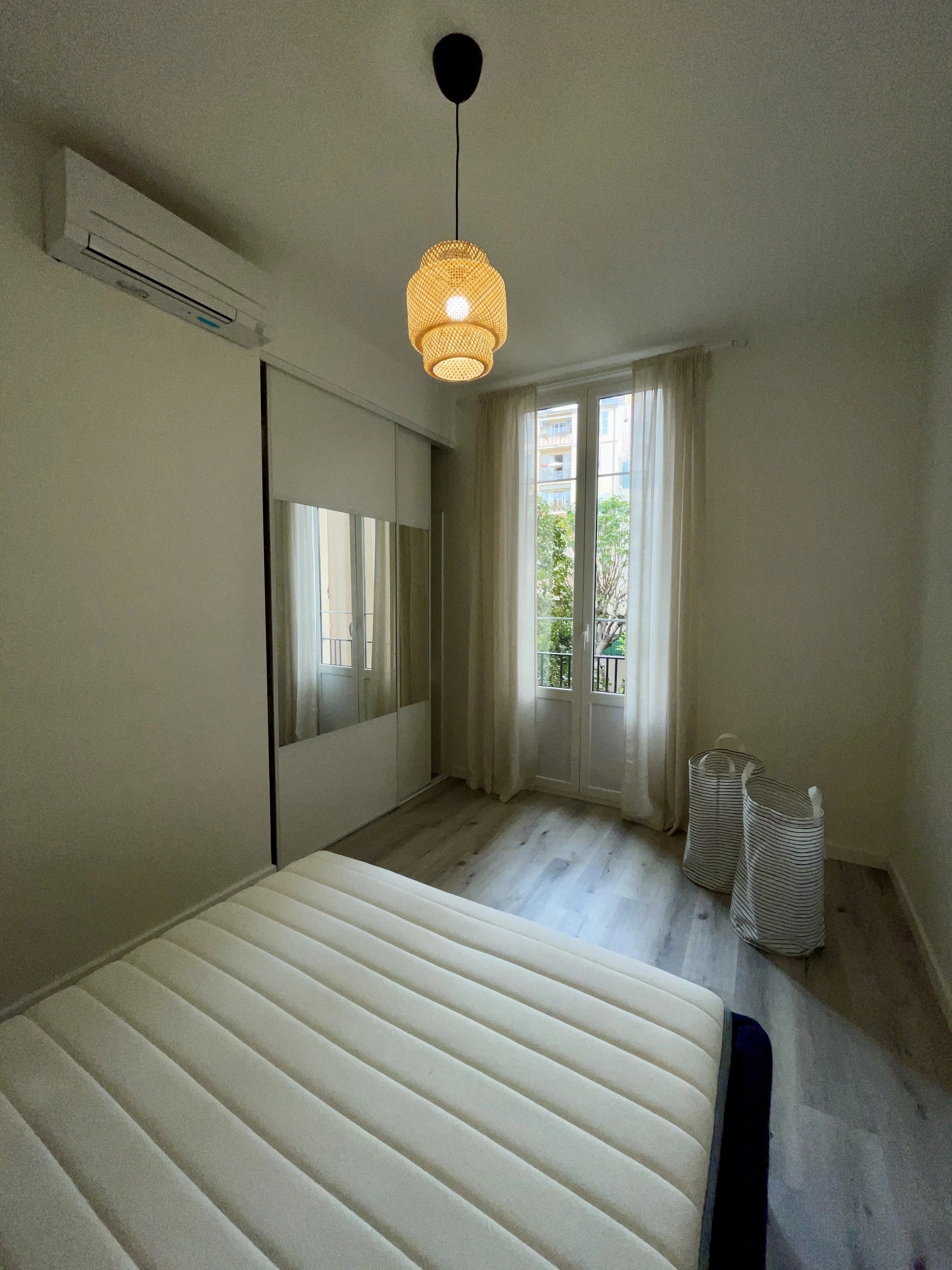 Nice Libération: Proche marché et tramway trois pièces meublé au premier étage, excellent état, climatisé, chambres au calme sur cour.
