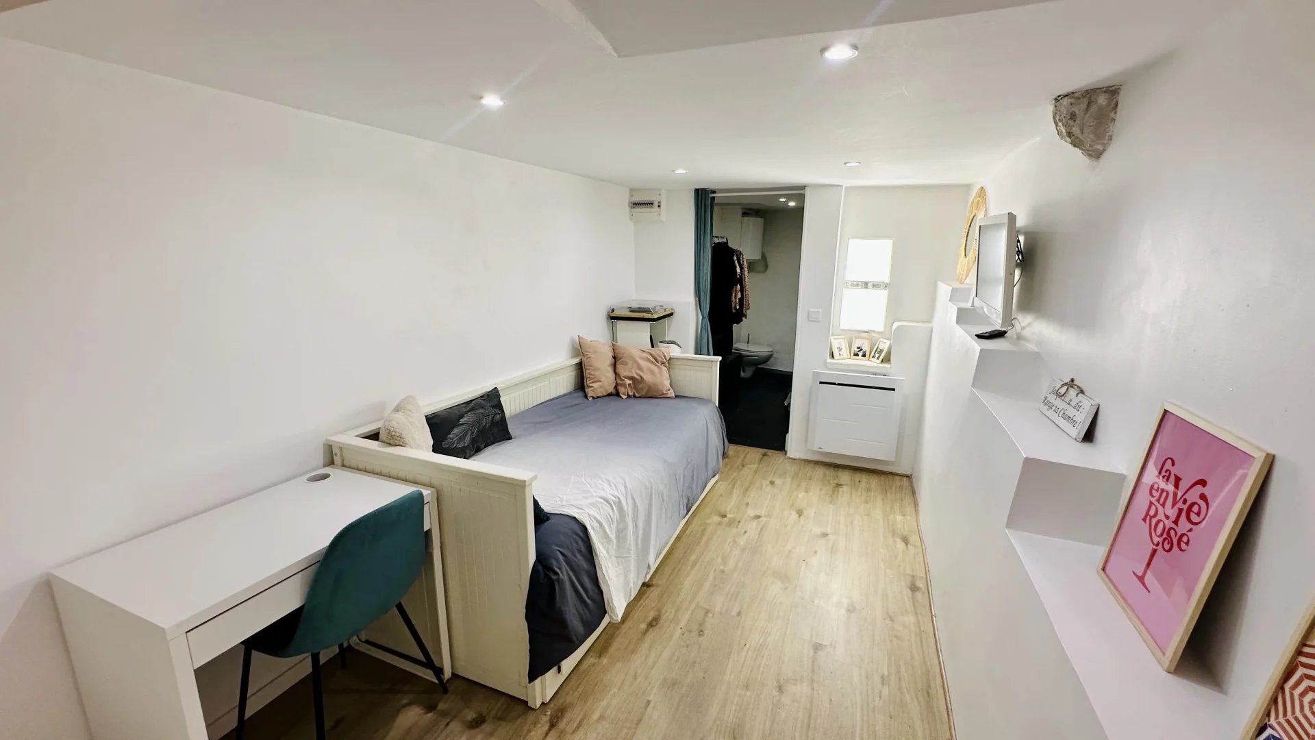 Proche du château, une adorable maison de village R+2, accompagnée de sa studette indépendante : un bien rare mêlant charme et authenticité. Sa surface Carrez est de 30 m² . clés en mains et rénové avec goût en 2020 par une architecte d'intérieur. Au rdc : une entrée, une cuisine ouverte, toilettes indép. et la studette indépendante de 14 m² (dans une ancienne cave). A l' étage 1 : un salon et à l'étage 2 : une chambre avec salle de bain. Prestations : climatisation réversible, double vitrage, interphone.