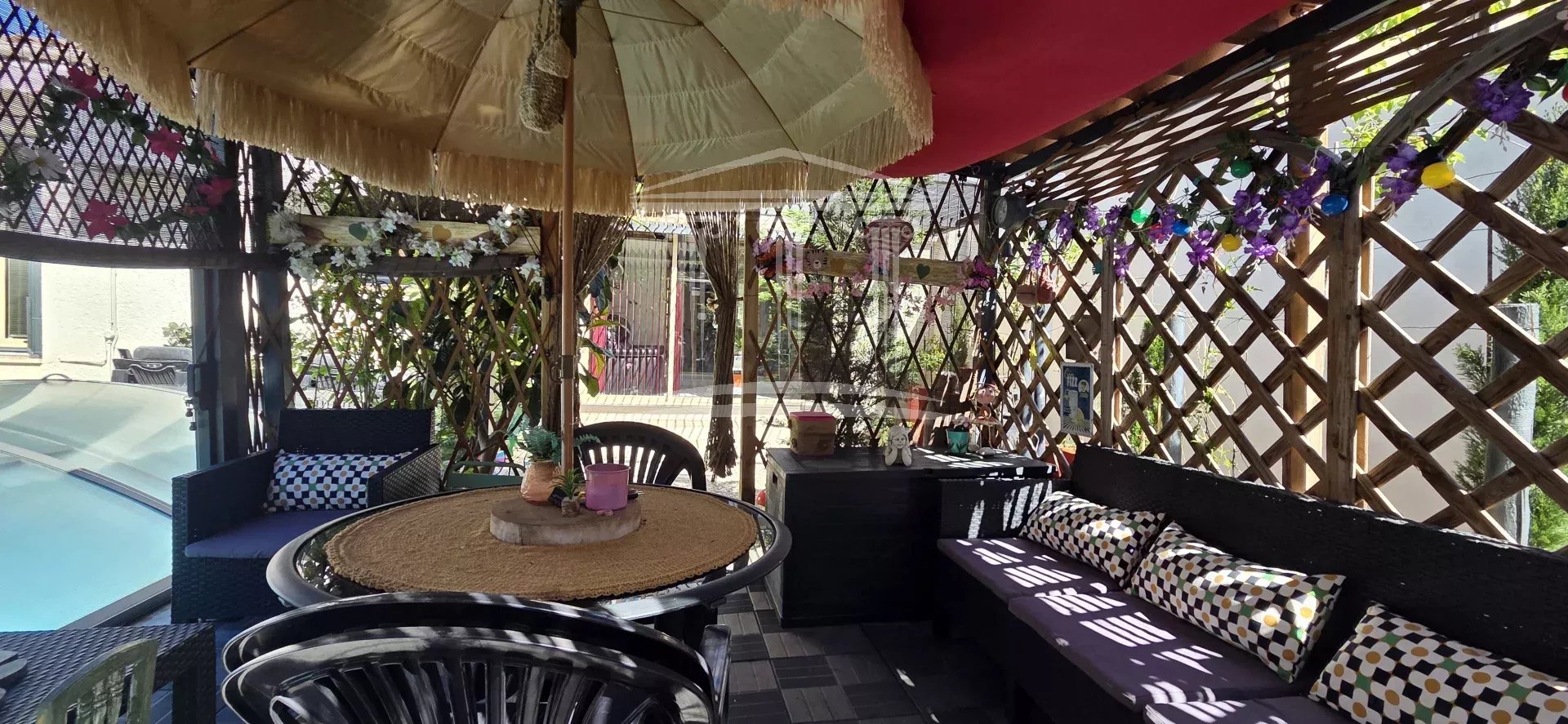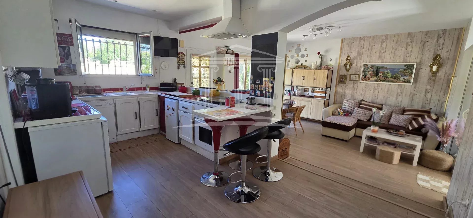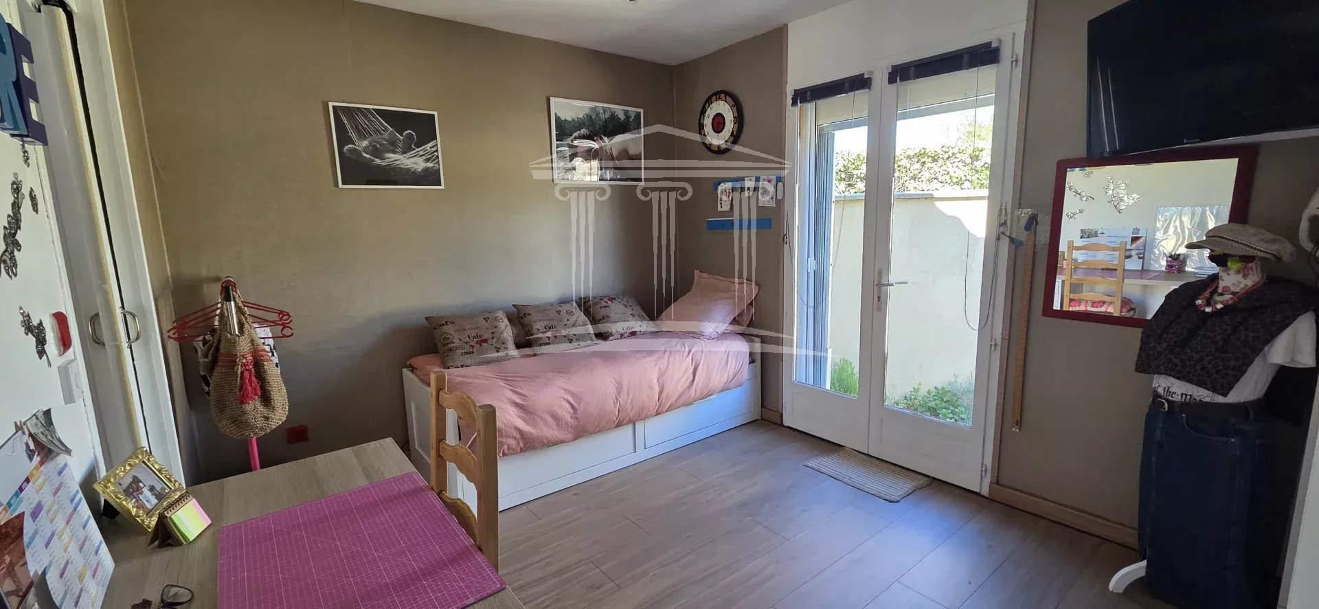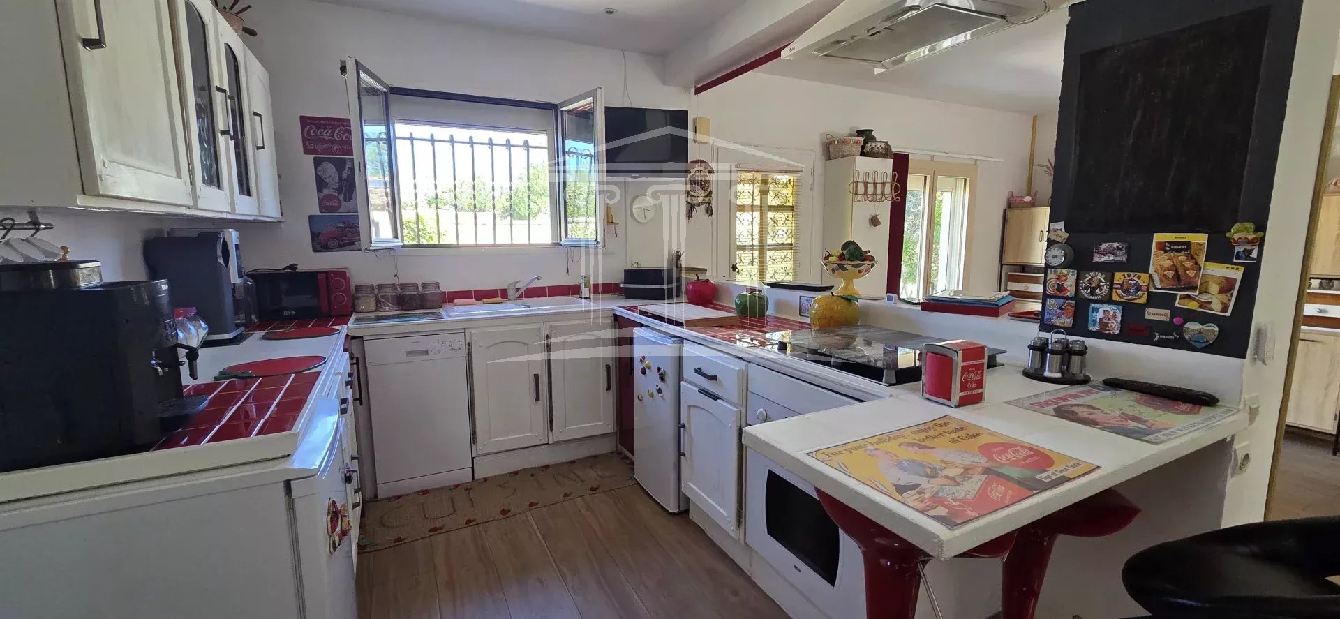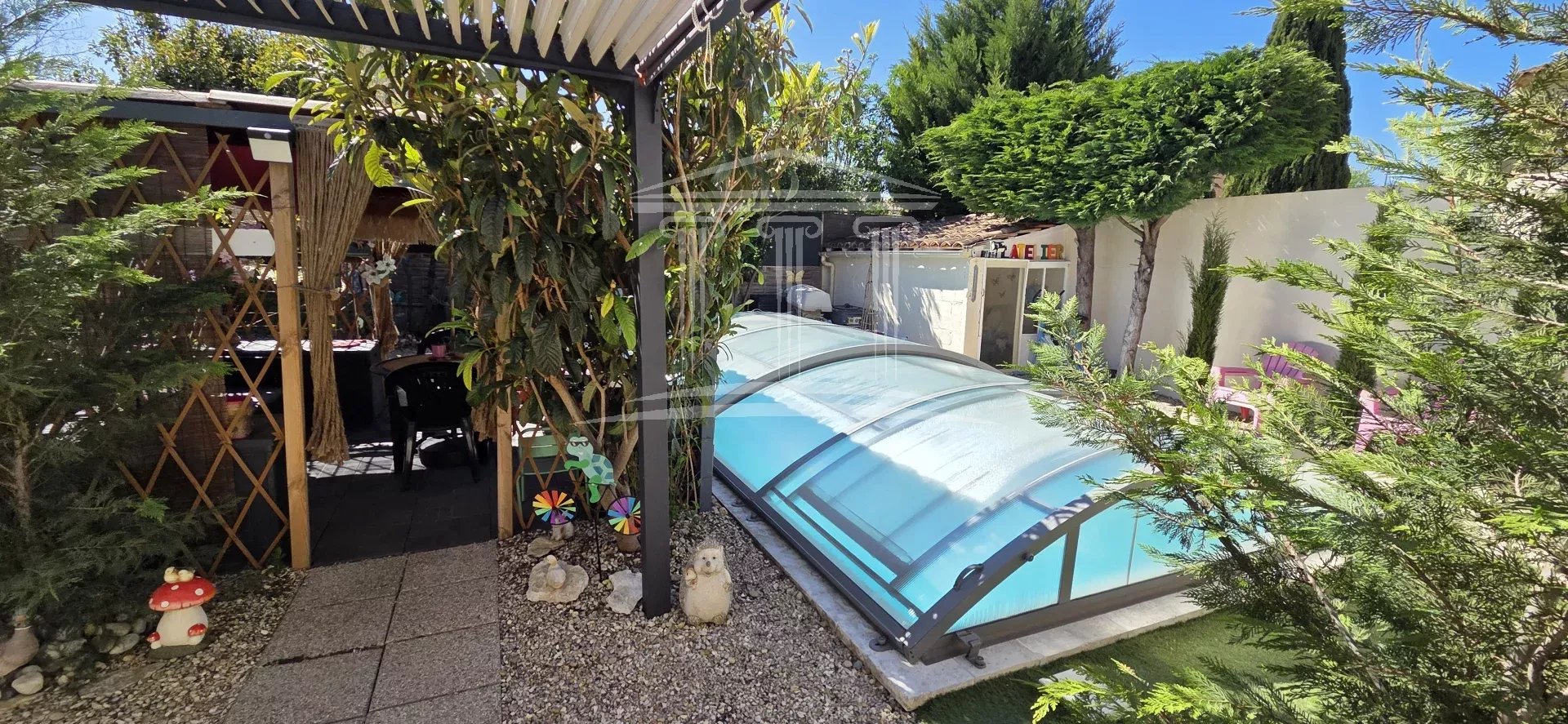 Dans un quartier calme et recherché, maison de plain-pied bien entretenue, offrant une belle pièce de vie, une cuisine semi ouverte, un salon lumineux, deux chambres, une salle de douche et une salle de bain, le tout sur un terrain clos, arboré offrant terrasse, pergola bio climatique et piscine avec abri et pool house. Le plus? des panneaux solaires pour consommation ou/et revente. Portail automatique et forage