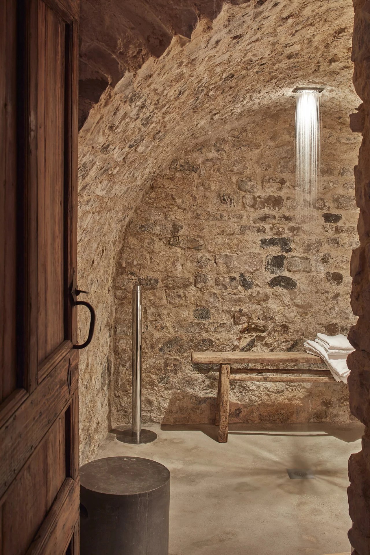 Quelques marches, une terrasse qui s'alanguit en toute discrétion et nous voilà devant la porte d'entrée double battant en bois massif.