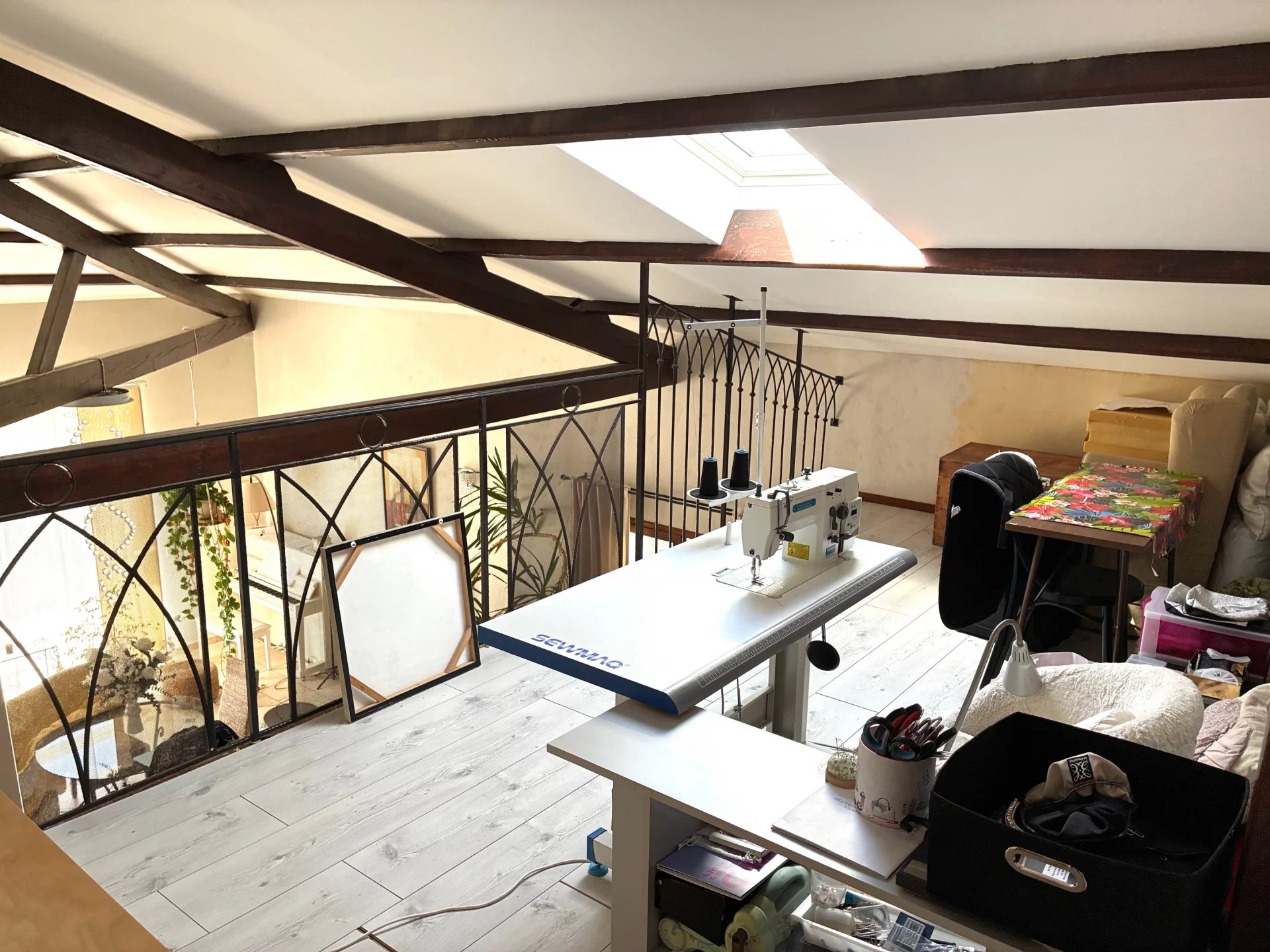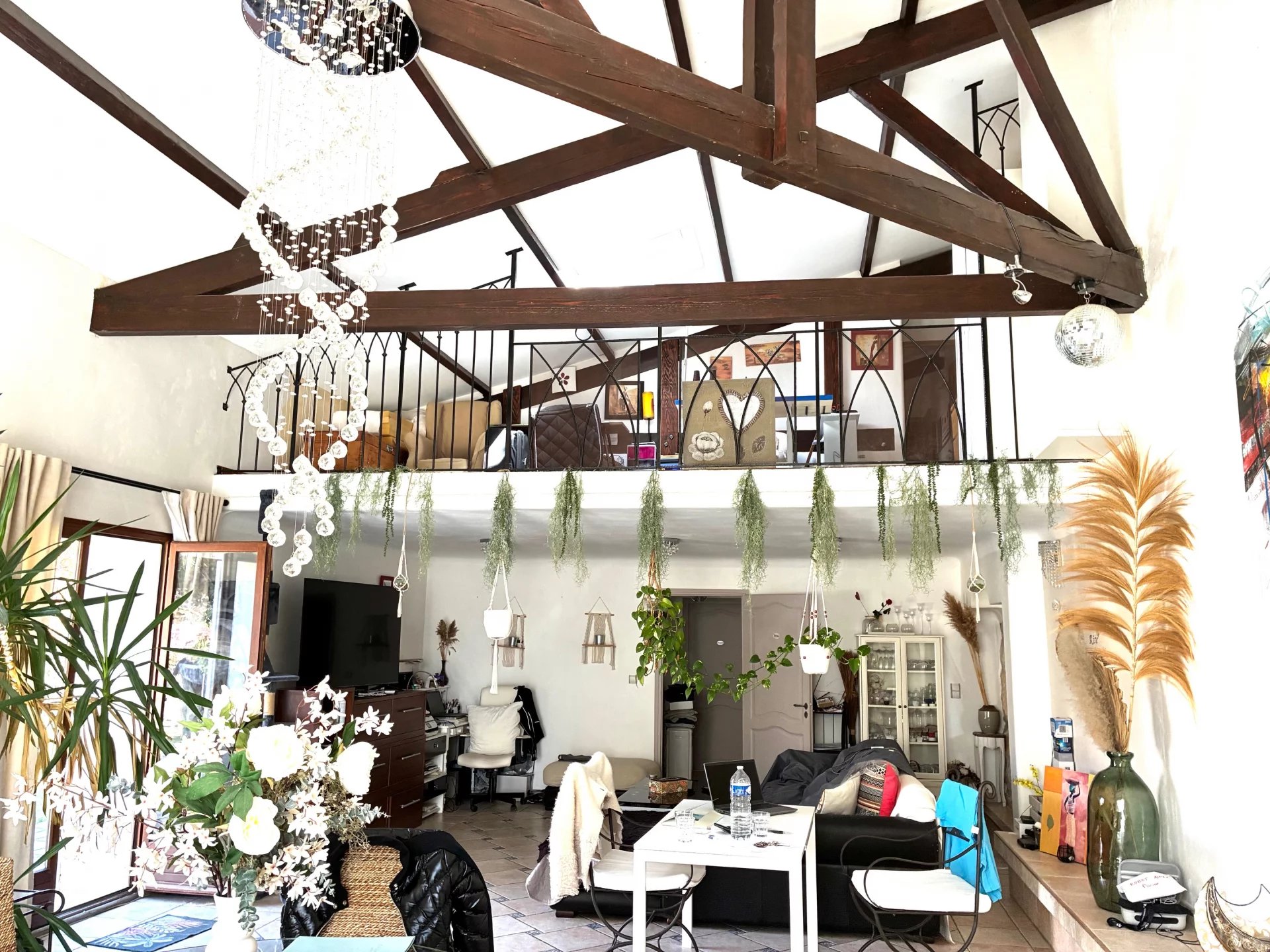 A l'étage, une suite parentale ainsi que 2 chambres mansardées, 1 grande salle de bain, 1 mezzanine donnant sur le séjour.